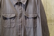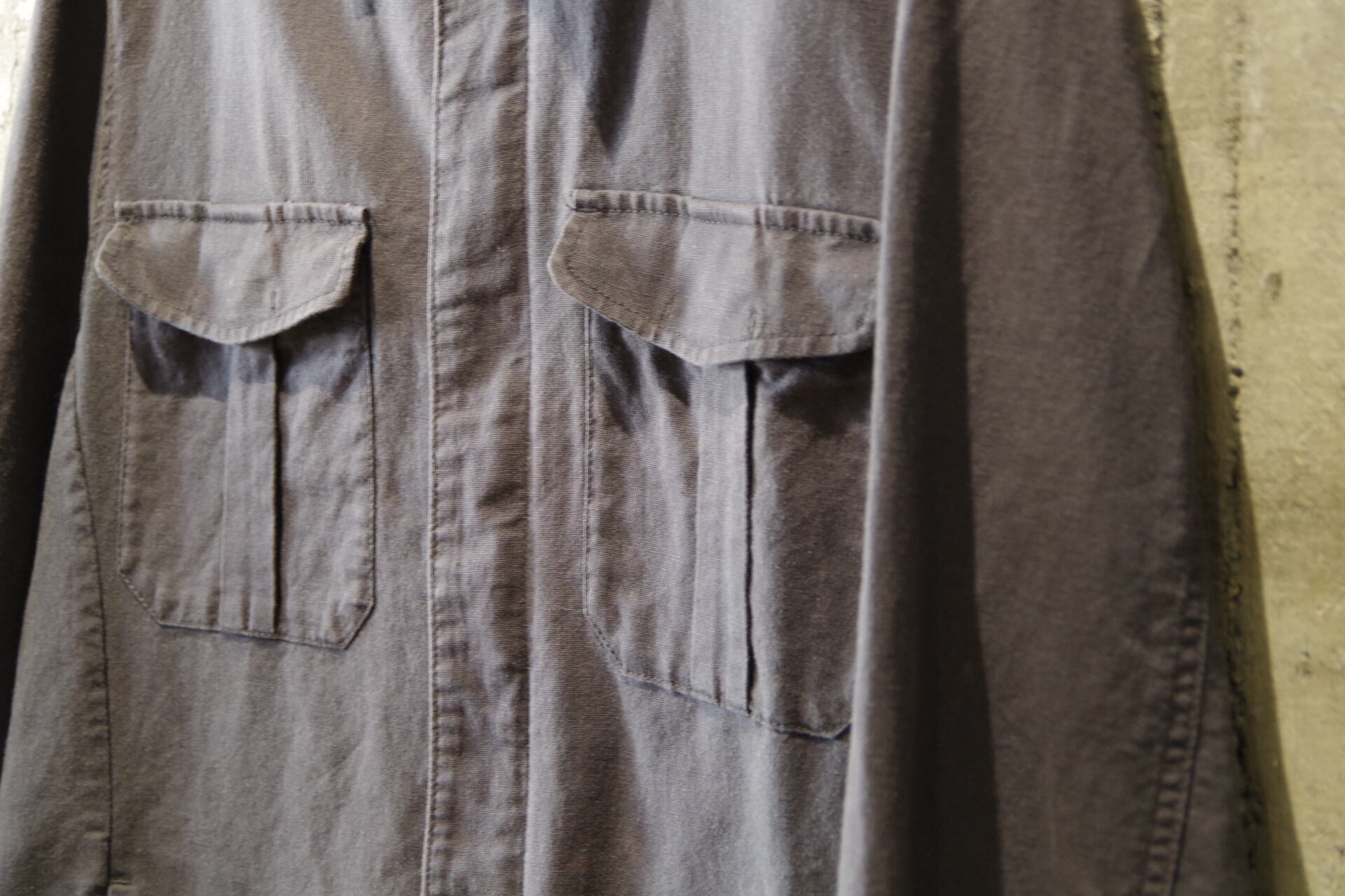 比翼式仕様、前身頃にポケットが4つ配してあります。一重仕様のリネン×コットンの混合生地なのでサラッと着用出来、洗濯も可能。