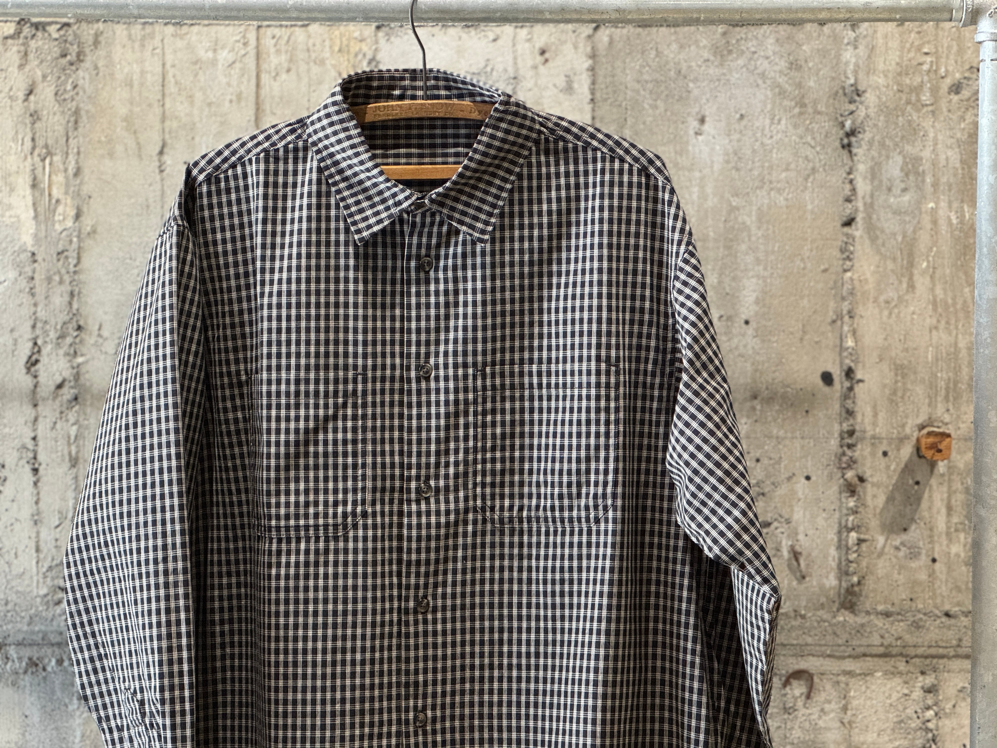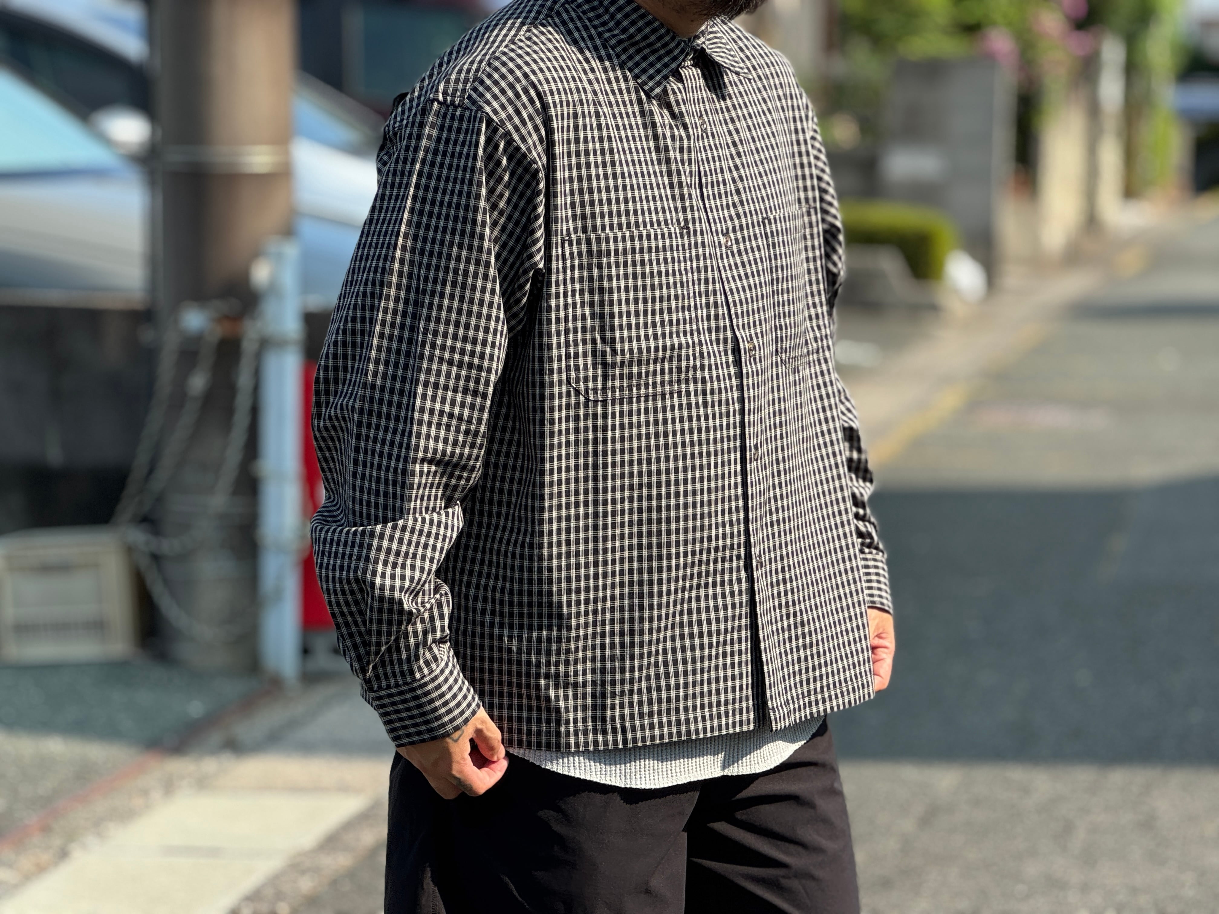 シンプルなチェックパターンを採用、シルエットは程よく短丈、程よくワイドなボックスシルエットです。