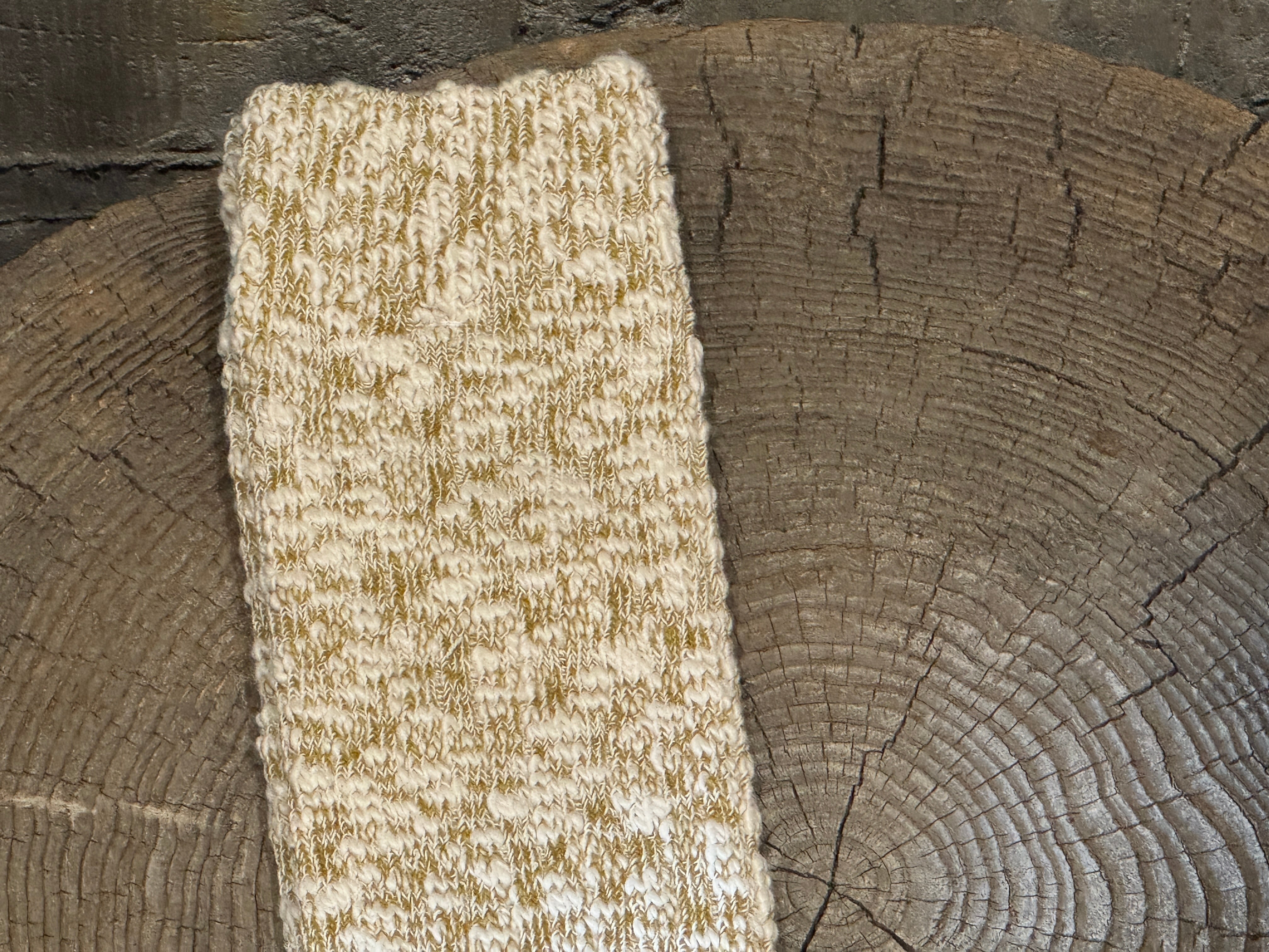 スラブMIXの粗野な表情は保つつ、通年履きやすい絶妙な肉感に拘ったソックスです。ヴィンテージソックスで見られた特殊な糸使いを参考に、肉厚でも伸縮性が高い仕様です。