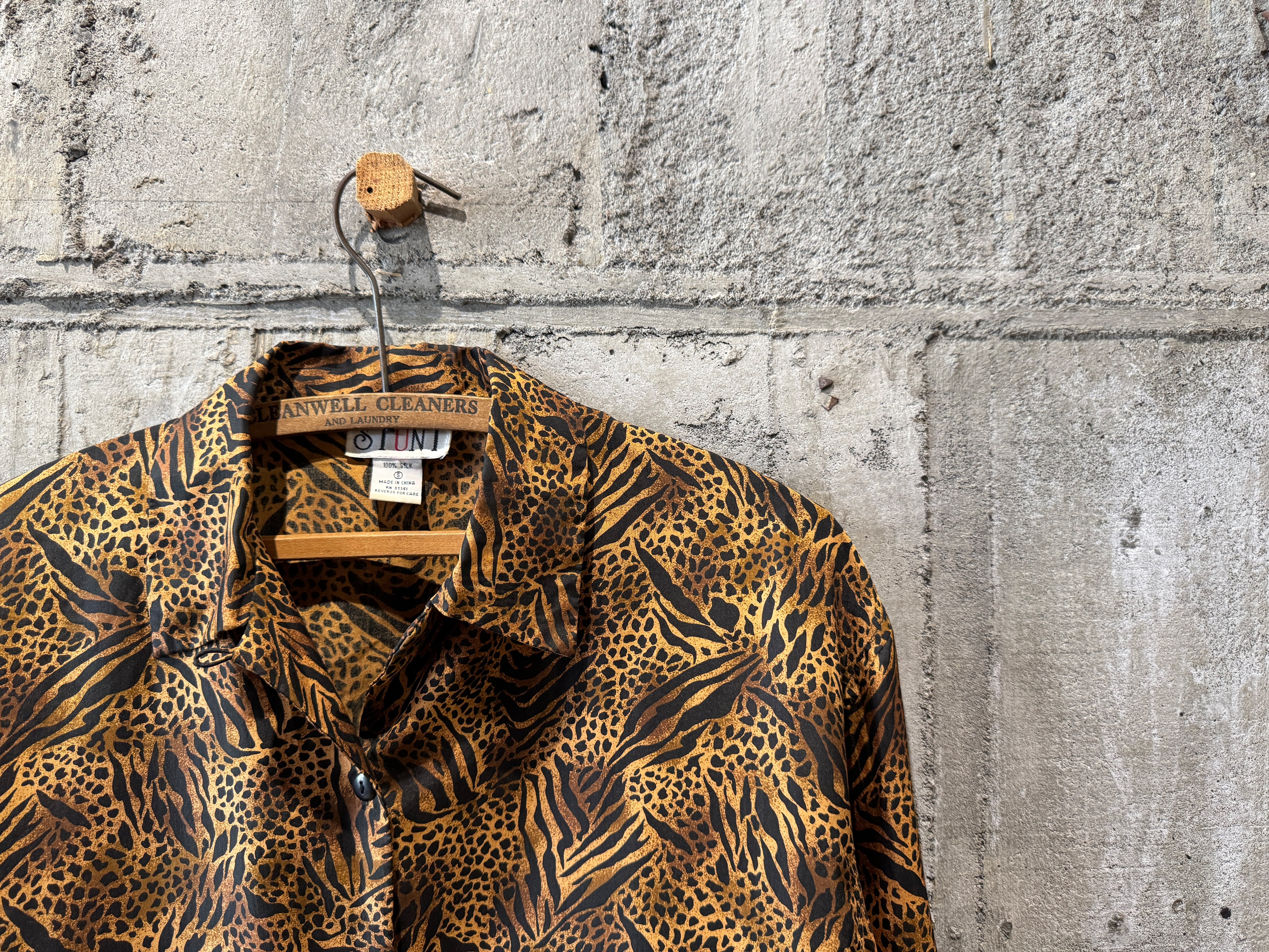 STUNT leopard pattern silk shirt(USED)