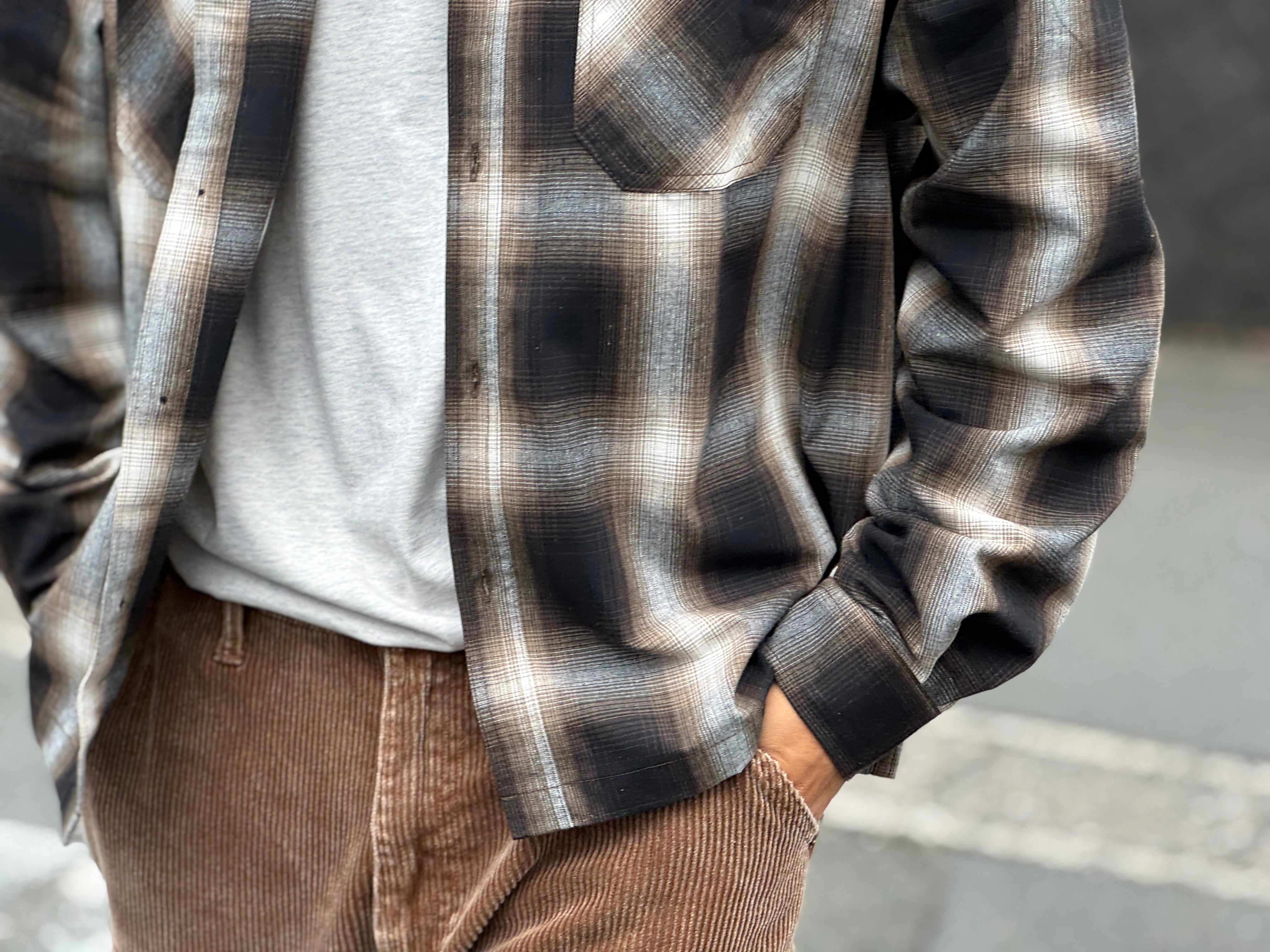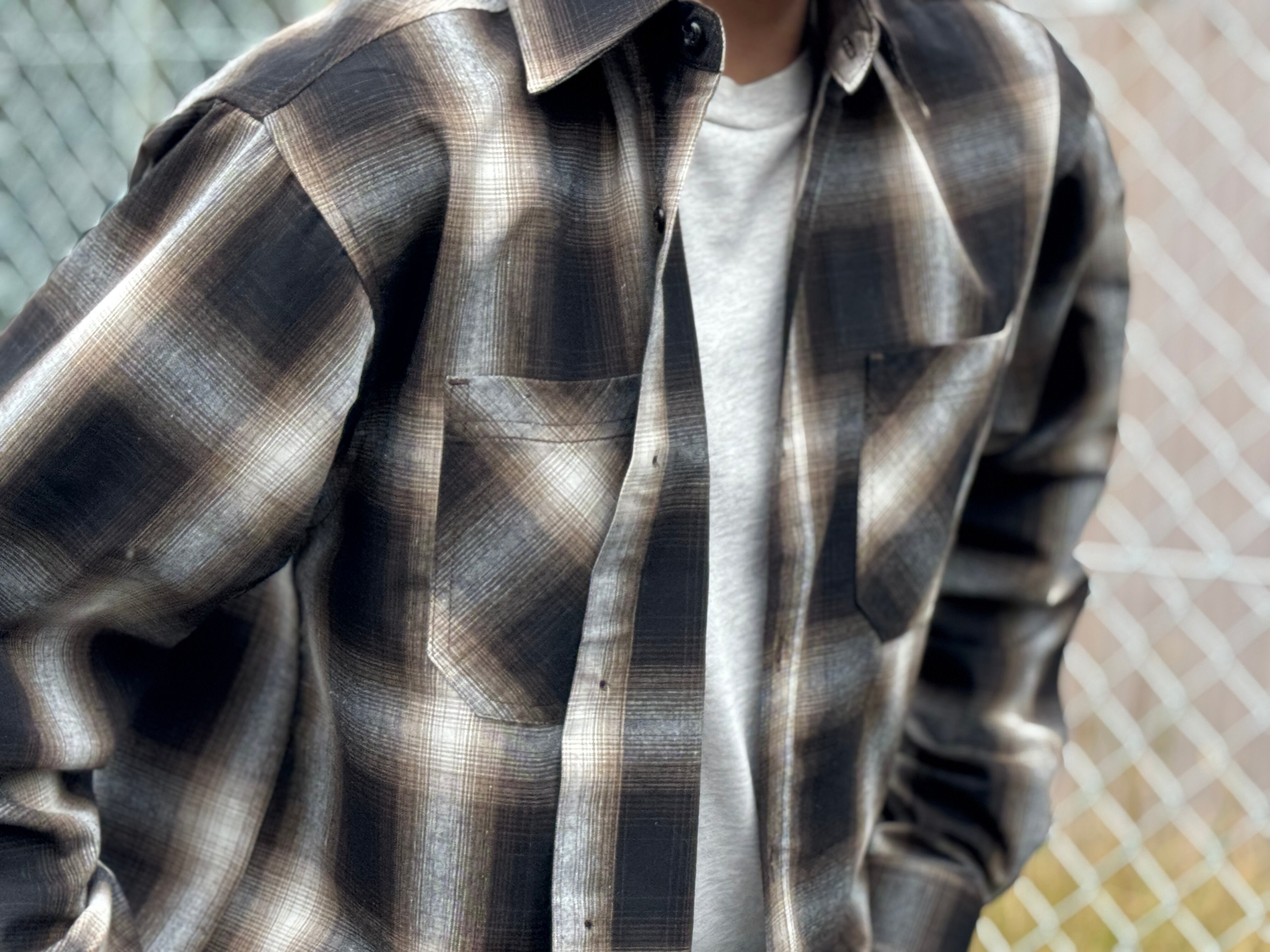 サラッとしたドライタッチな生地感、くすみのかかったブルーな配色のオンブレチェック。