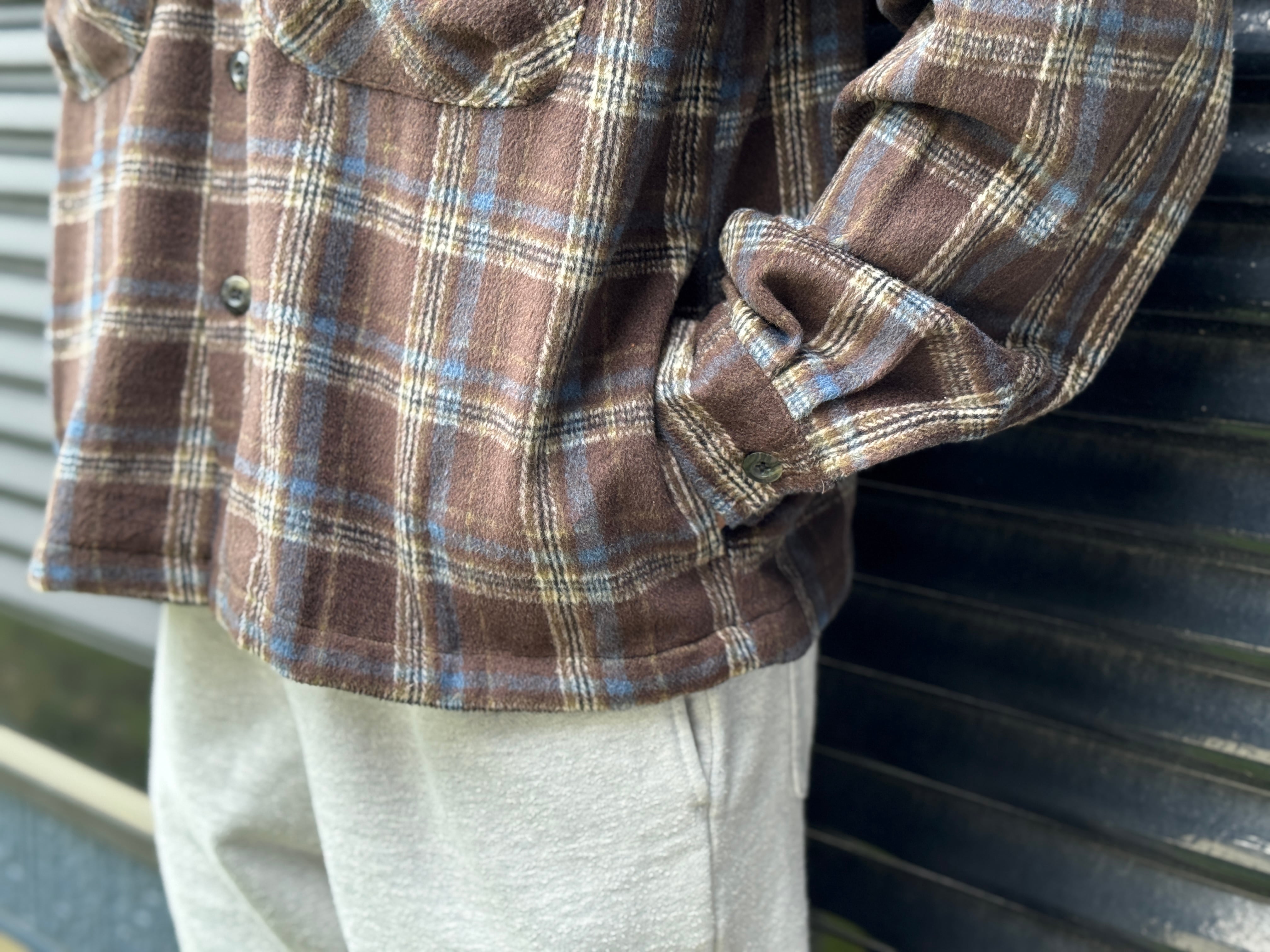 程よく肉感のあるヘビーネル生地を使用。程よく短丈、程よくワイドなボックスシルエットで両サイドにスラッシュポケットが配してあります。