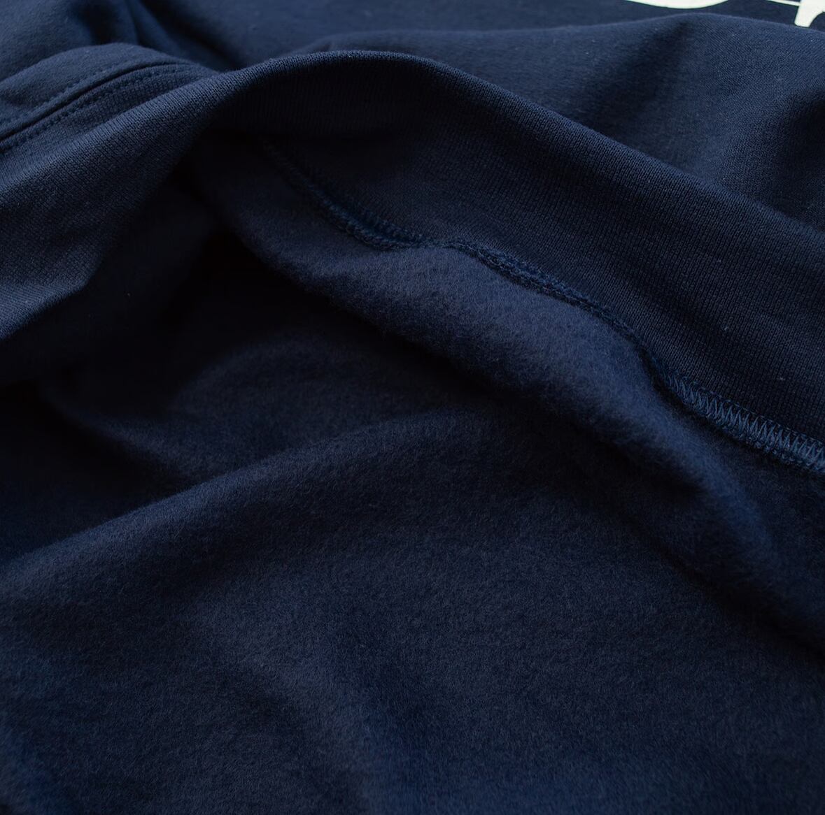 ボディはコットン・ポリエステル50/50の軽く暖かい素材を使用し、ややゆったりとしたシルエットの8オンス生地で仕上げられています。
