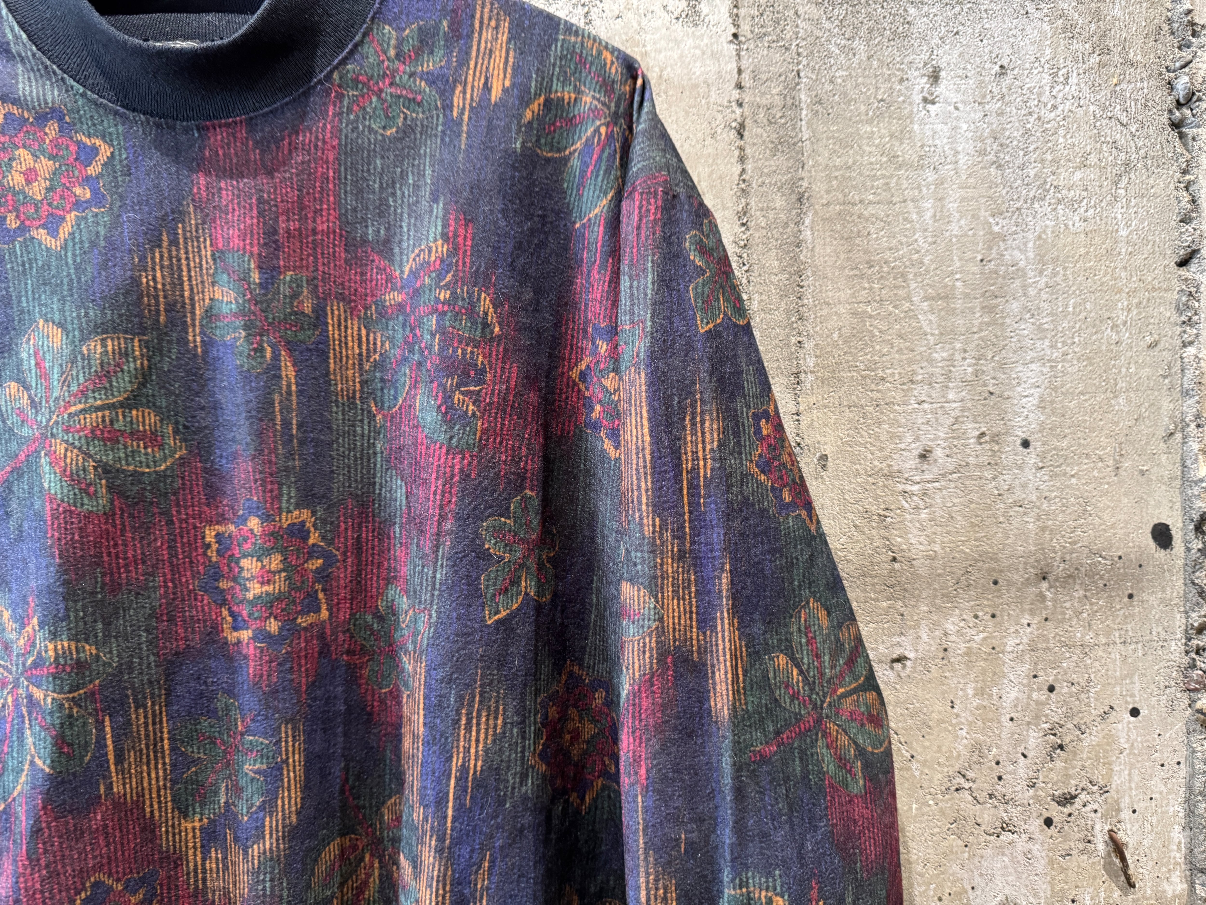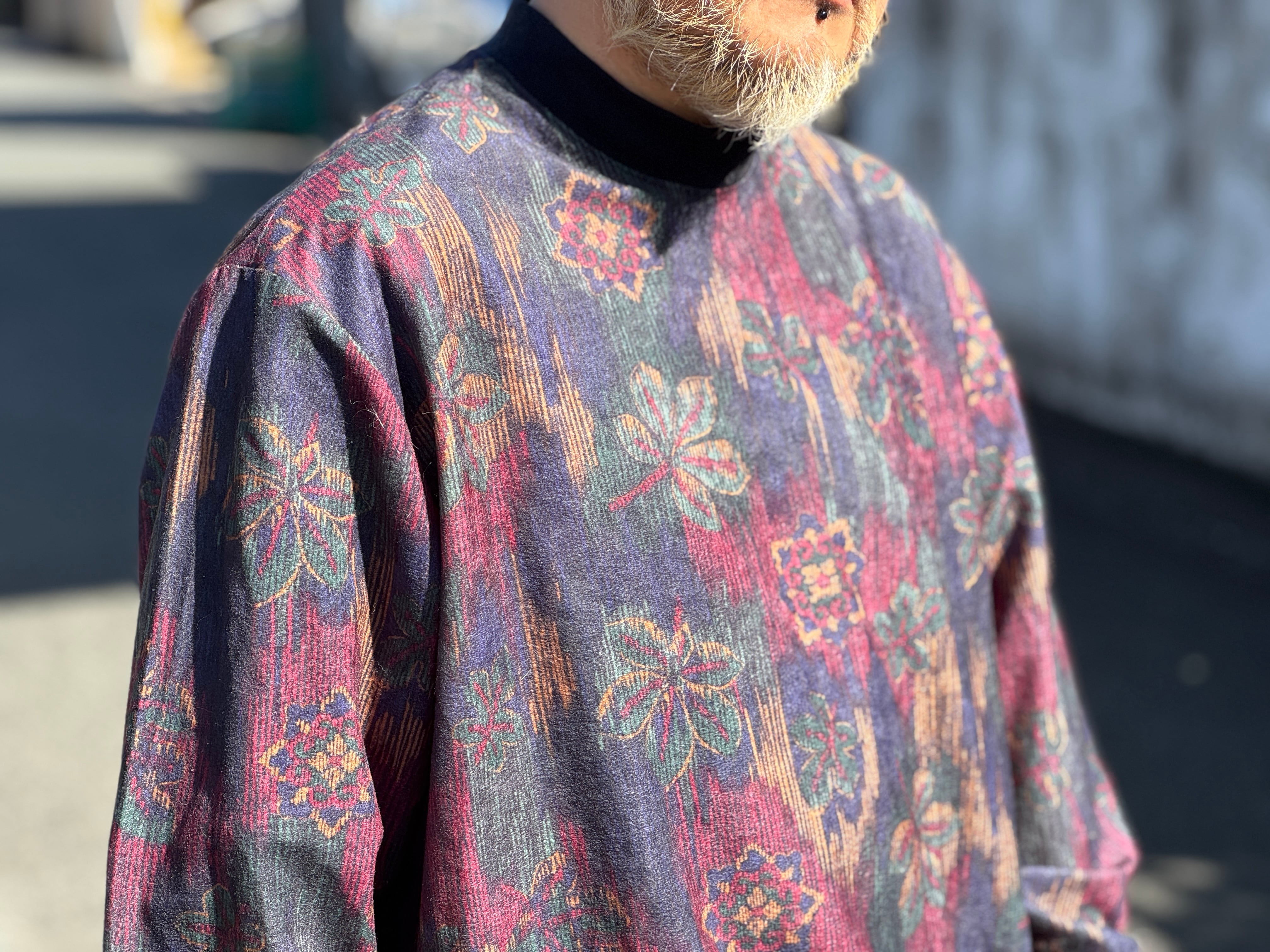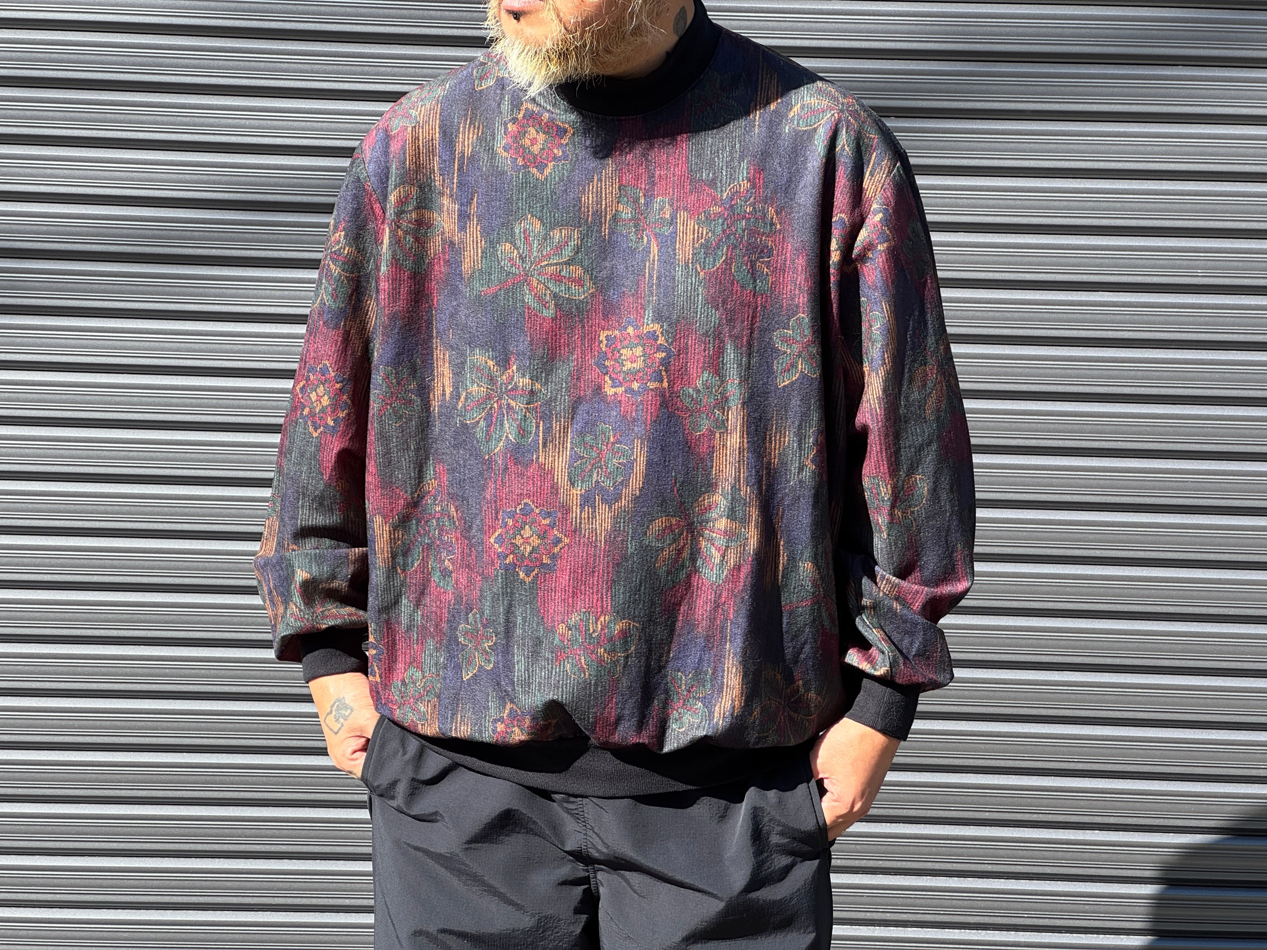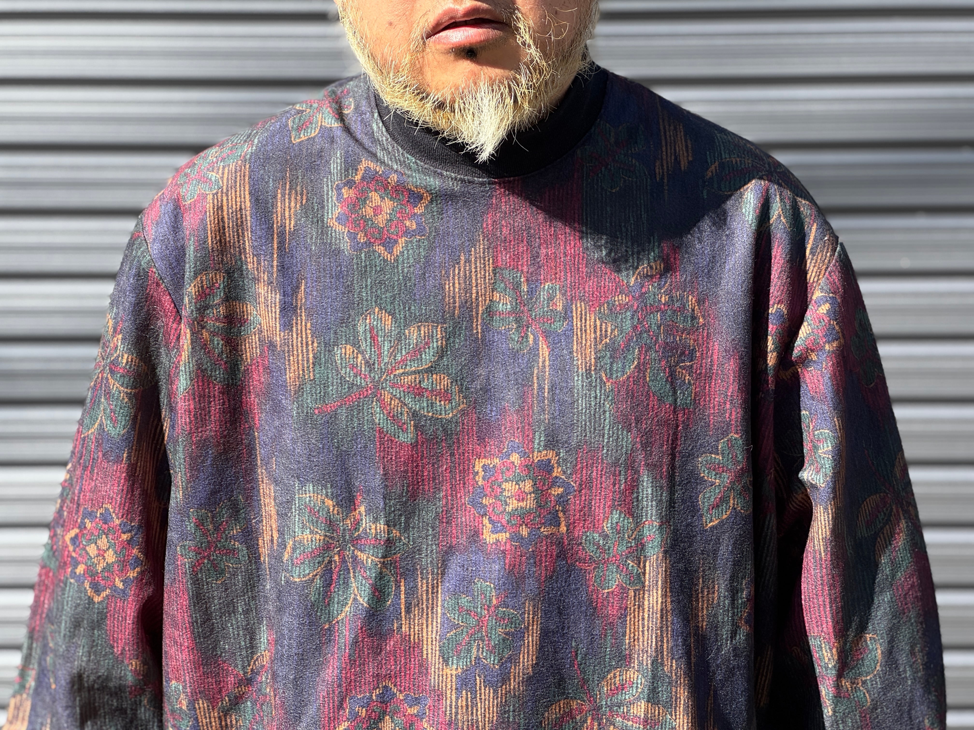モックネック仕様、全体に施された妖艶なパターン、そしてカラーが雰囲気あります。