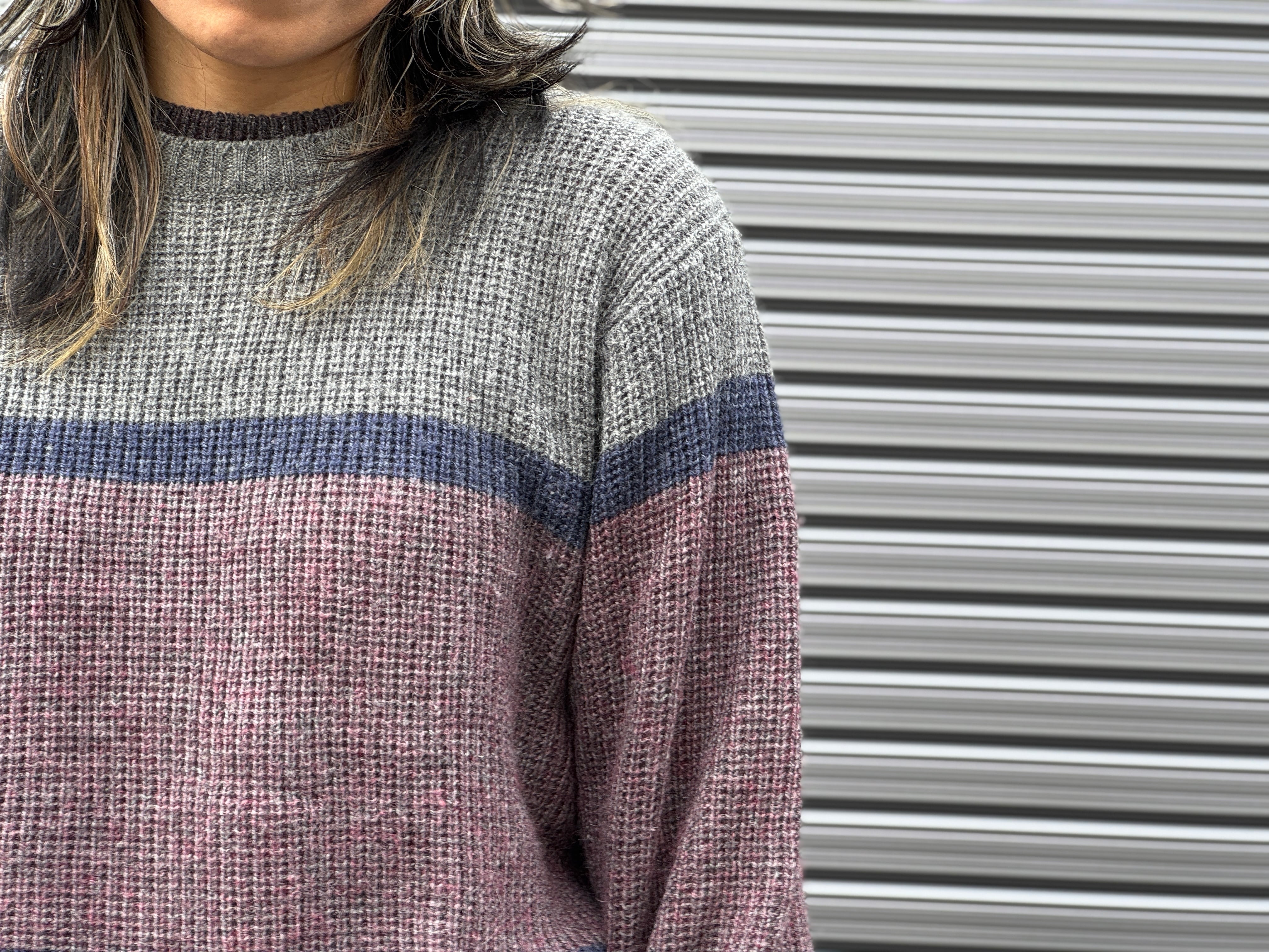 絶妙なカラー切り替えが魅力的なニットセーター。