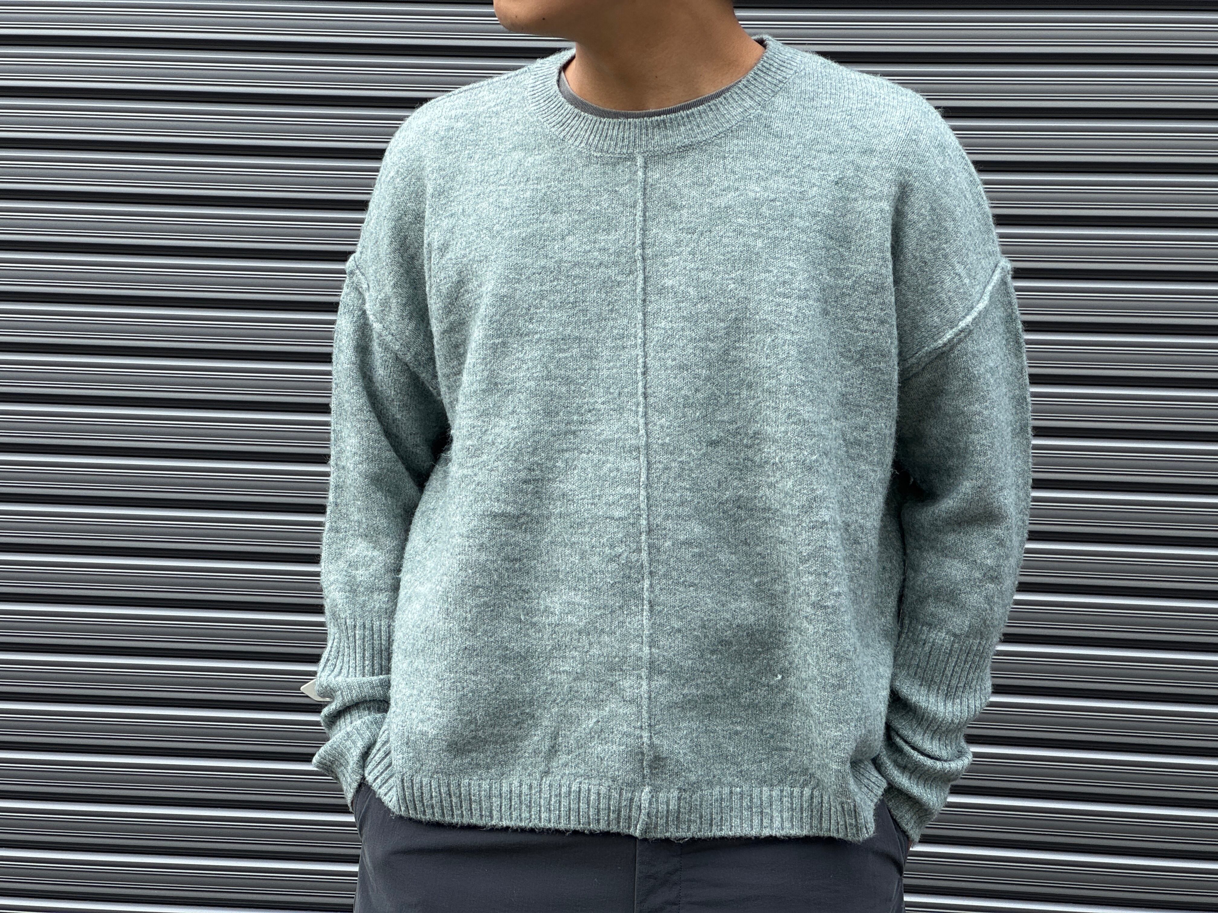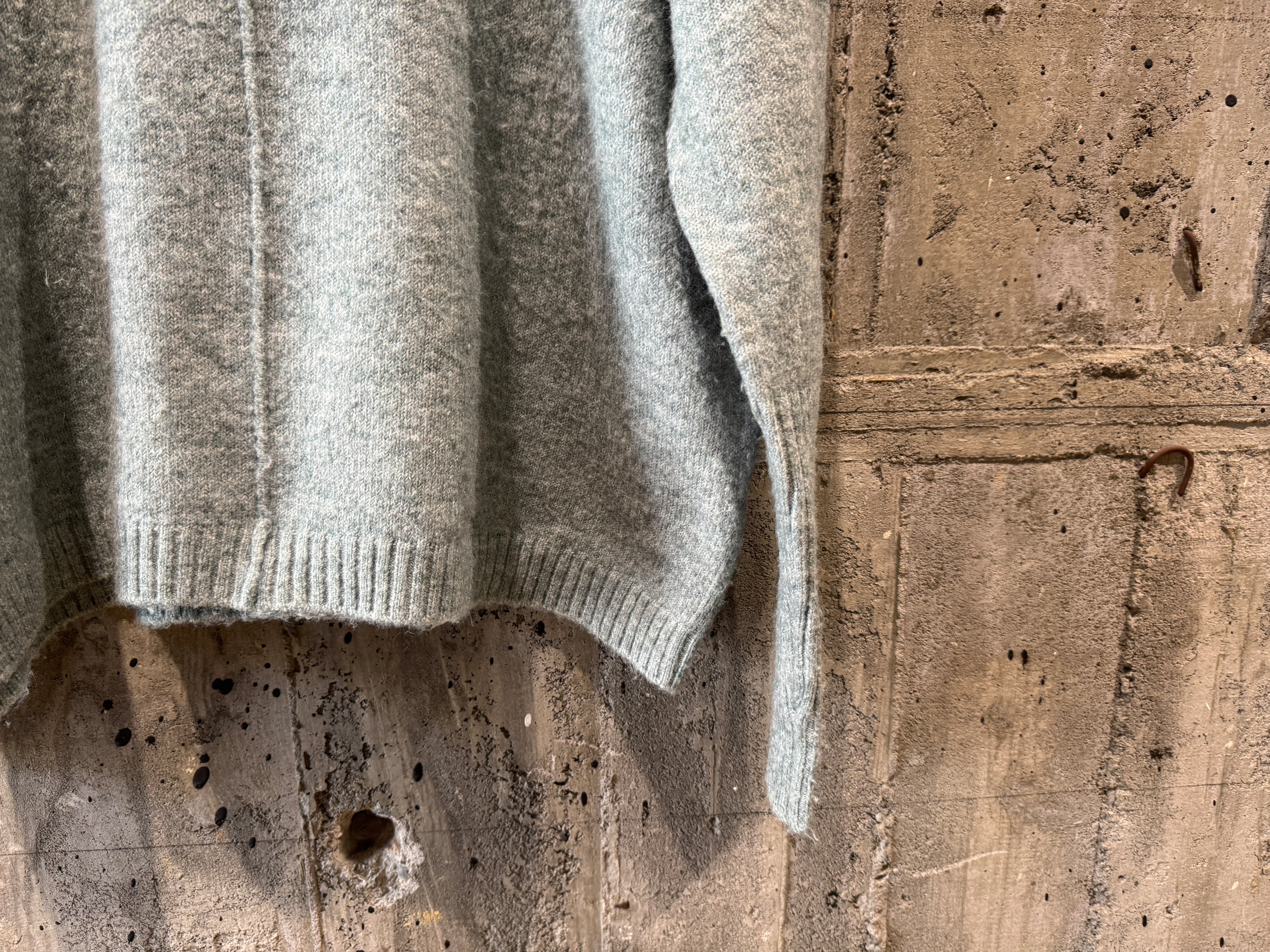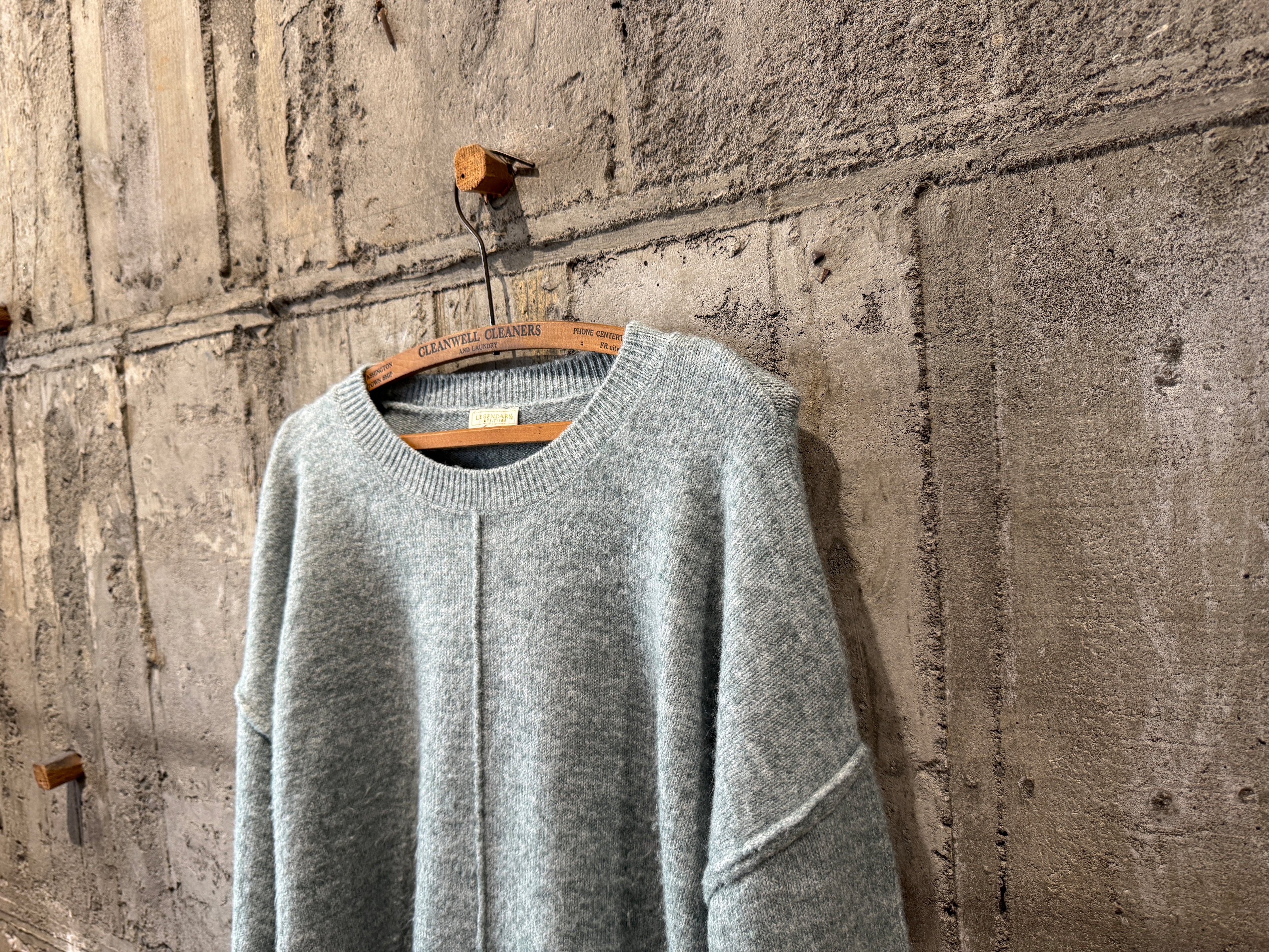 鮮やかなライトブルー杢のカラー、切り替えデザインや袖のリブ長のデザインも魅力的です。