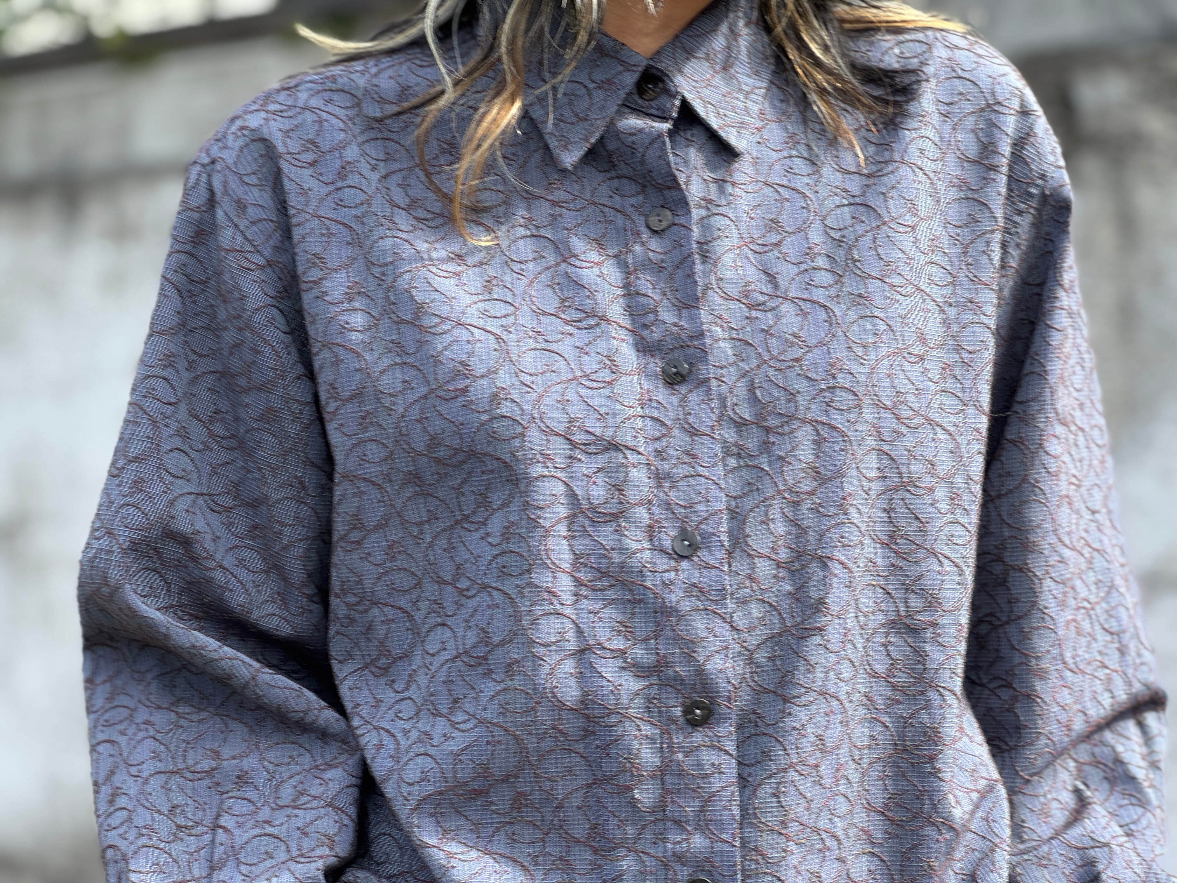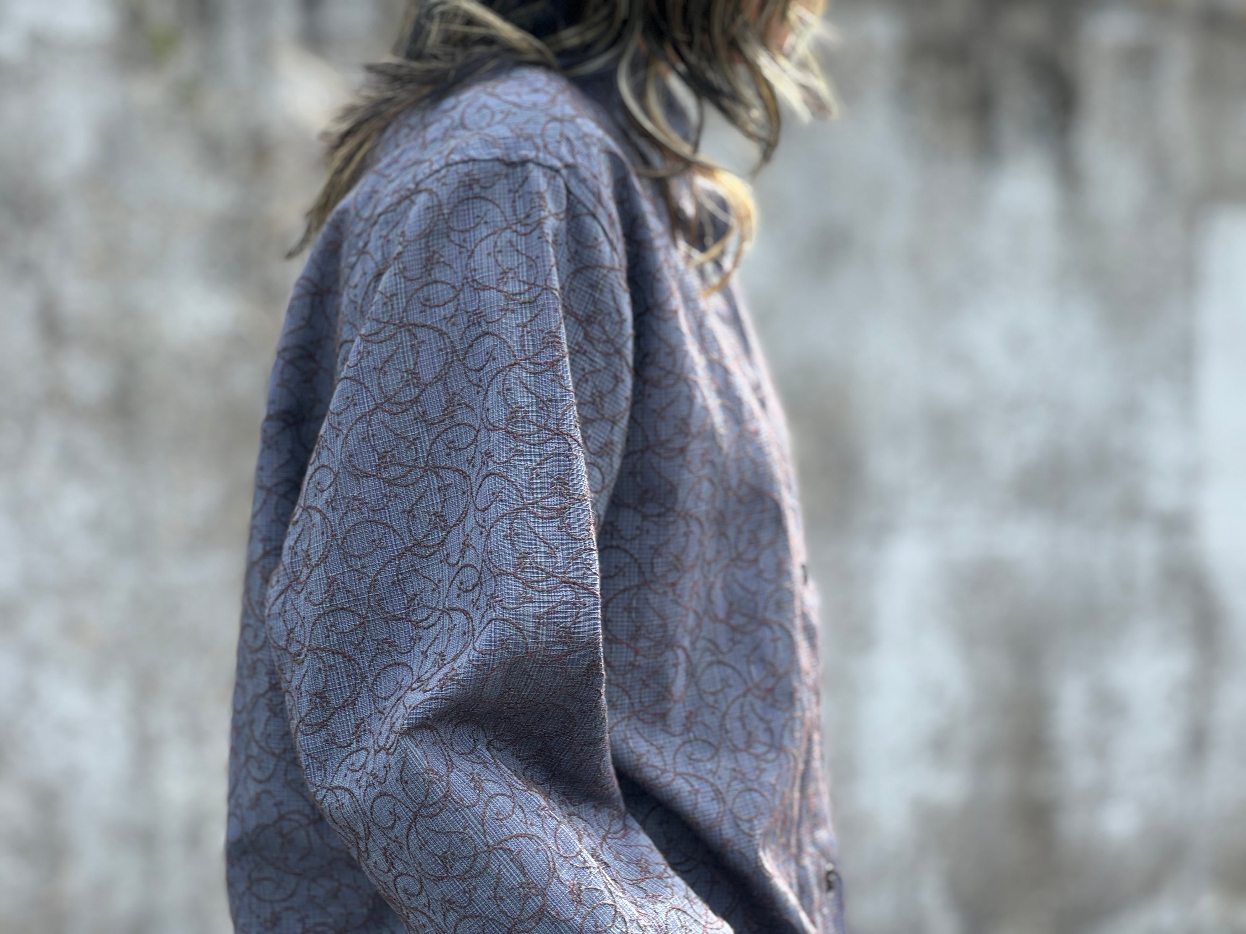 パープルのような、ラベンダーのようなカラーに織りによるパターンが施されています。