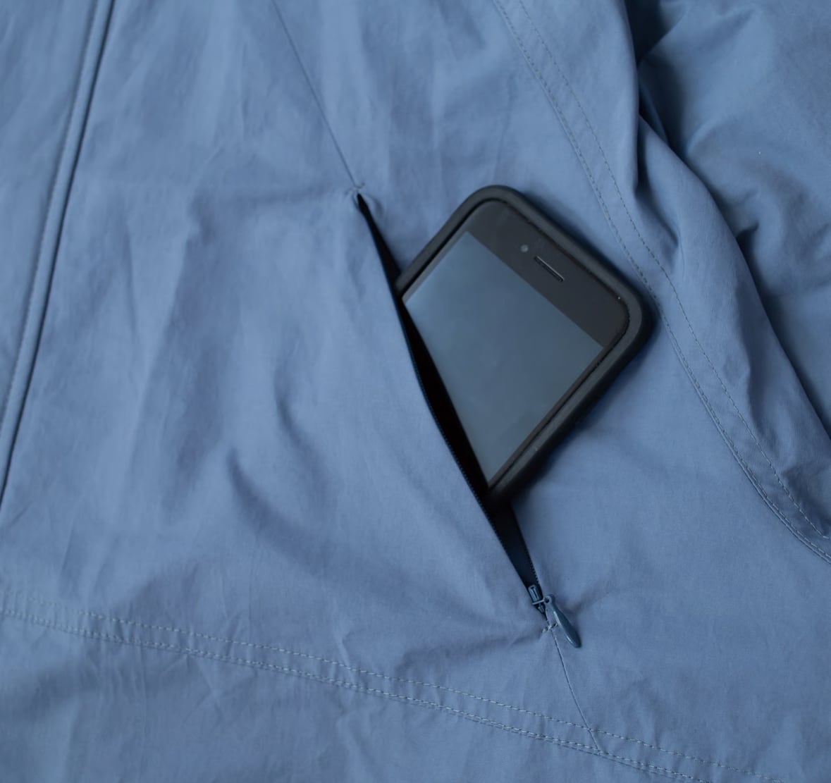 フロント胸元には、機能性とデザイン性を両立したコンシールファスナー付きポケットを配置。