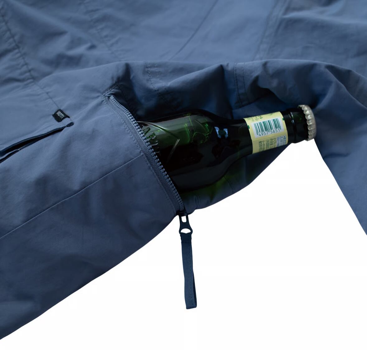 両サイドにはドリンクや小物を収納できるZIPつきポケットも備え、さらにジャケット内側にはA4雑誌やiPadも収納可能なポケットがあり街に繰り出す際も羽織れば手ぶらで楽しめます。