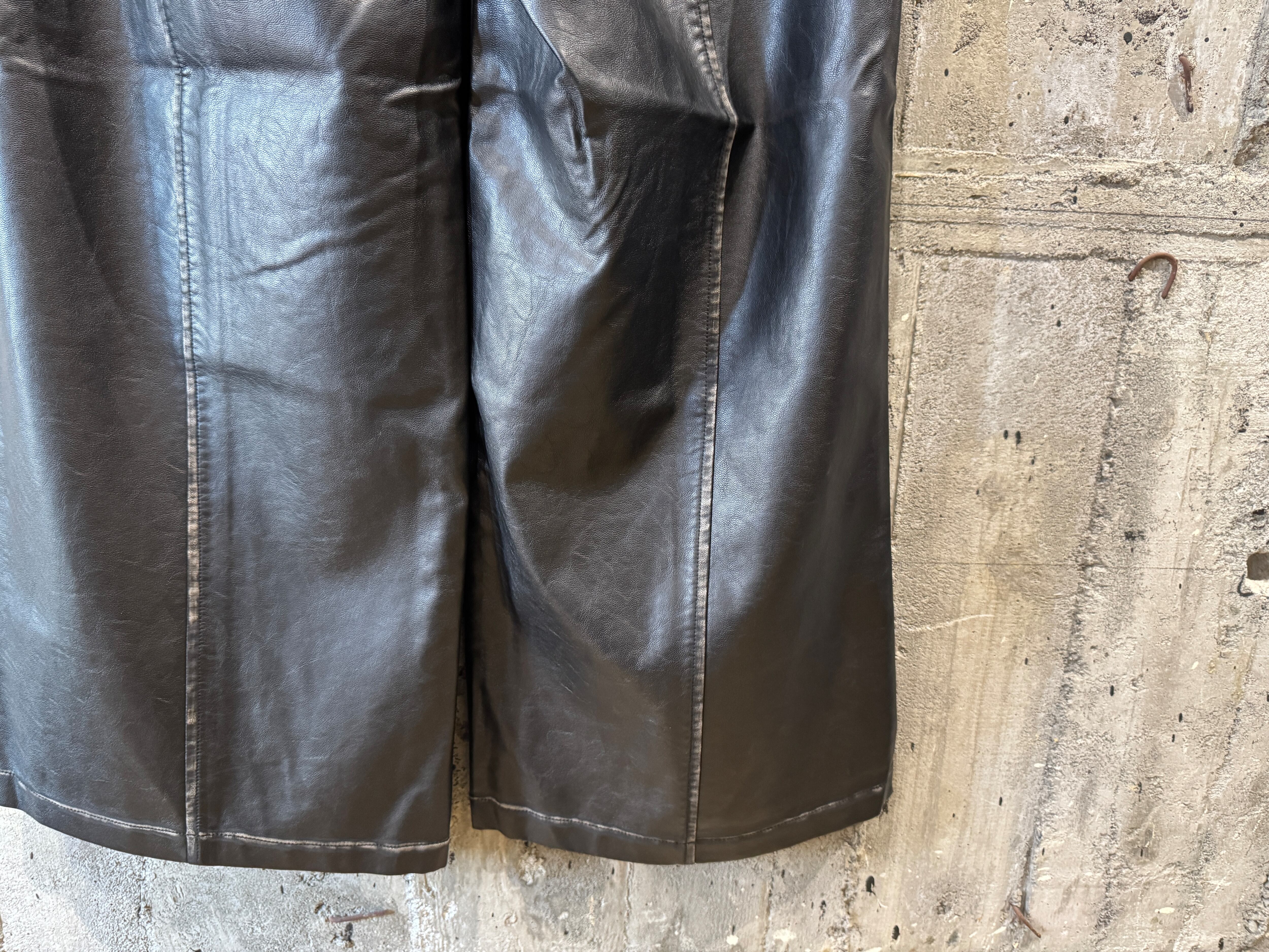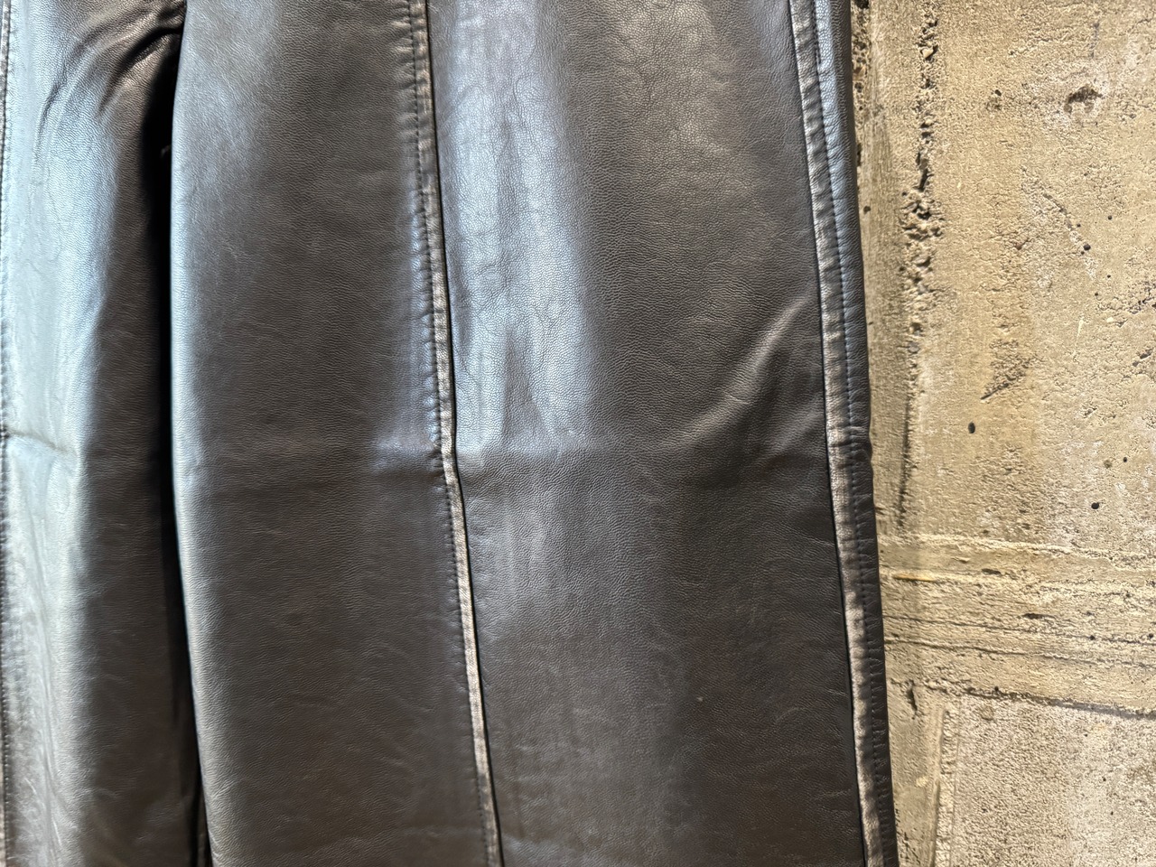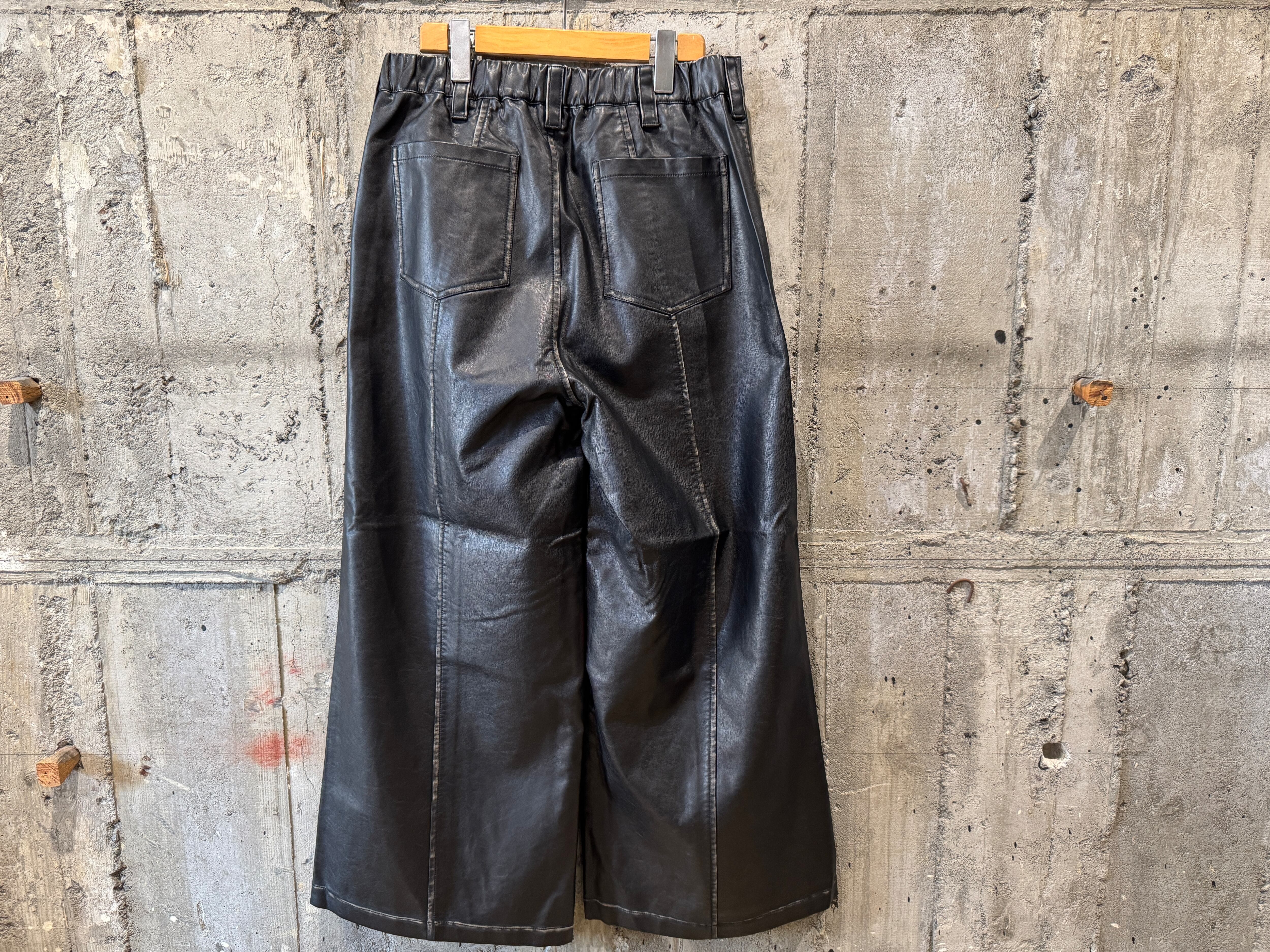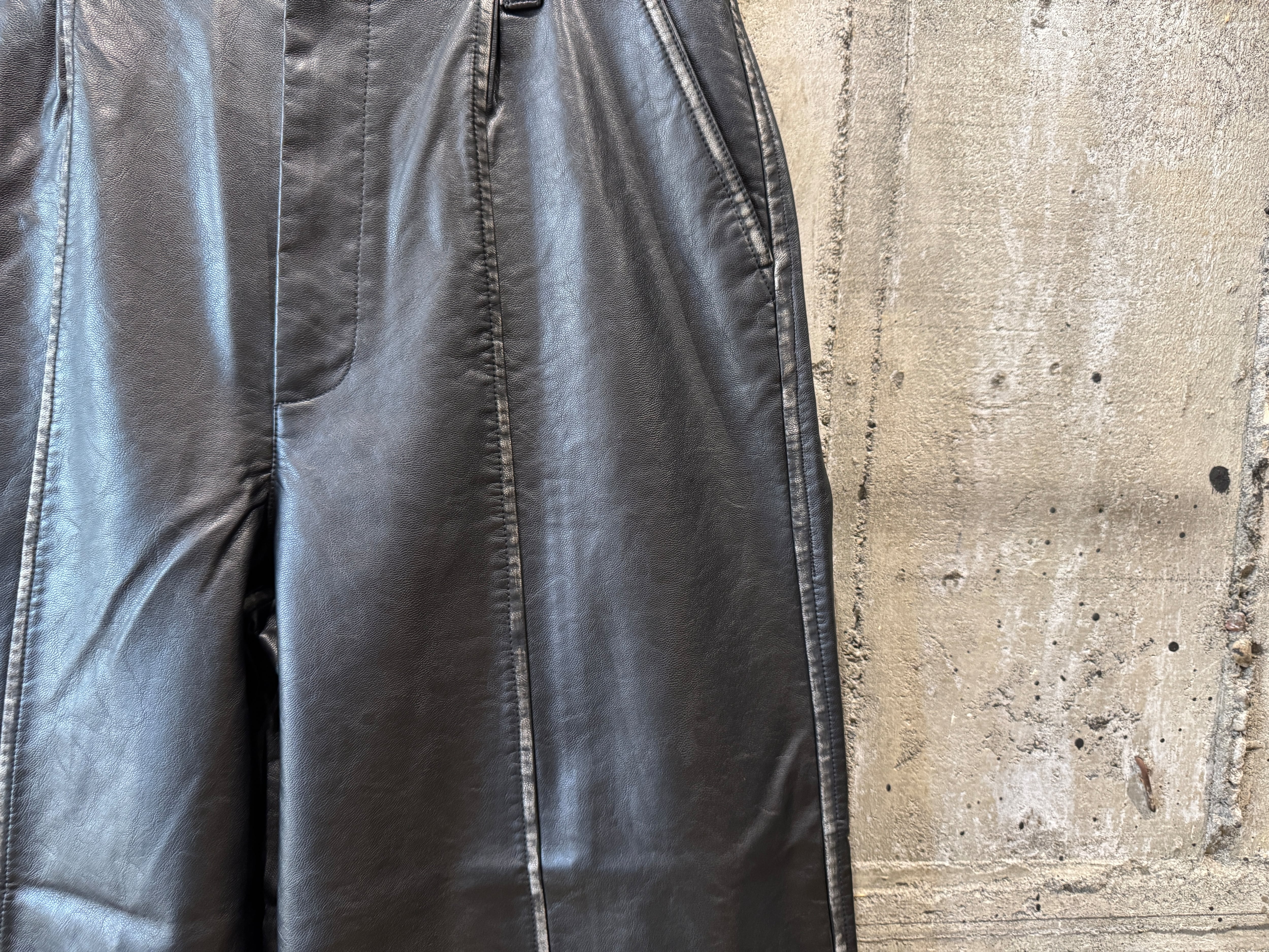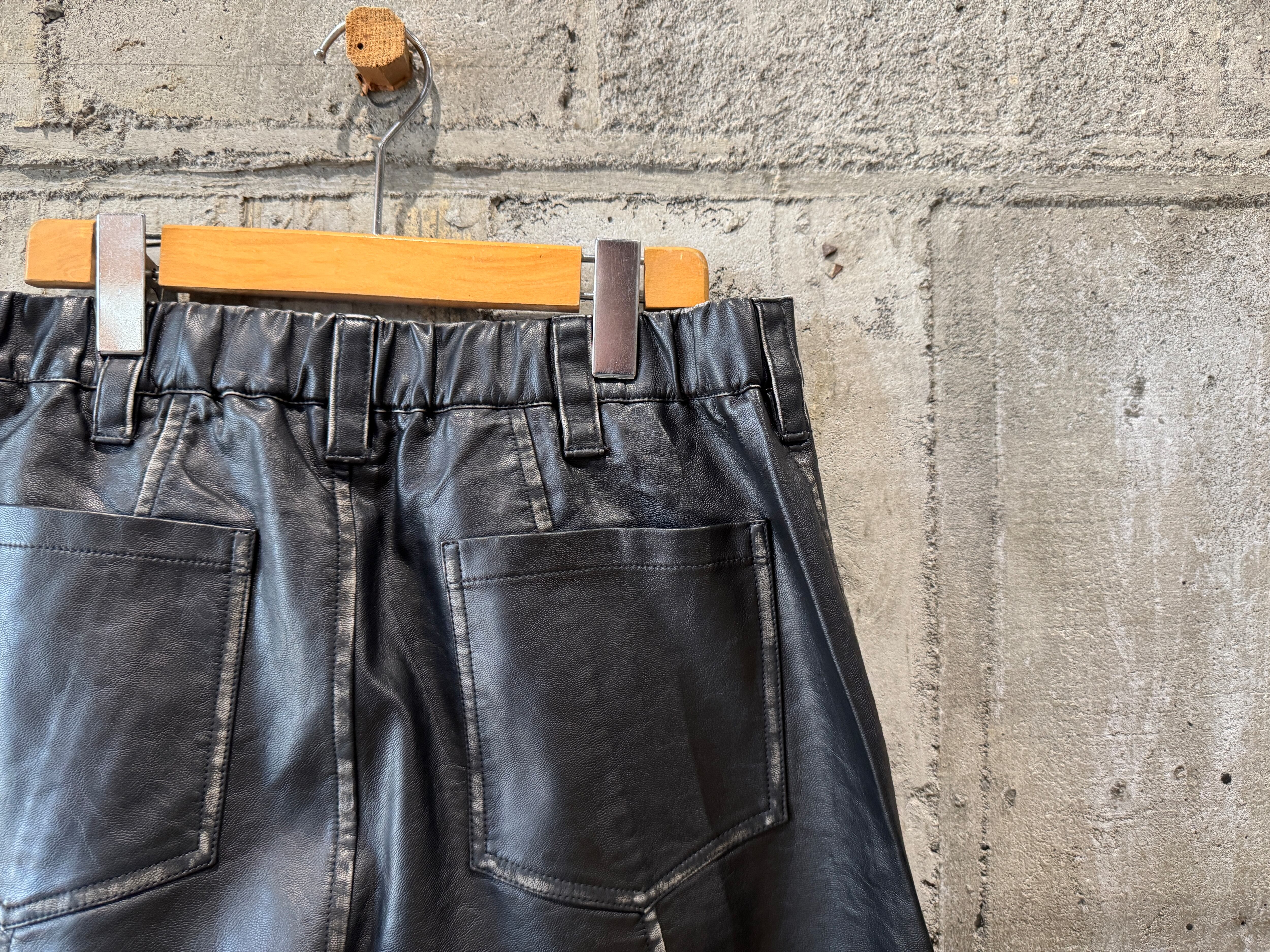 シボ感のあるフェイクレザー生地を使用したデザインパンツ。