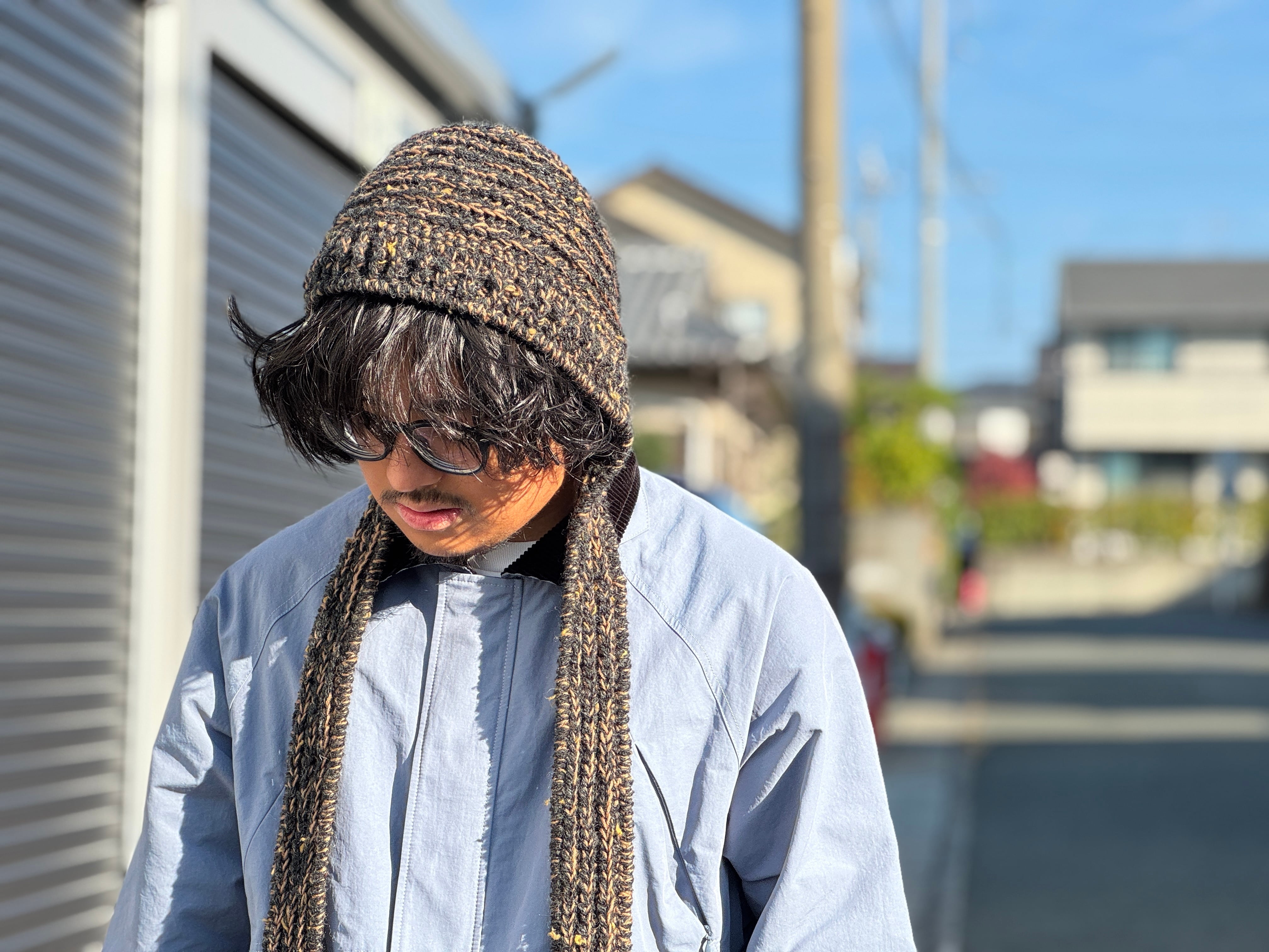 コチラの新作も手編みの丁寧に編まれたイアフラップビーニーの新作。