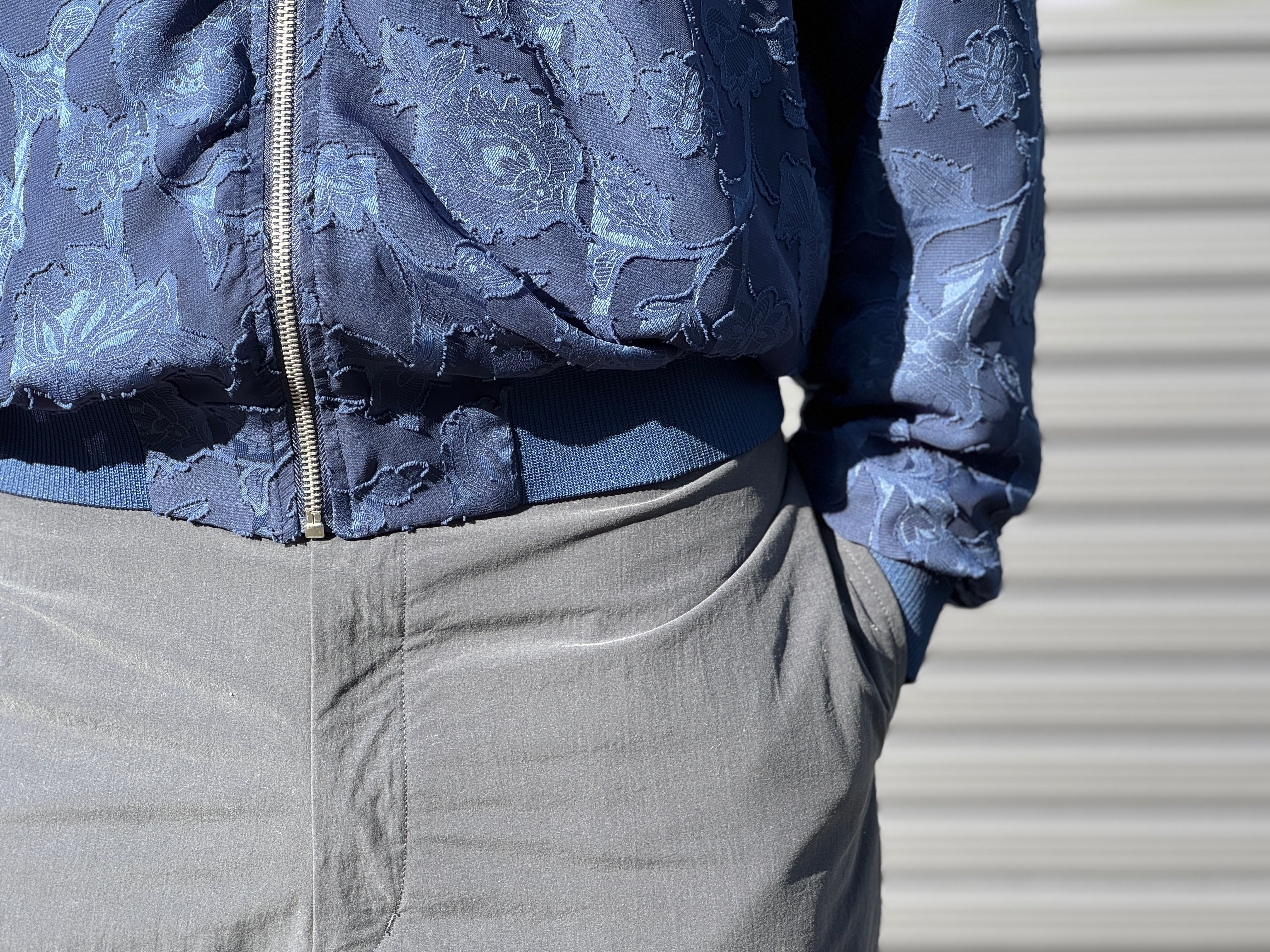 シアー感のあるボディにパッチワークでフラワーパターンが施されています。