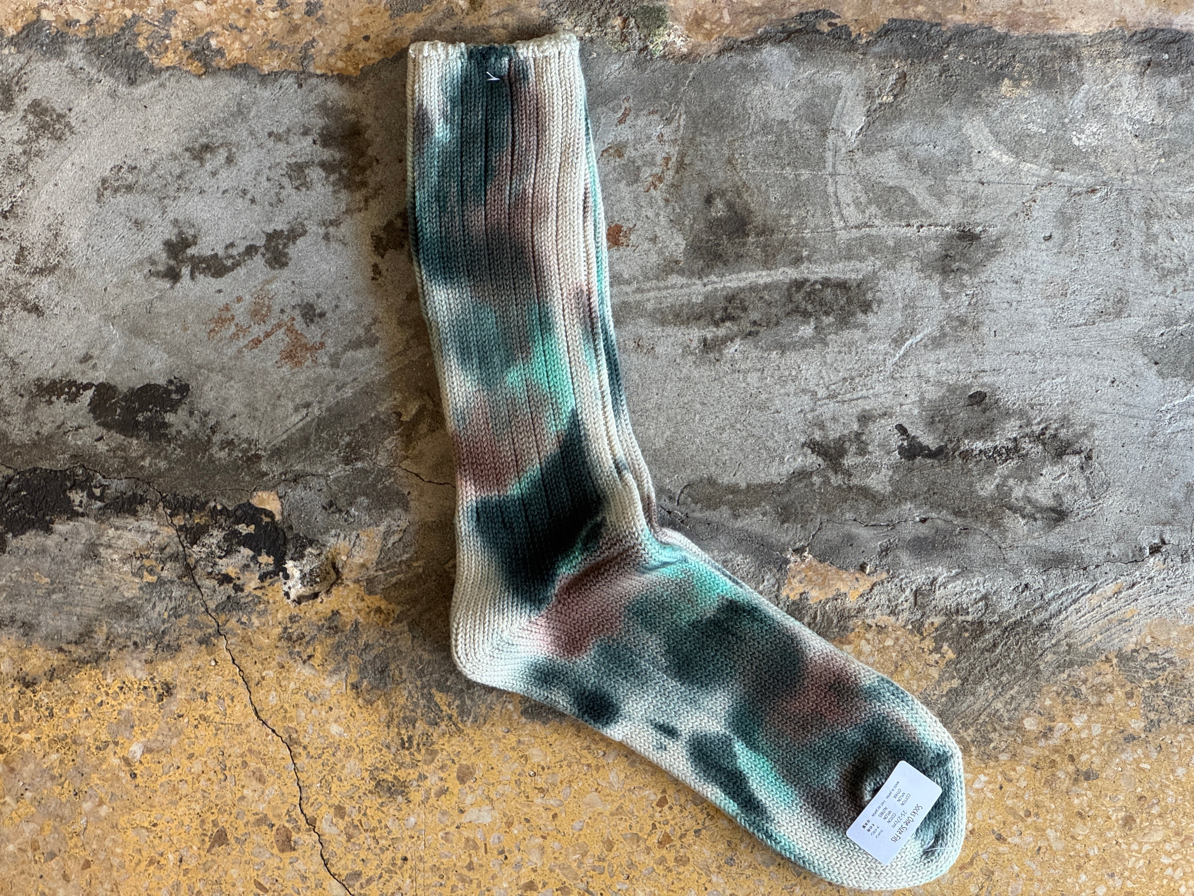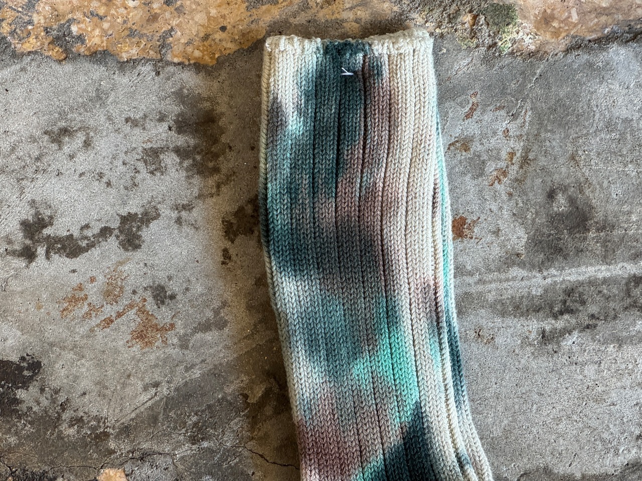 ローゲージソックスを技術の特化した染色工場で一足一足丁寧にタイダイ染めを施しています。