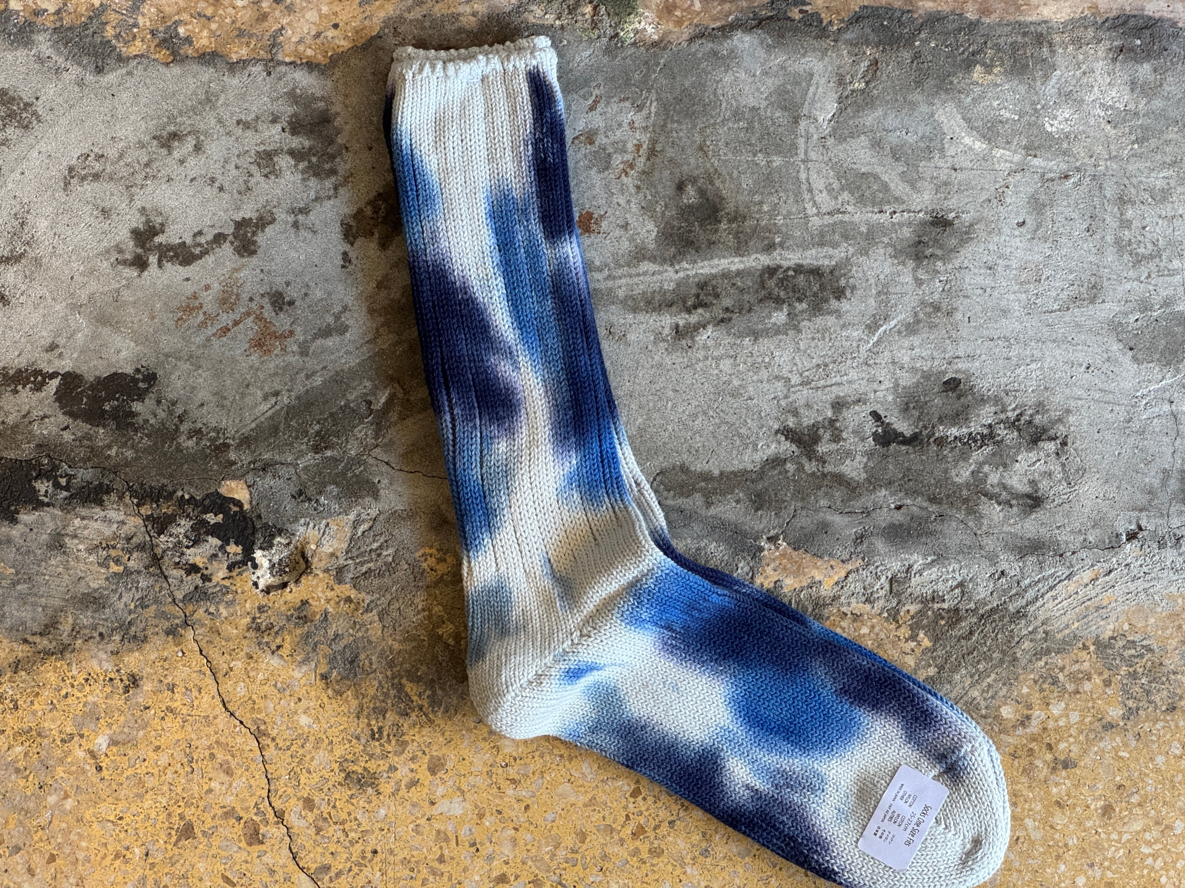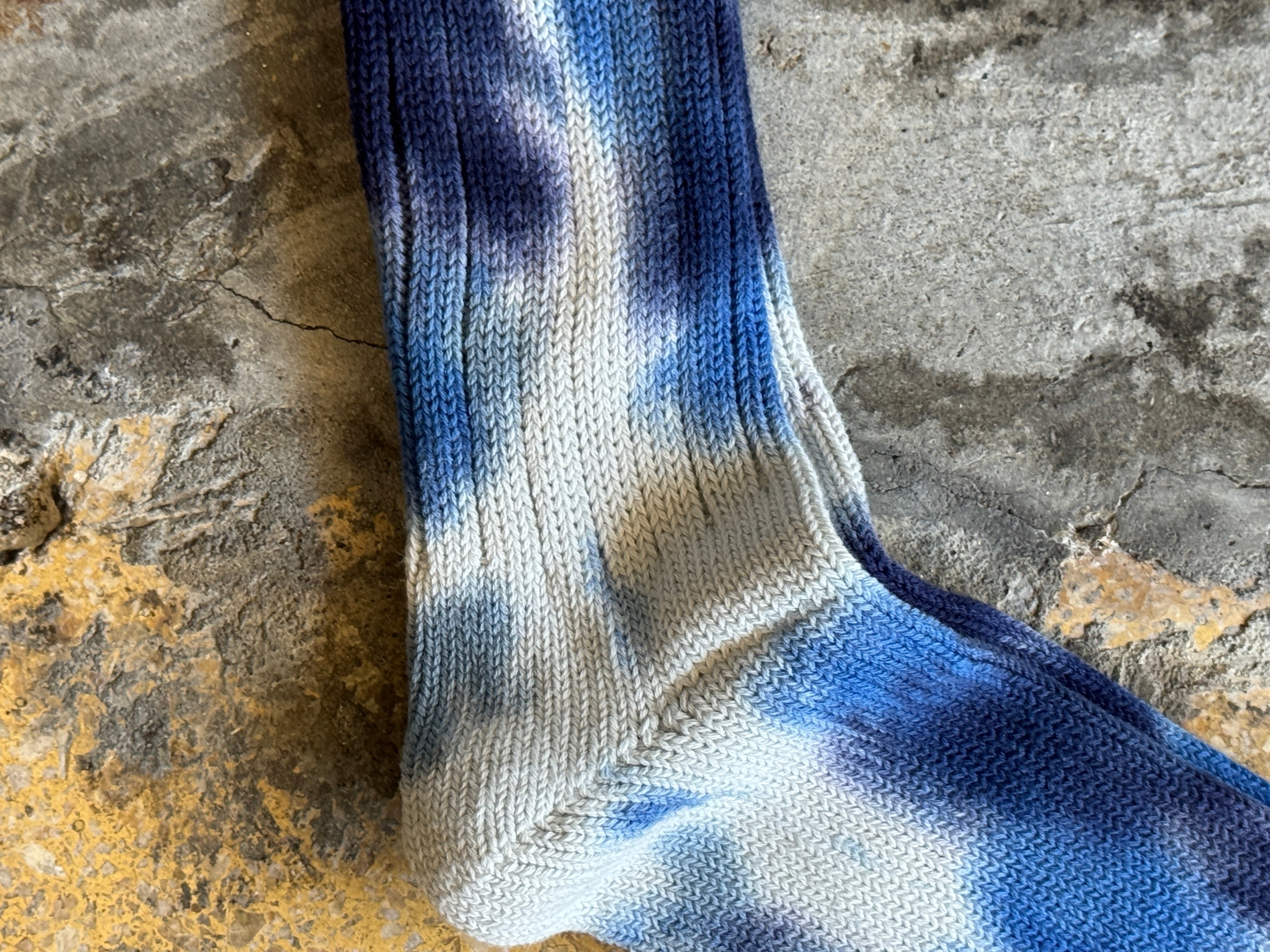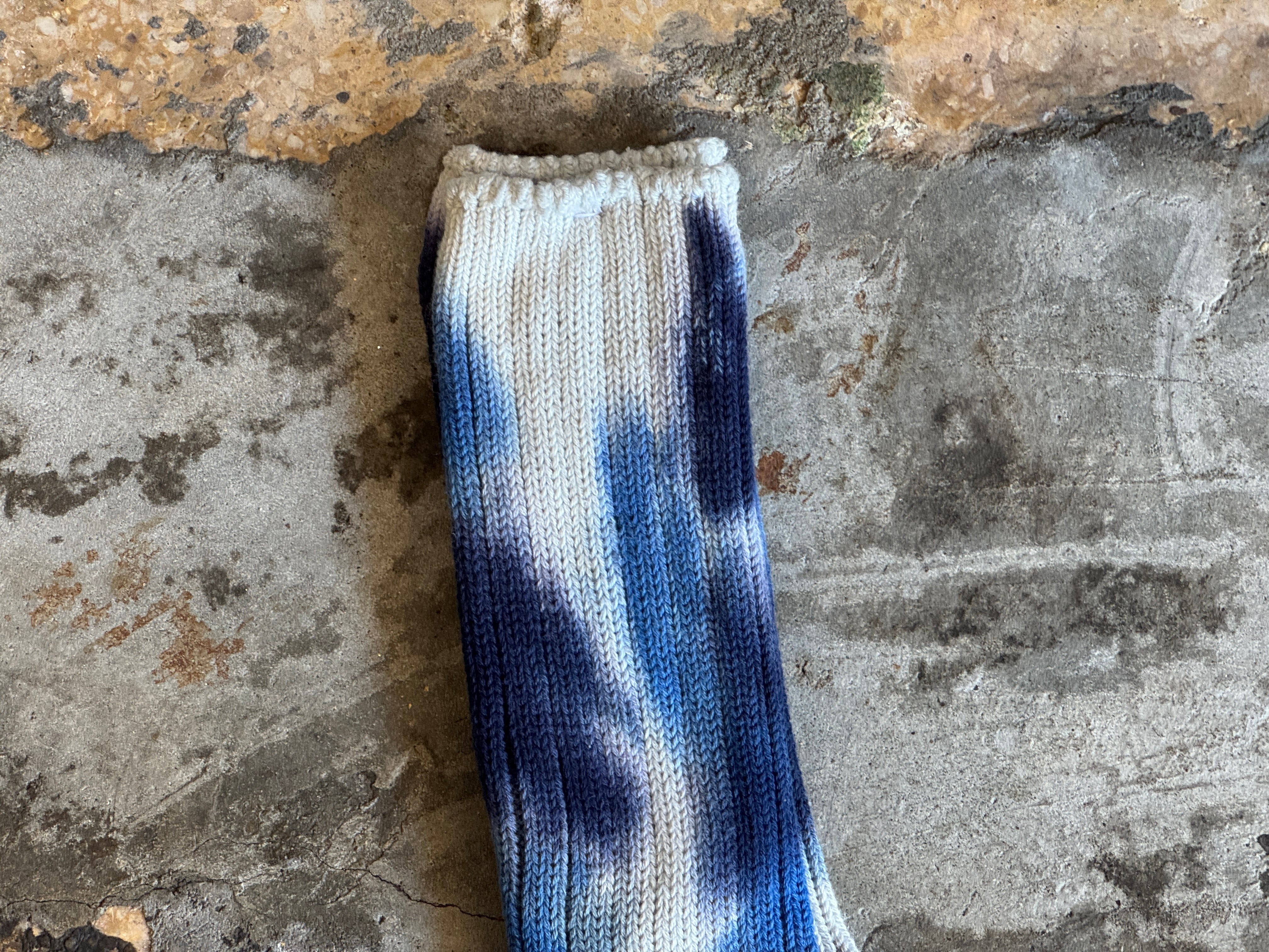 ローゲージソックスを技術の特化した染色工場で一足一足丁寧にタイダイ染めを施しています。
