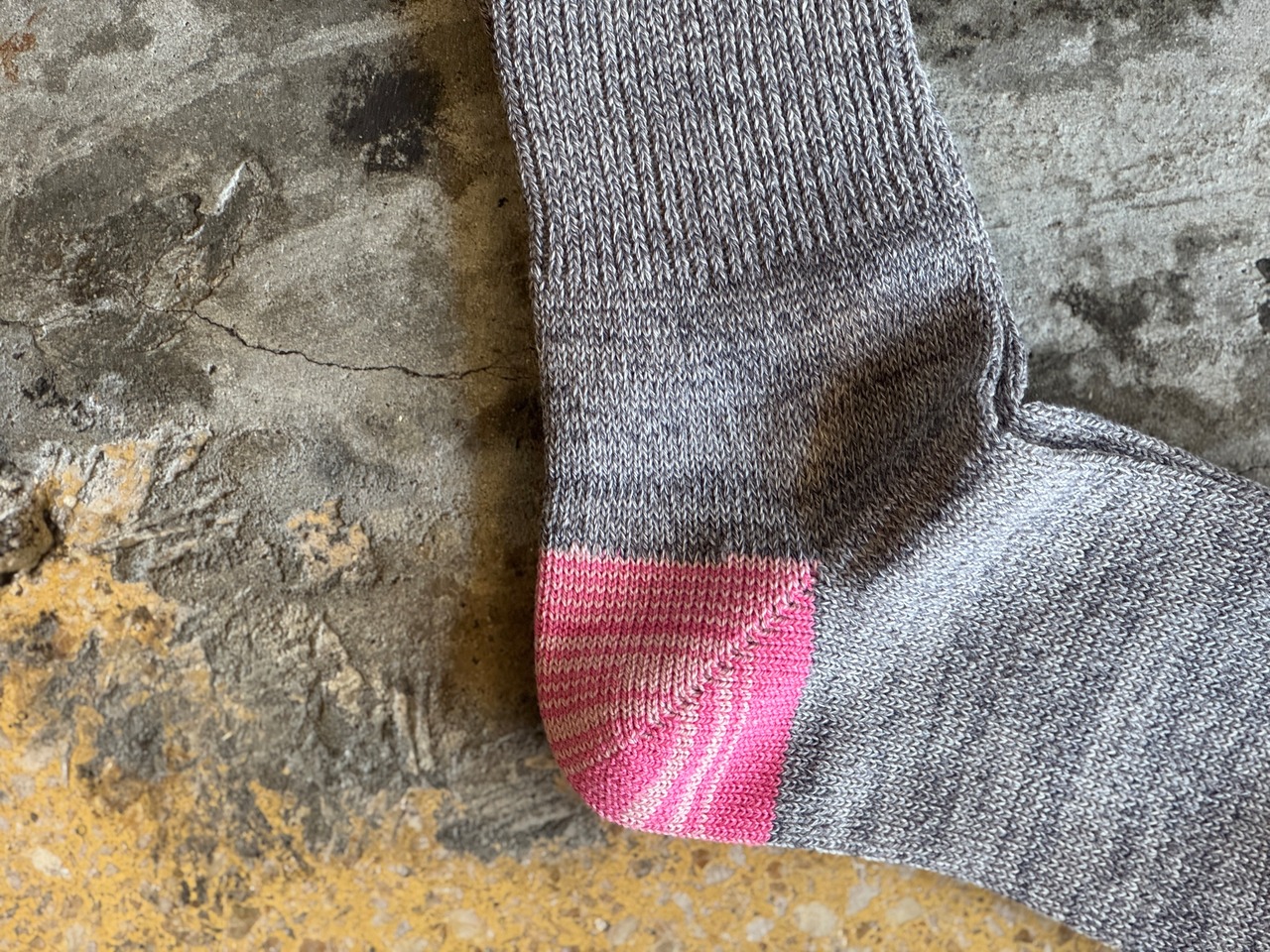 踵とつま先部分に切り替えの入ったソックス。