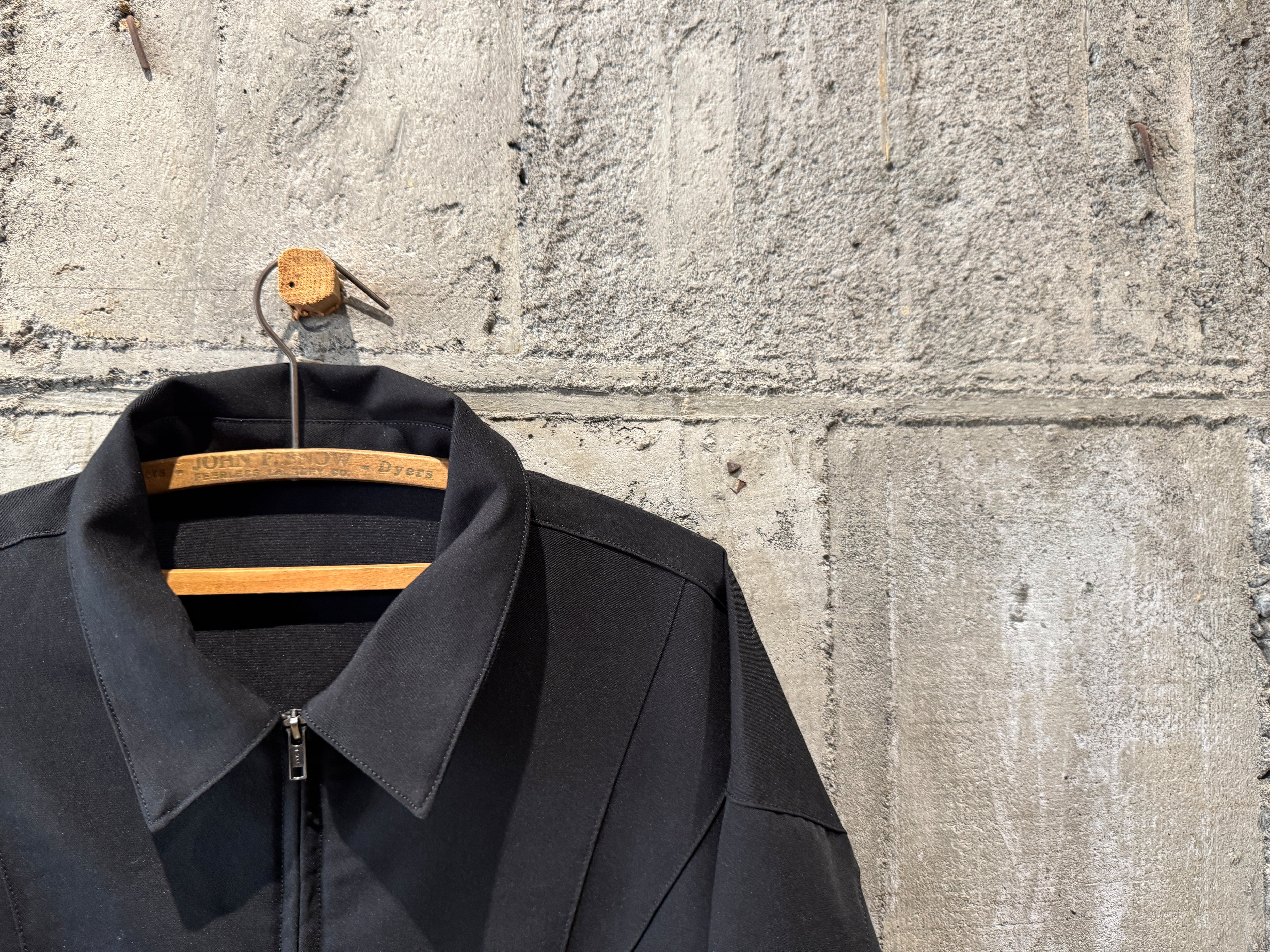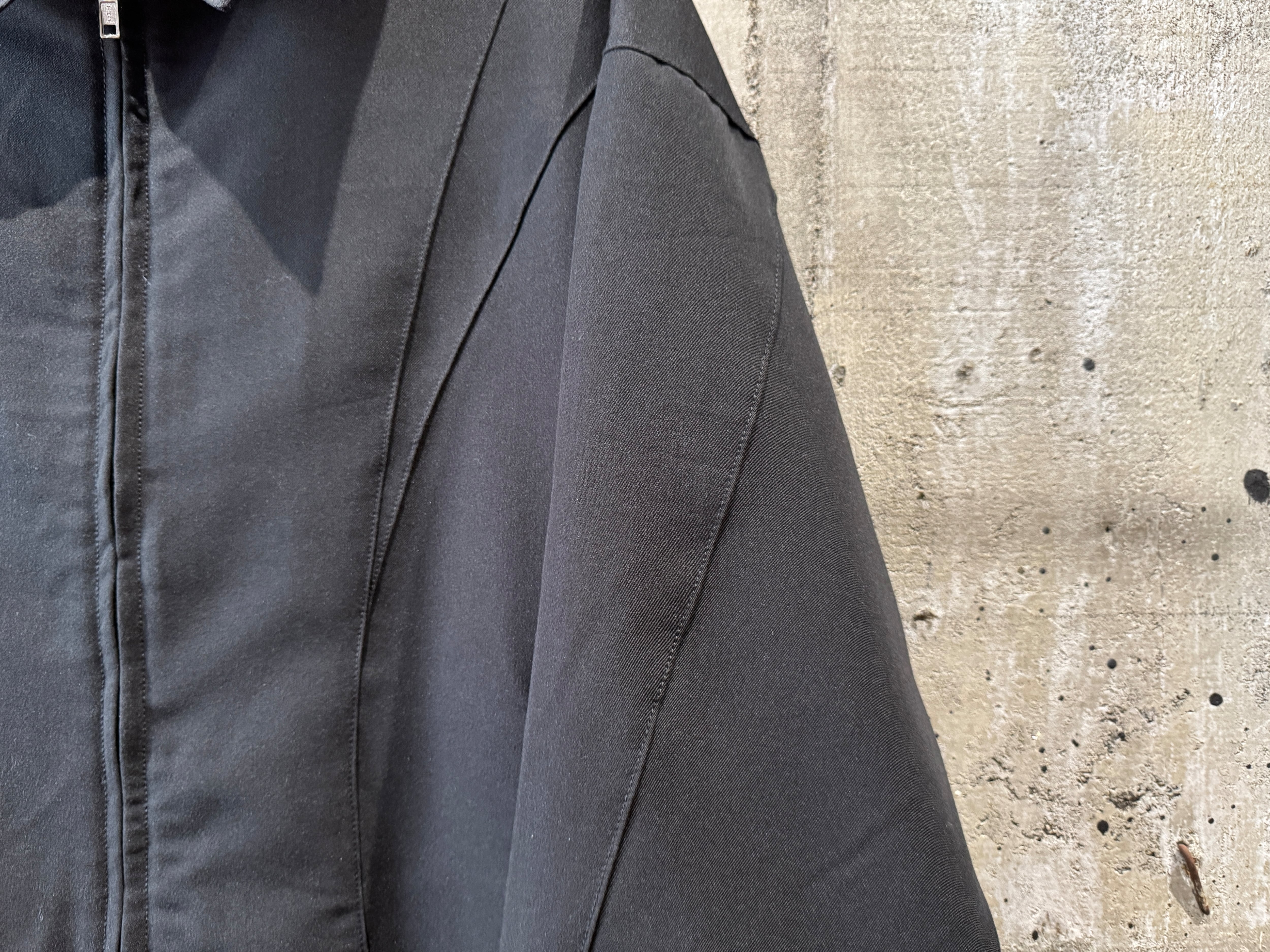上品な光沢、滑らかな肌触り、ドレープ性を兼ね備えているモダンな生地感のデザインブルゾン。
