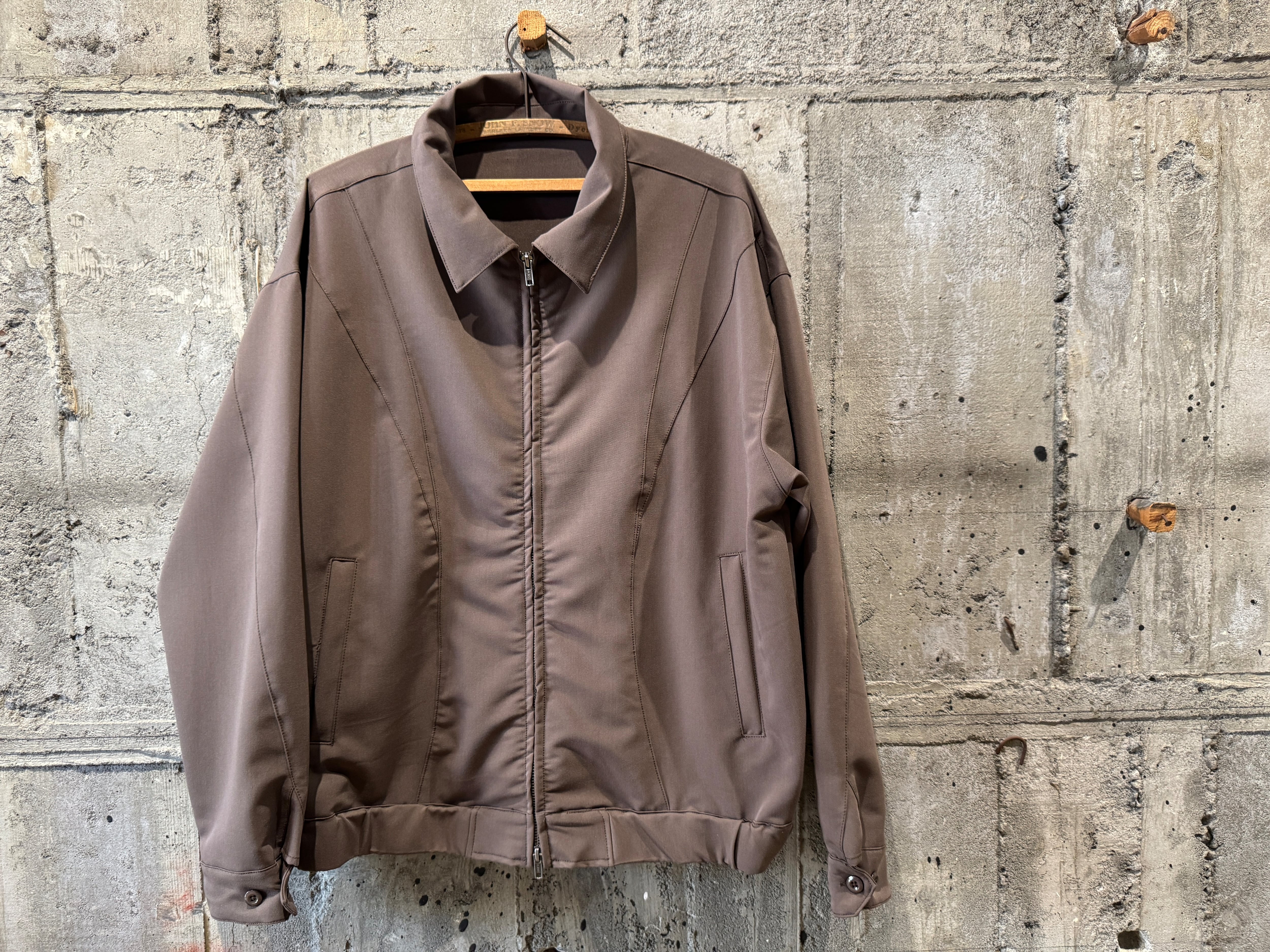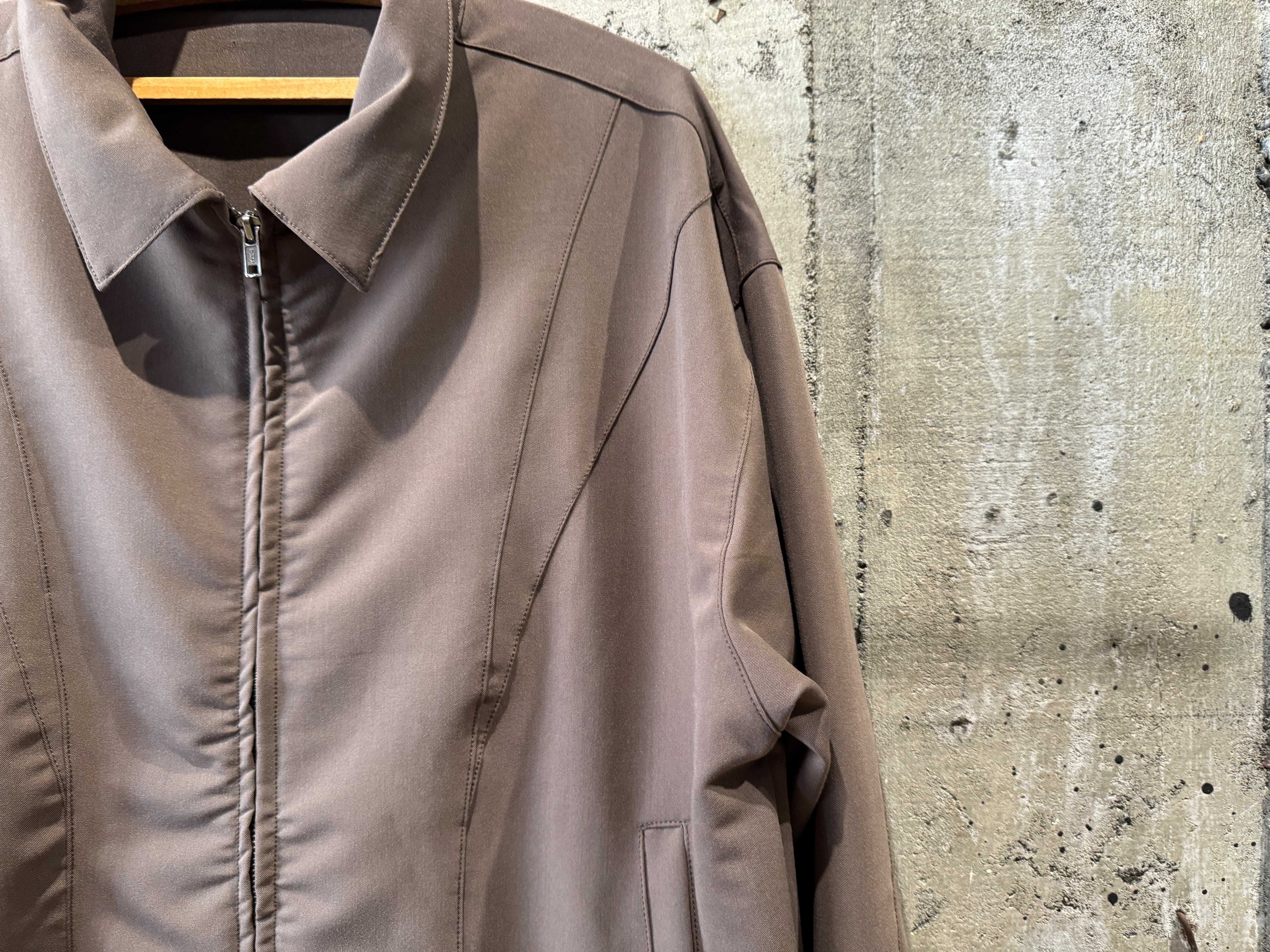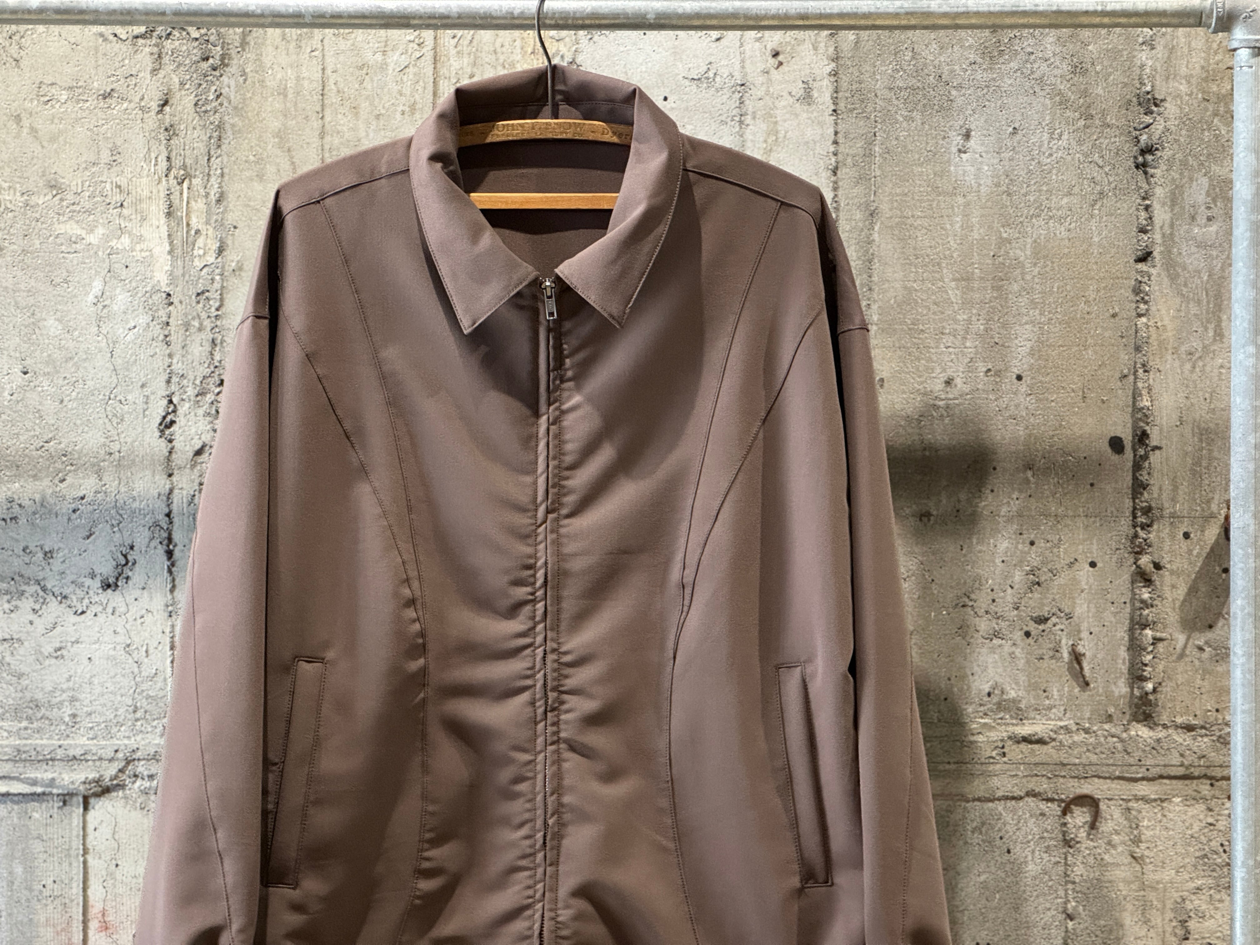 上品な光沢、滑らかな肌触り、ドレープ性を兼ね備えているモダンな生地感のデザインブルゾン。