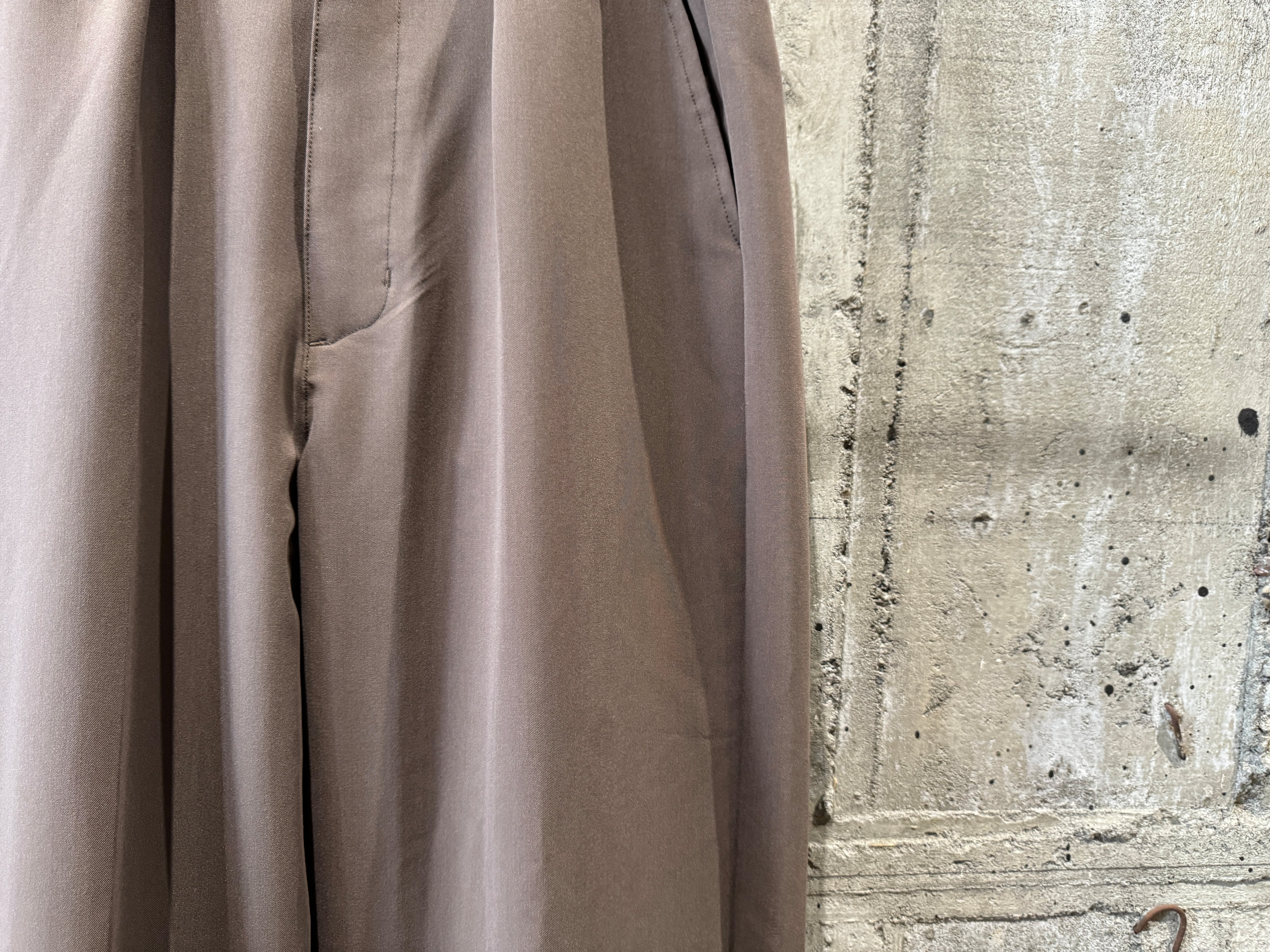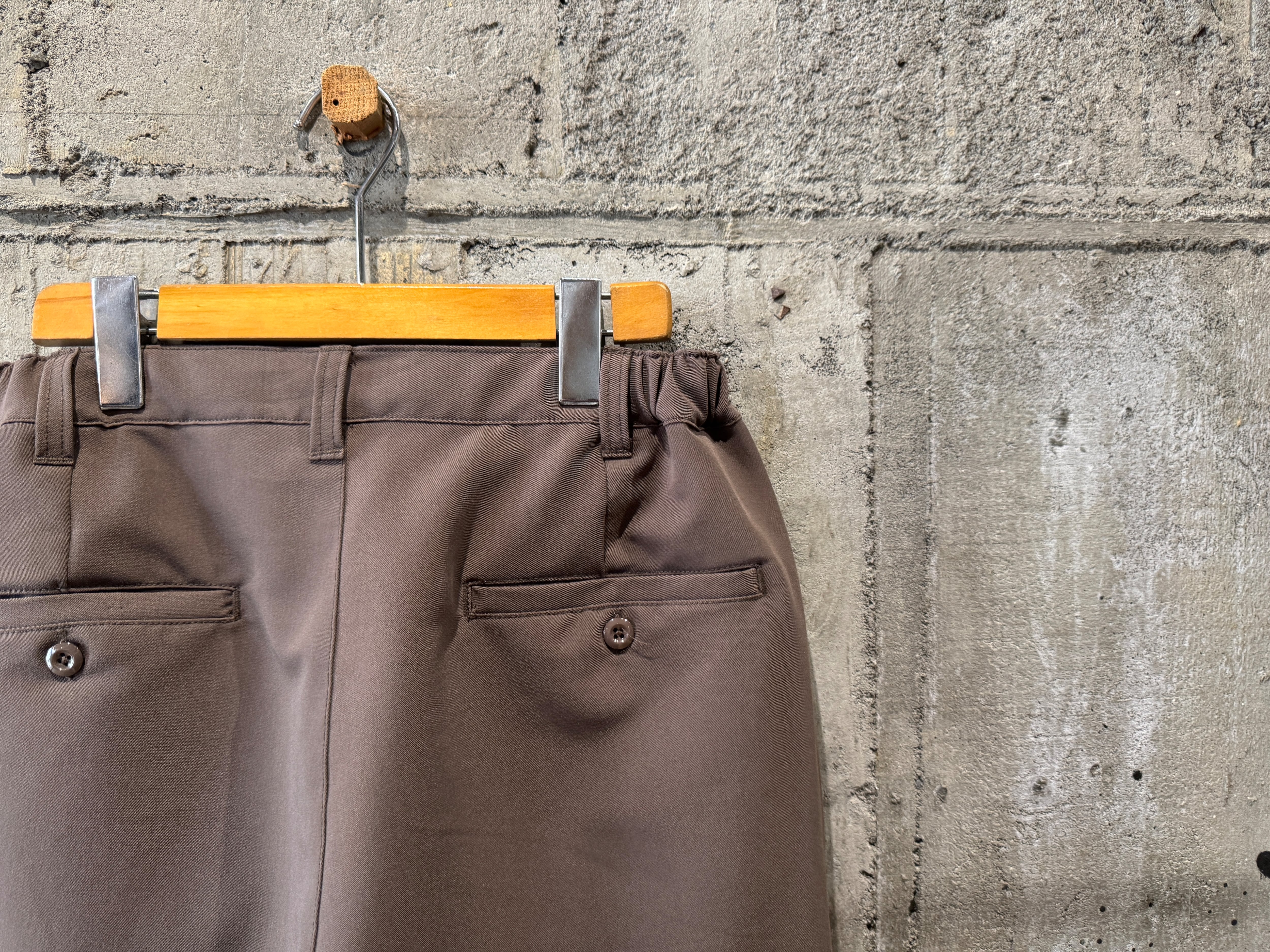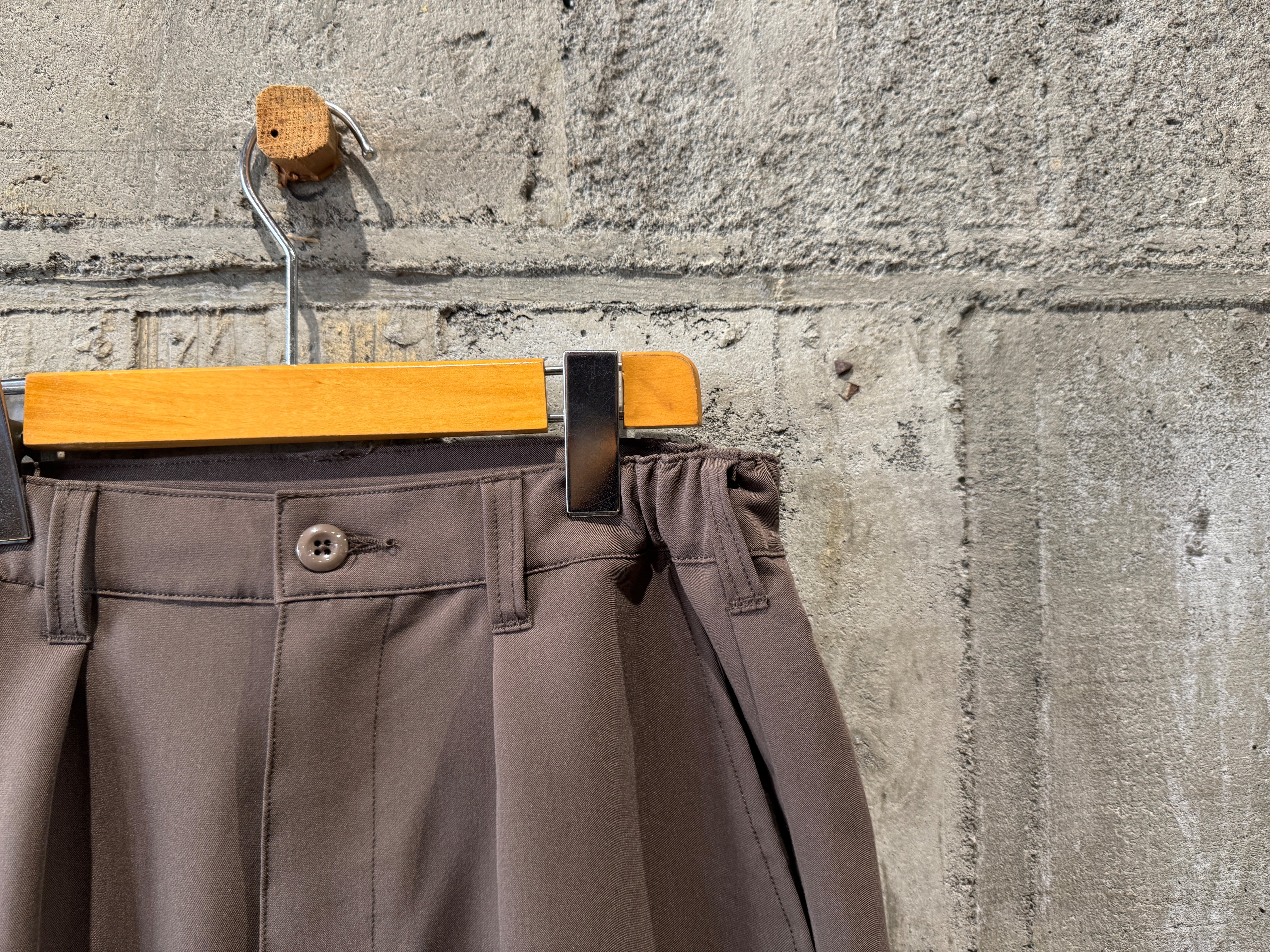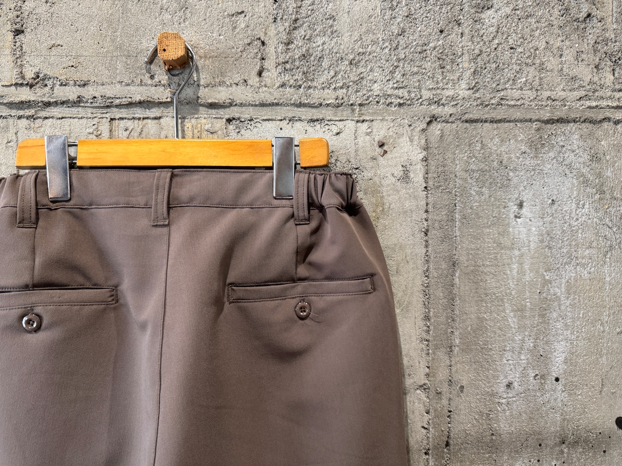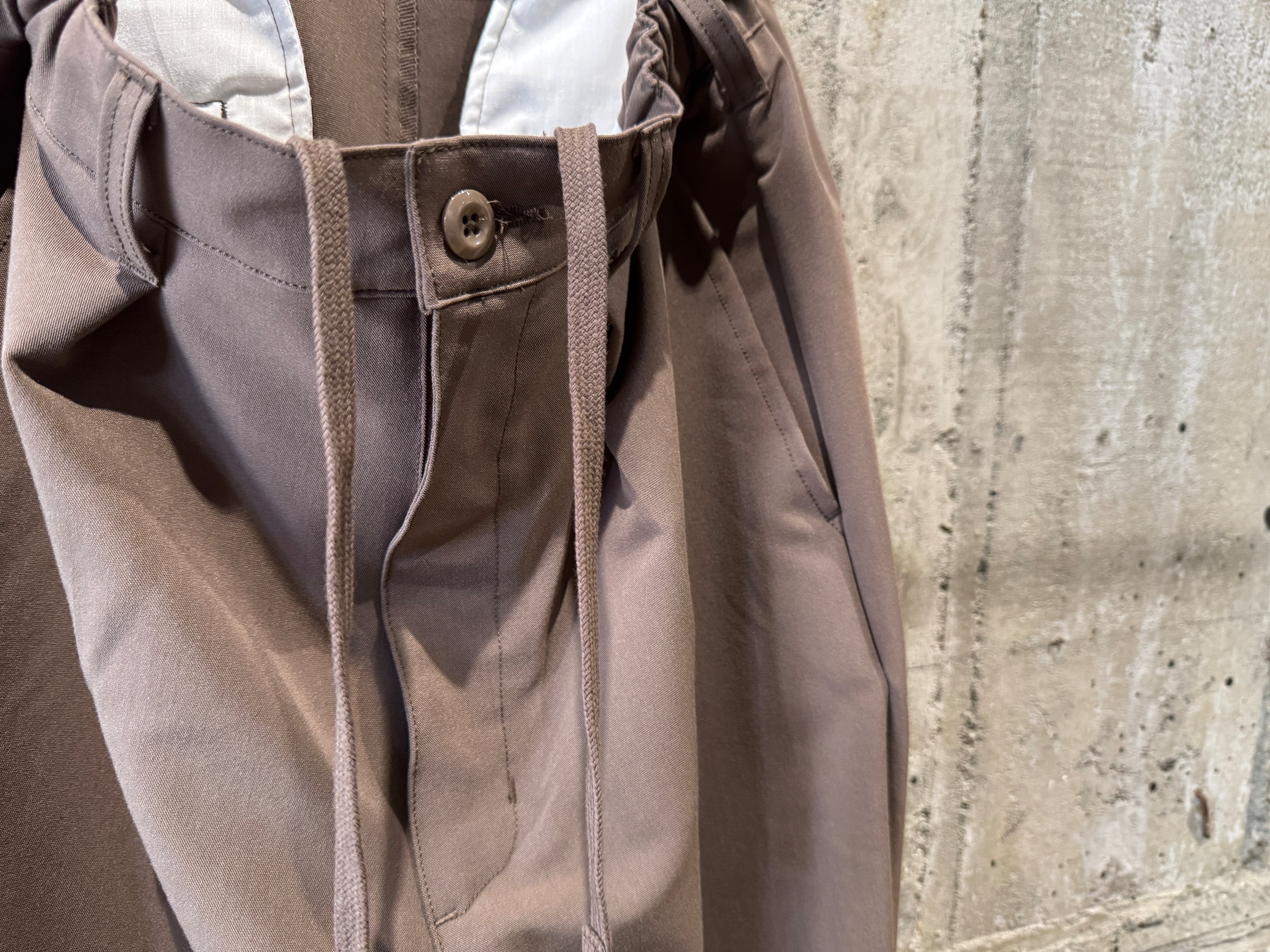1タックでセンタープレスの入った程よくワイドなシルエット。ウエストはゴムとコードのイージー仕様なので快適な穿き心地です。