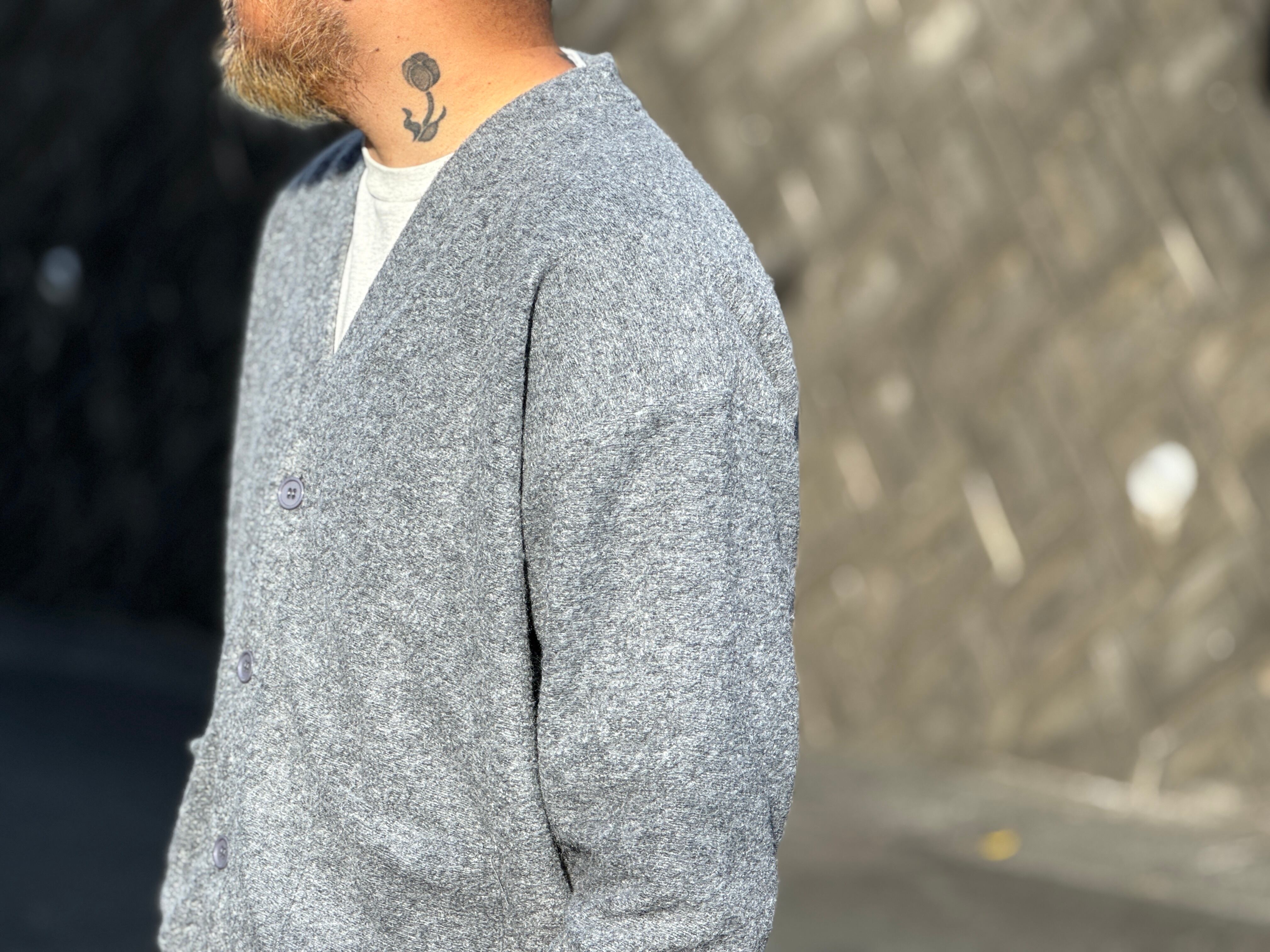モヘアタッチで毛足がやや長め。暖かく、そして伸縮性もあり快適な着心地。