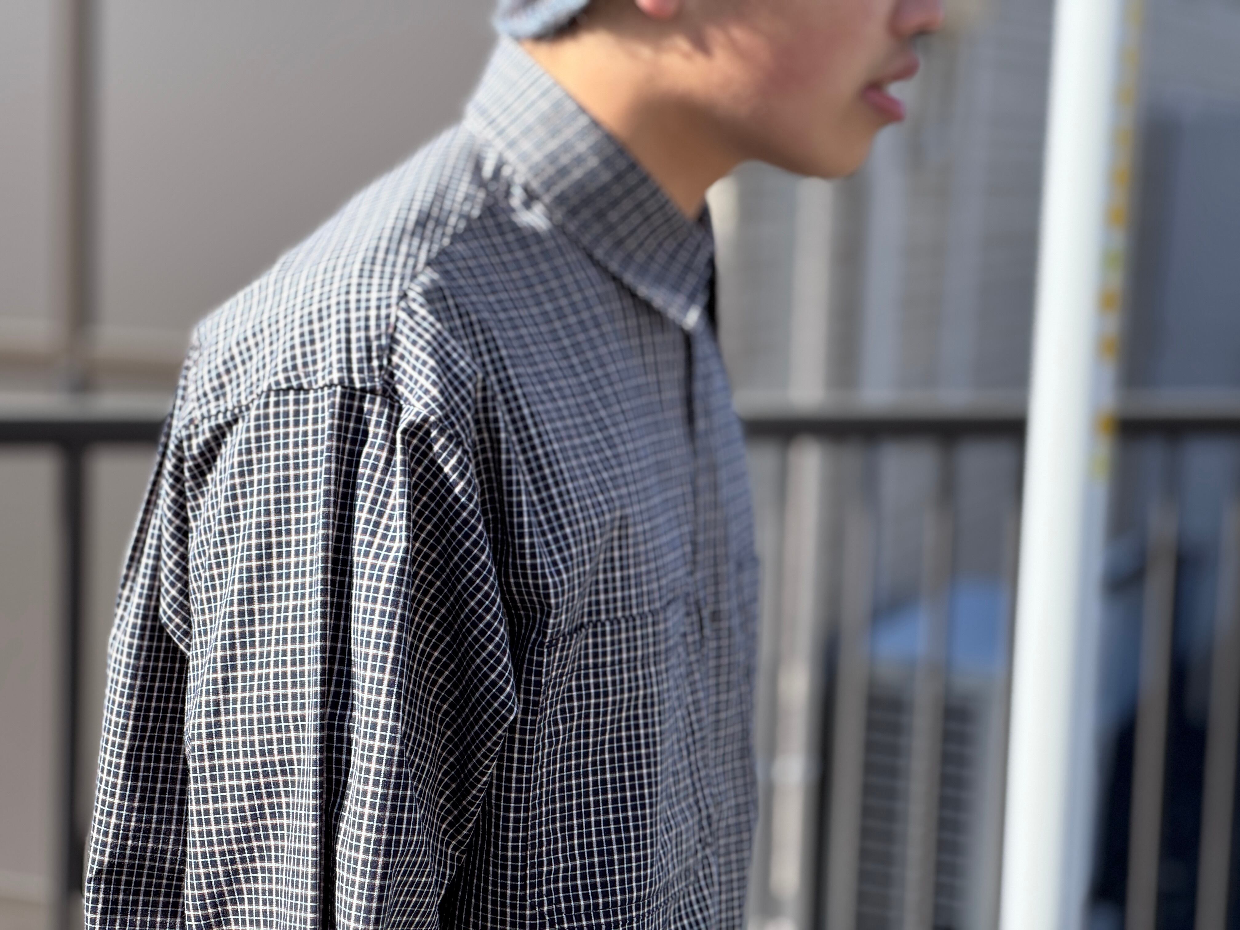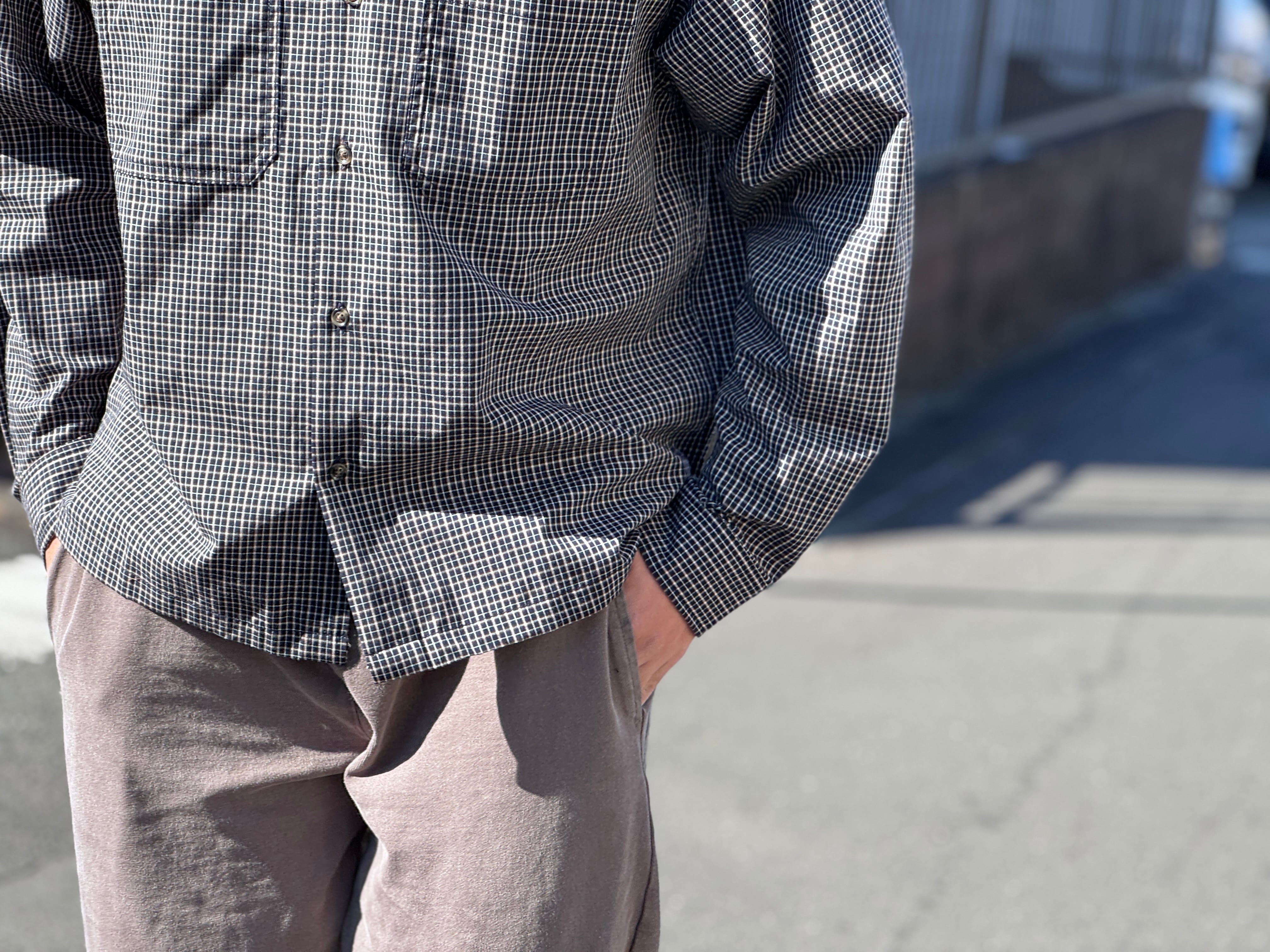 シンプルなチェックパターンを採用、シルエットは程よく短丈、程よくワイドなボックスシルエットです。