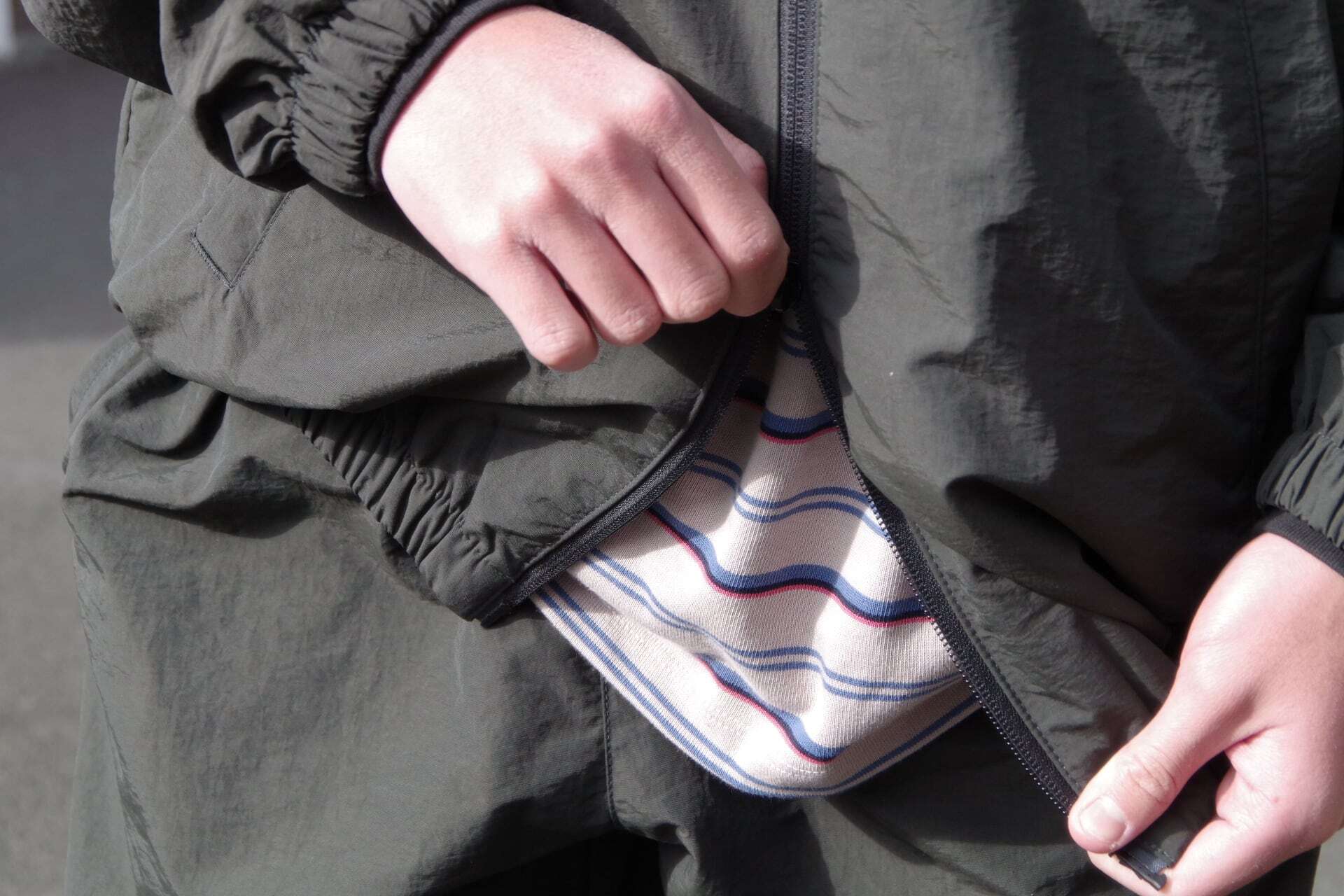90'sテイストを感じるスポーティーな雰囲気をサッと羽織るだけで取り入れられます。