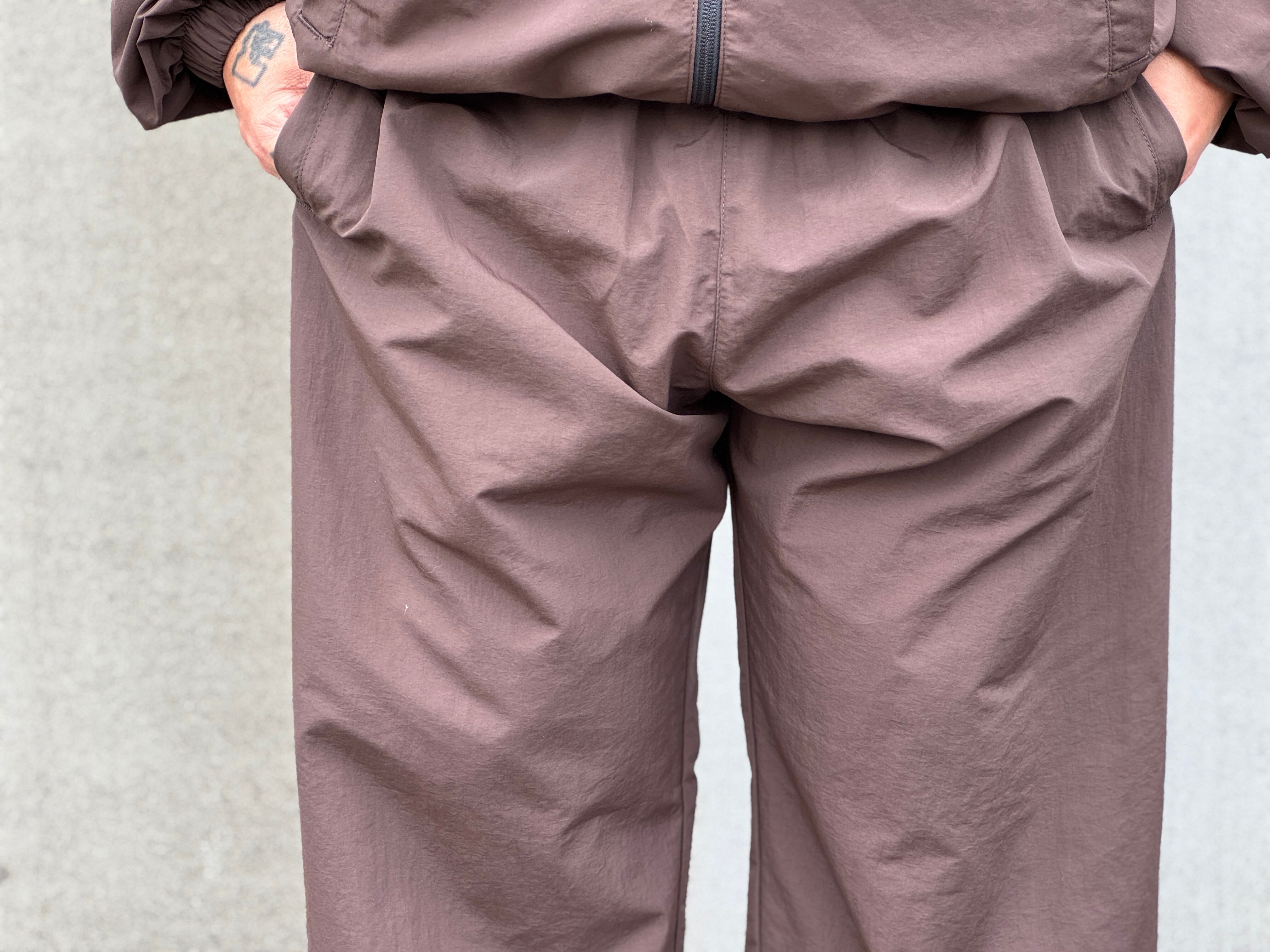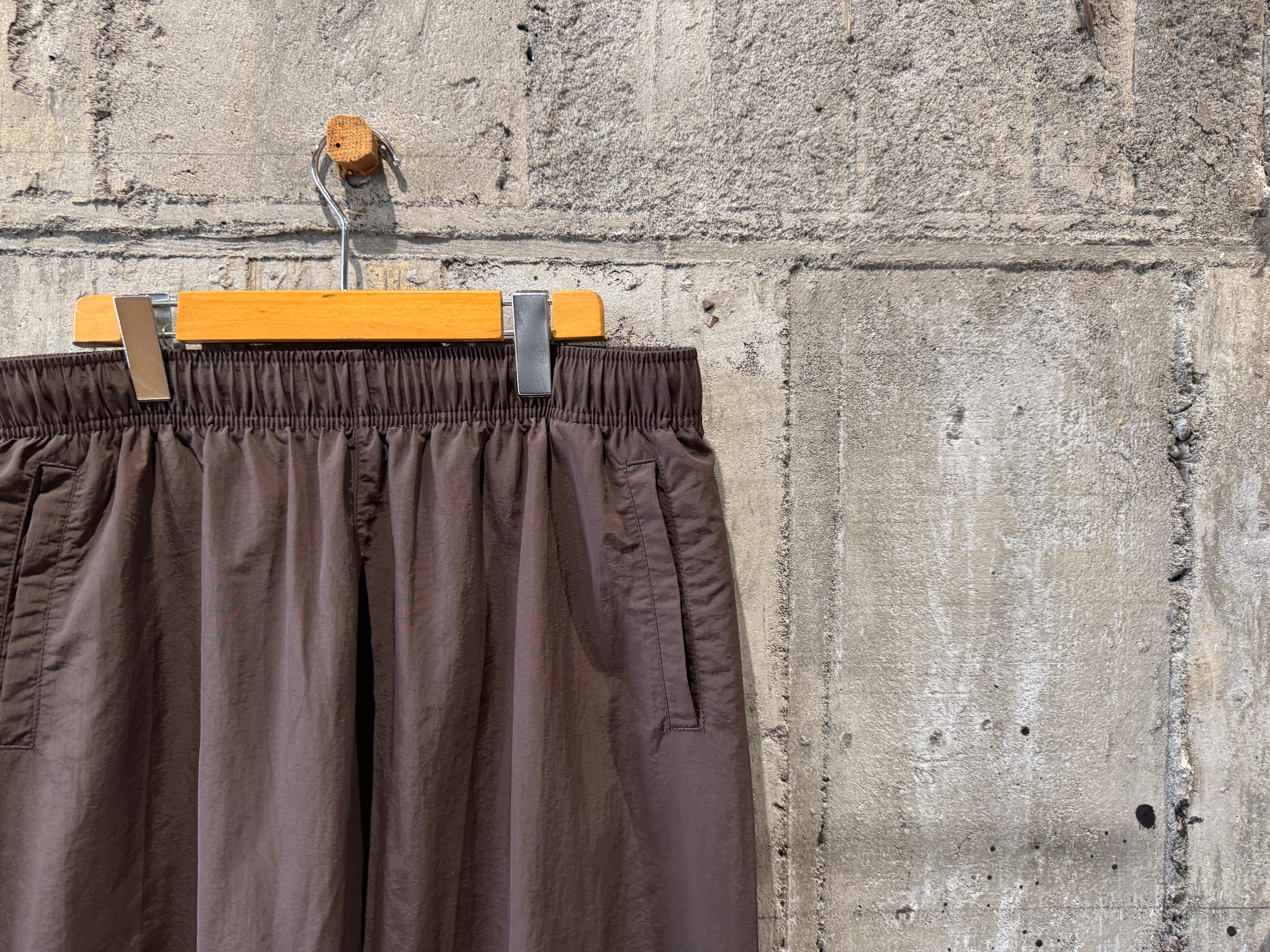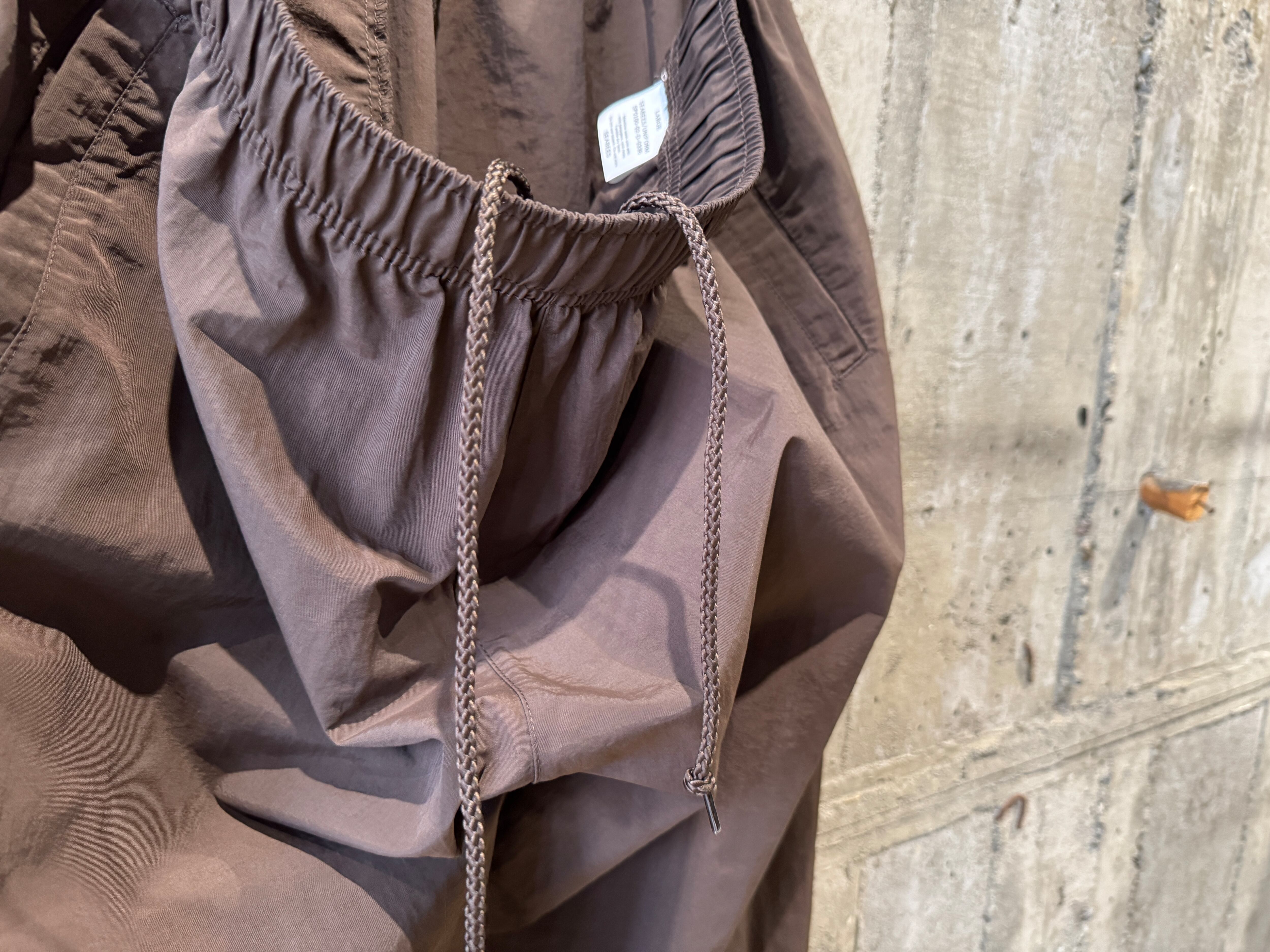 ありそうでない絶妙なコチラ。ナイロン特有のタフで軽やかな生地をシワ加工によりやわらかくコットンのような質感にしこなれた雰囲気のナイロンパンツです。