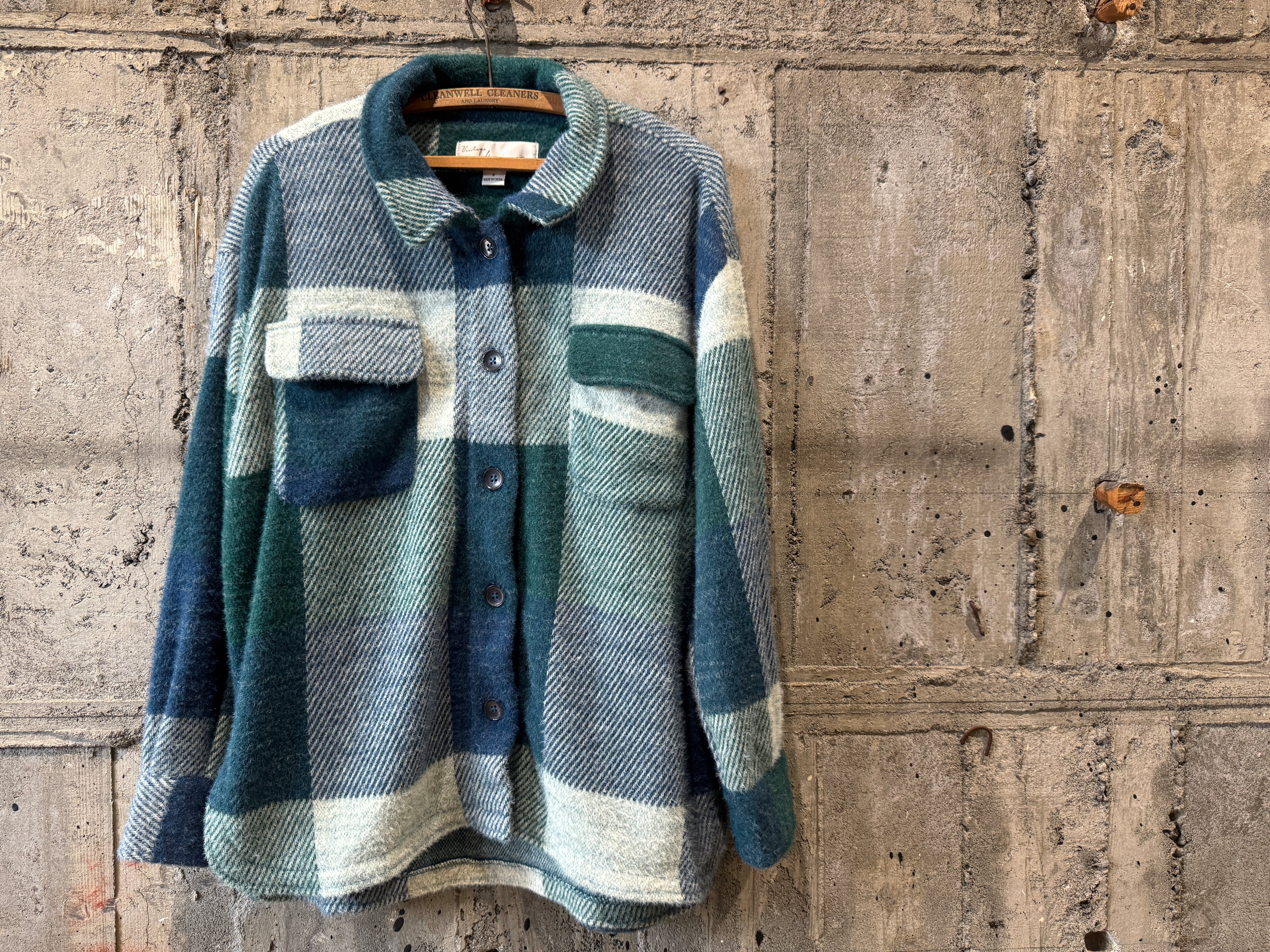 ブルー×グリーンの好配色なチェックパターン、程よく短丈で程よくワイドなシルエットです。