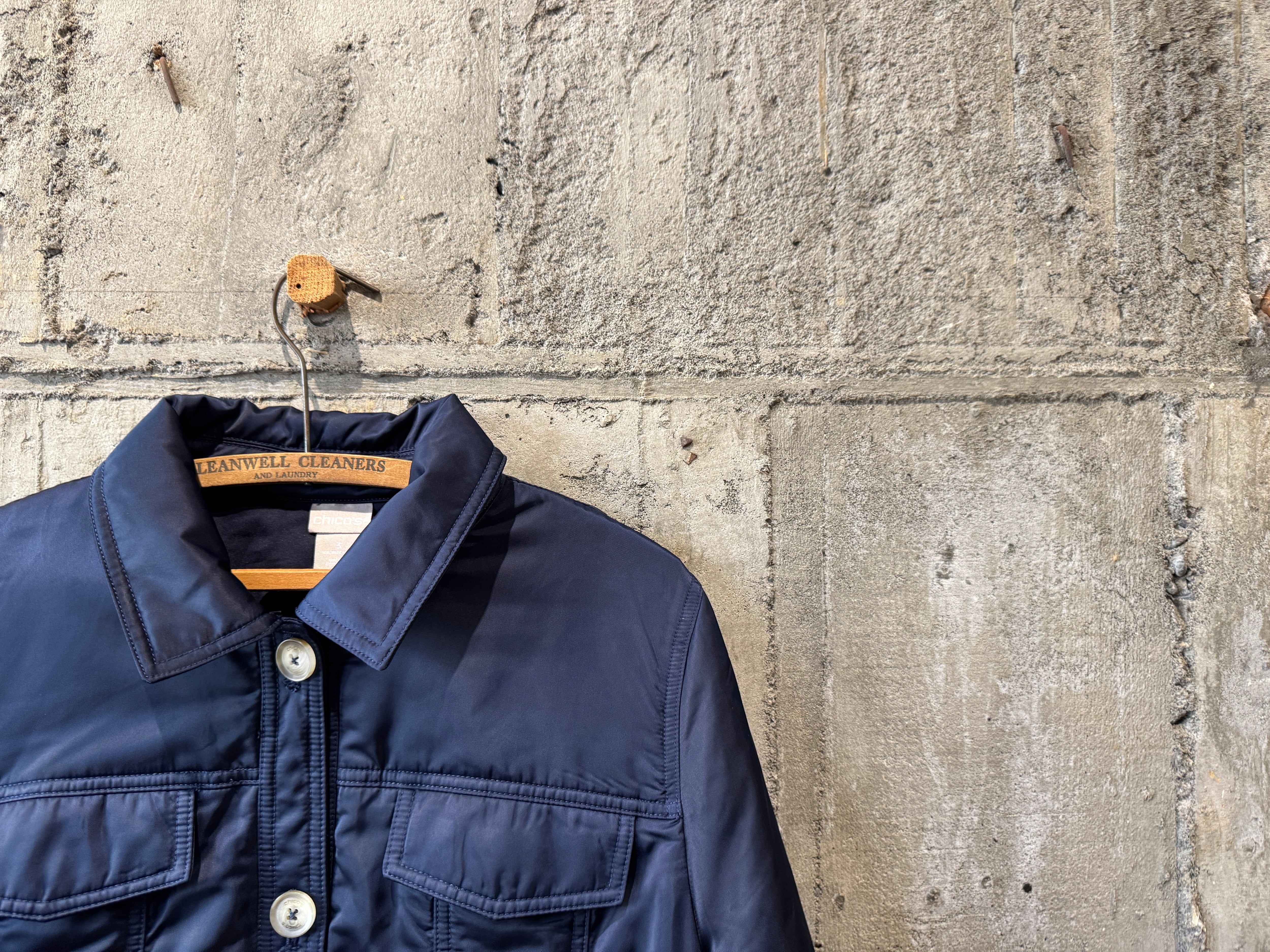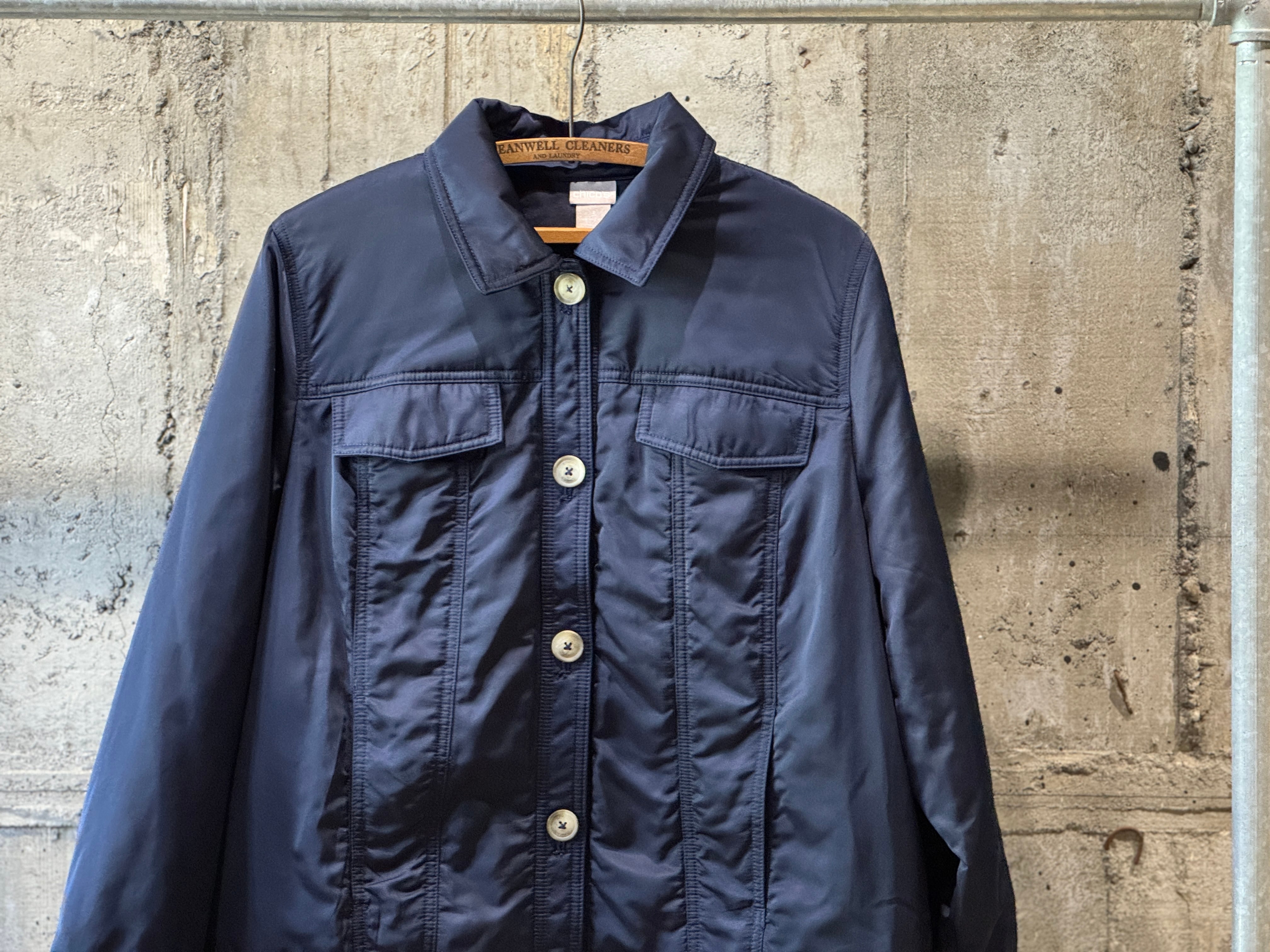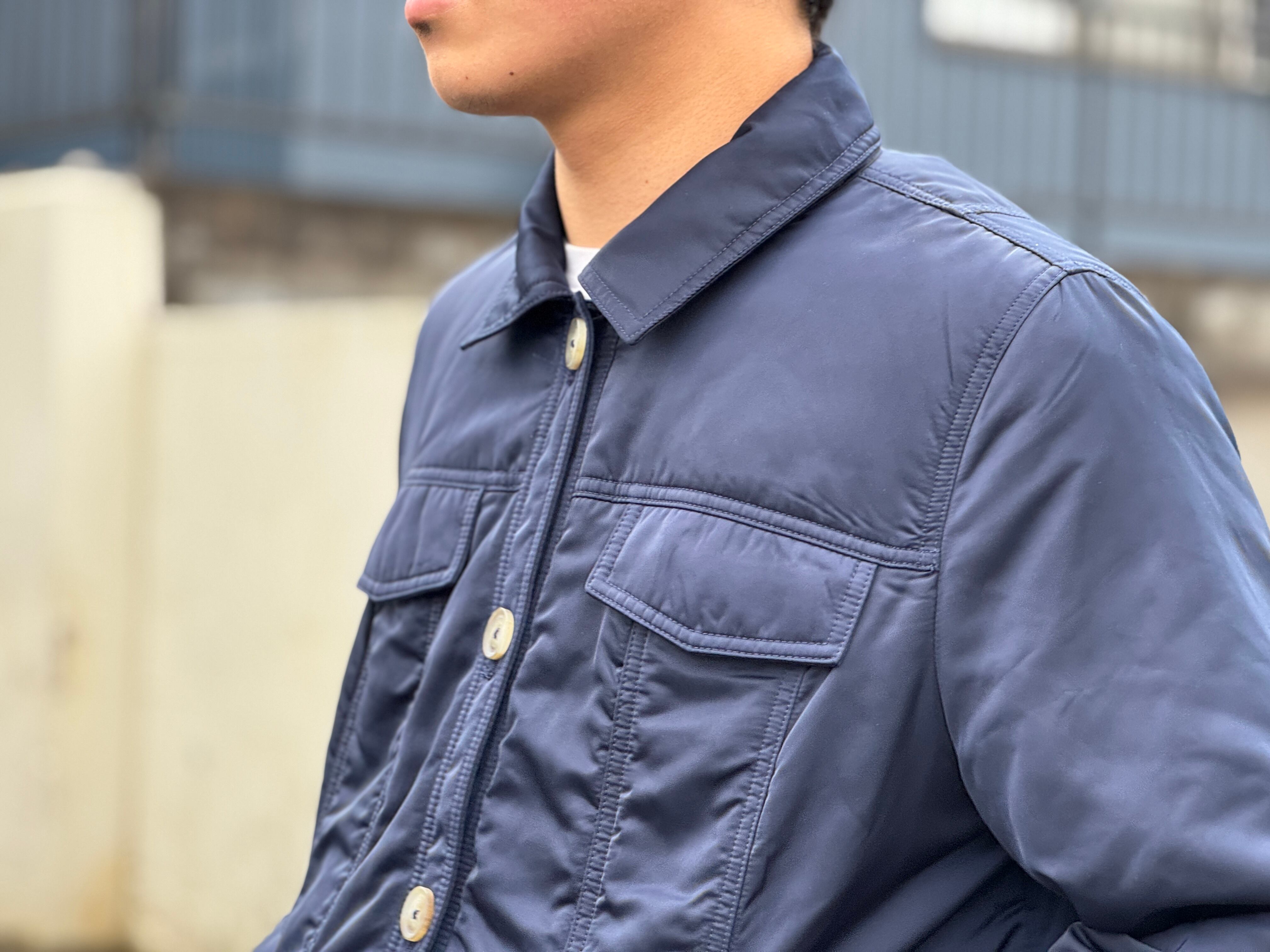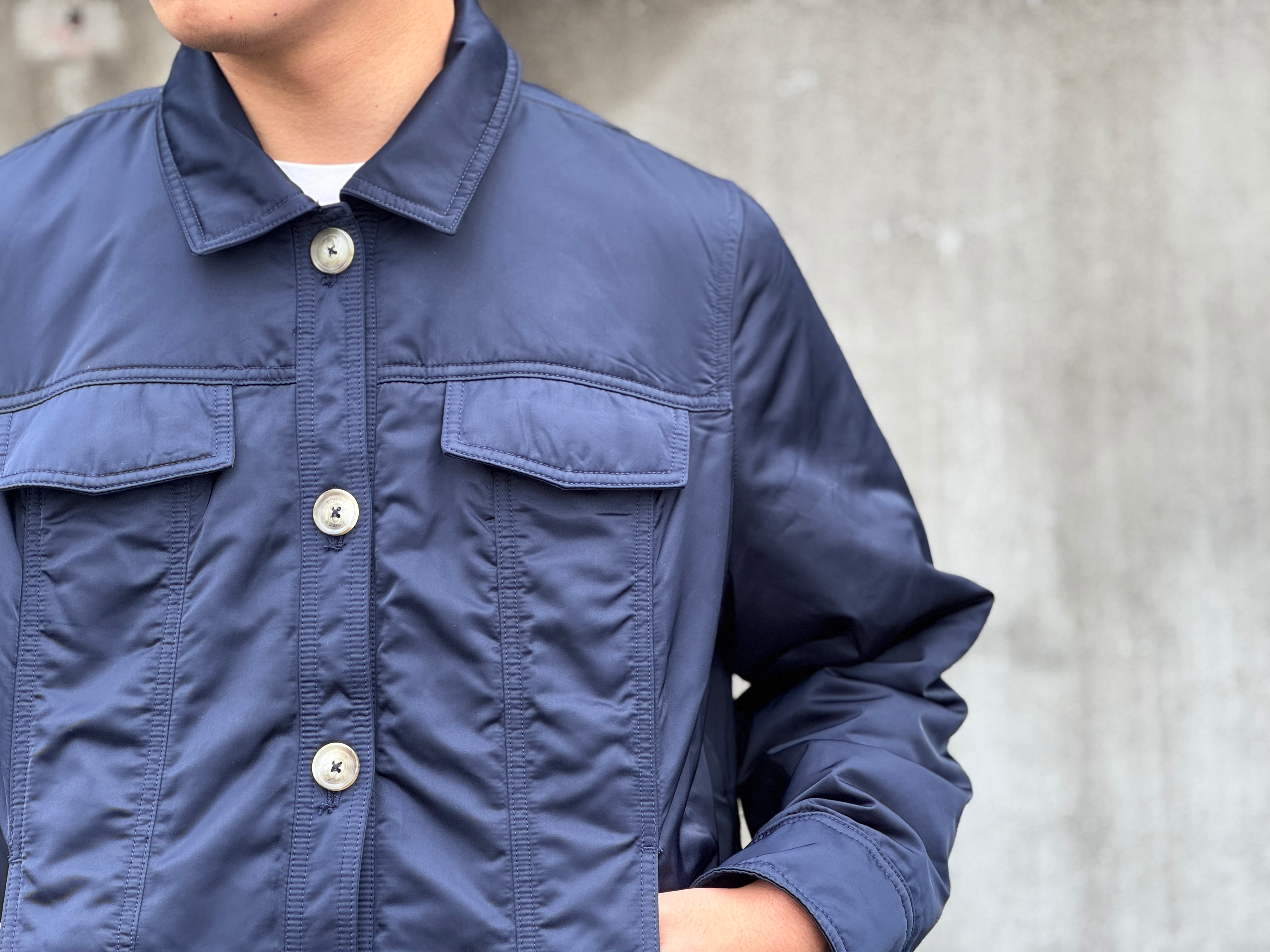 ダークネイビーカラー、両胸ポケット・スラッシュポケットの4つのポケットが配してあります。