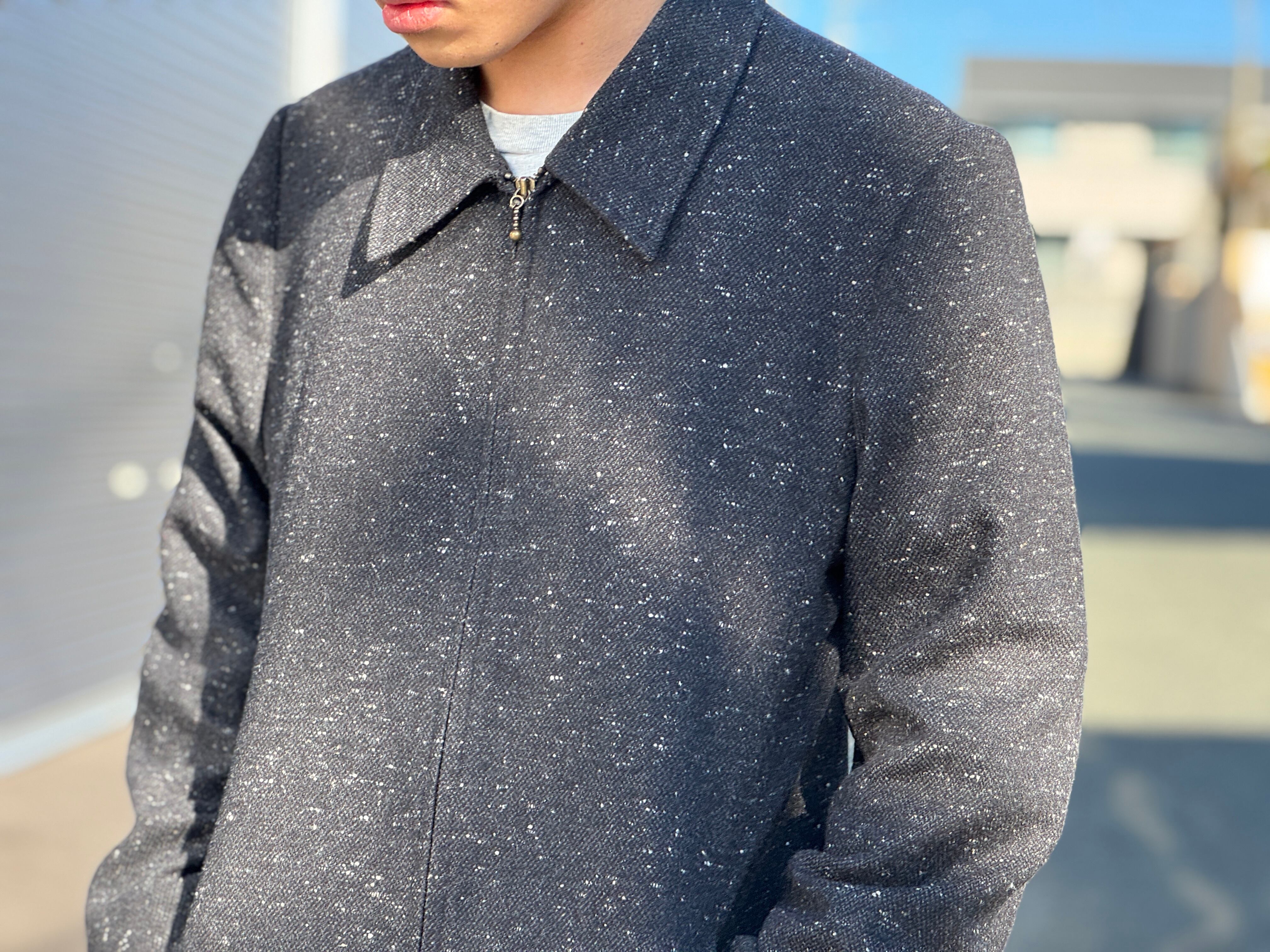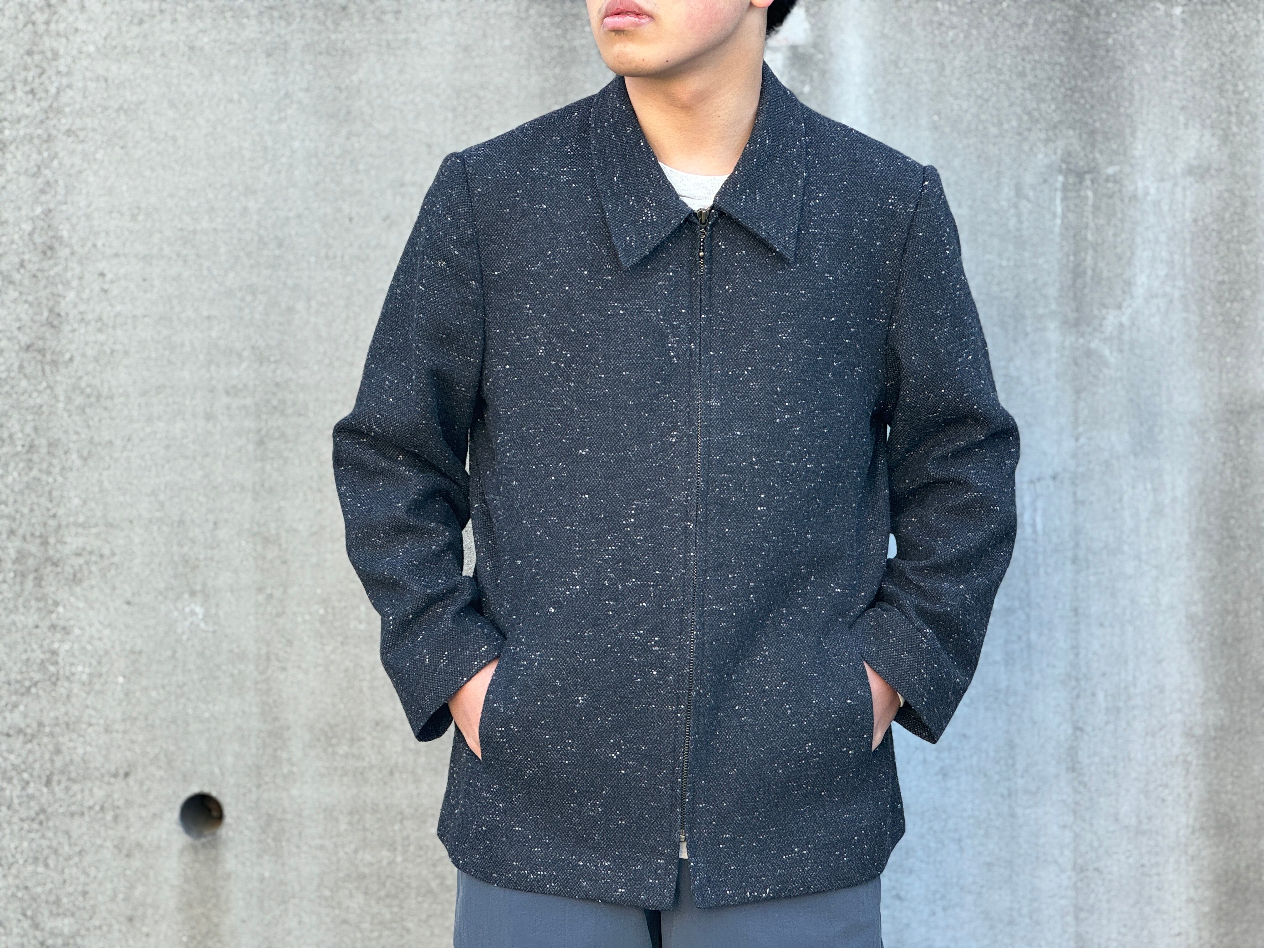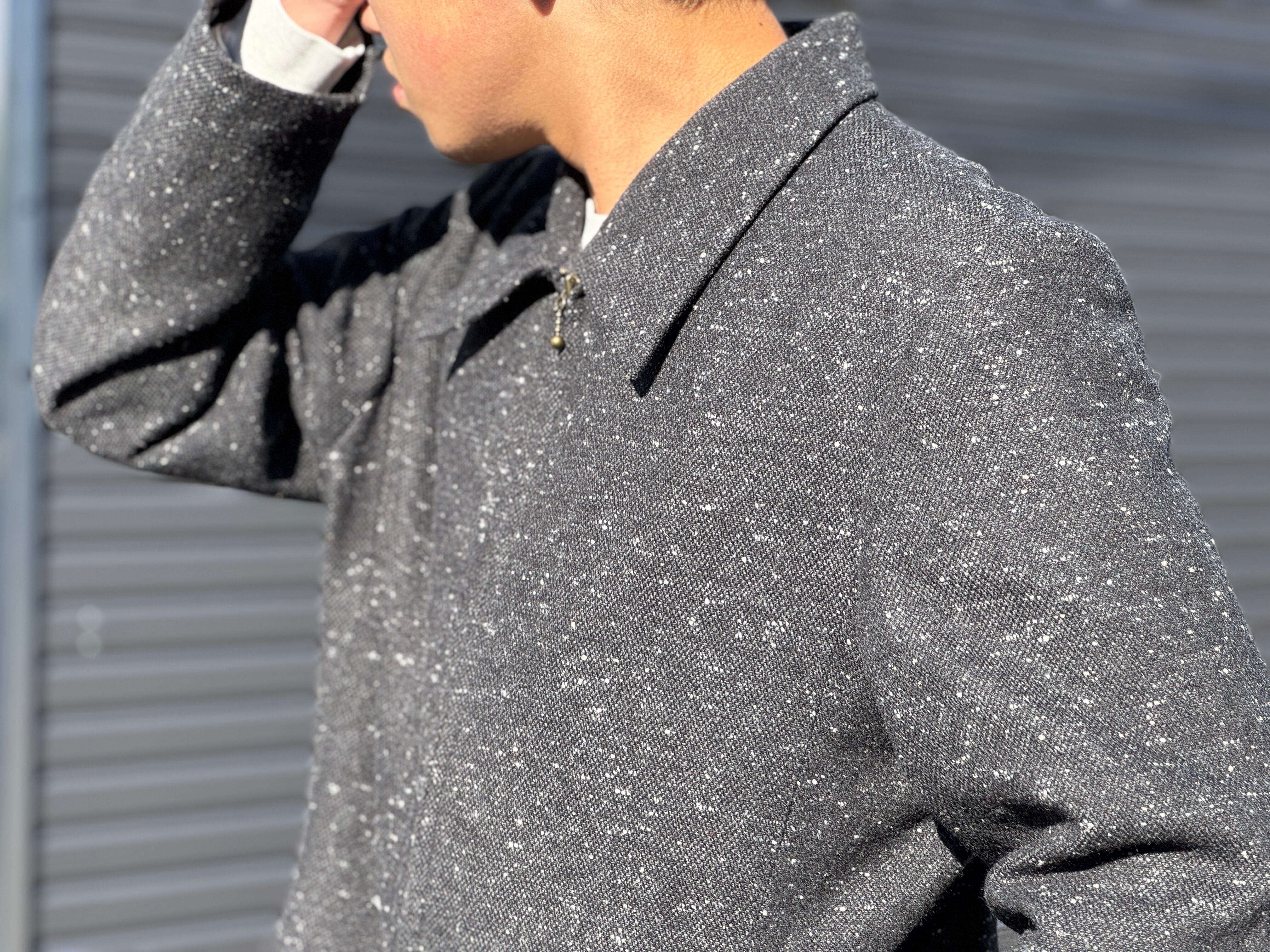 チャコールカラーのボディに全体にネップが入ったデザイン。ポケットはスラッシュタイプ。