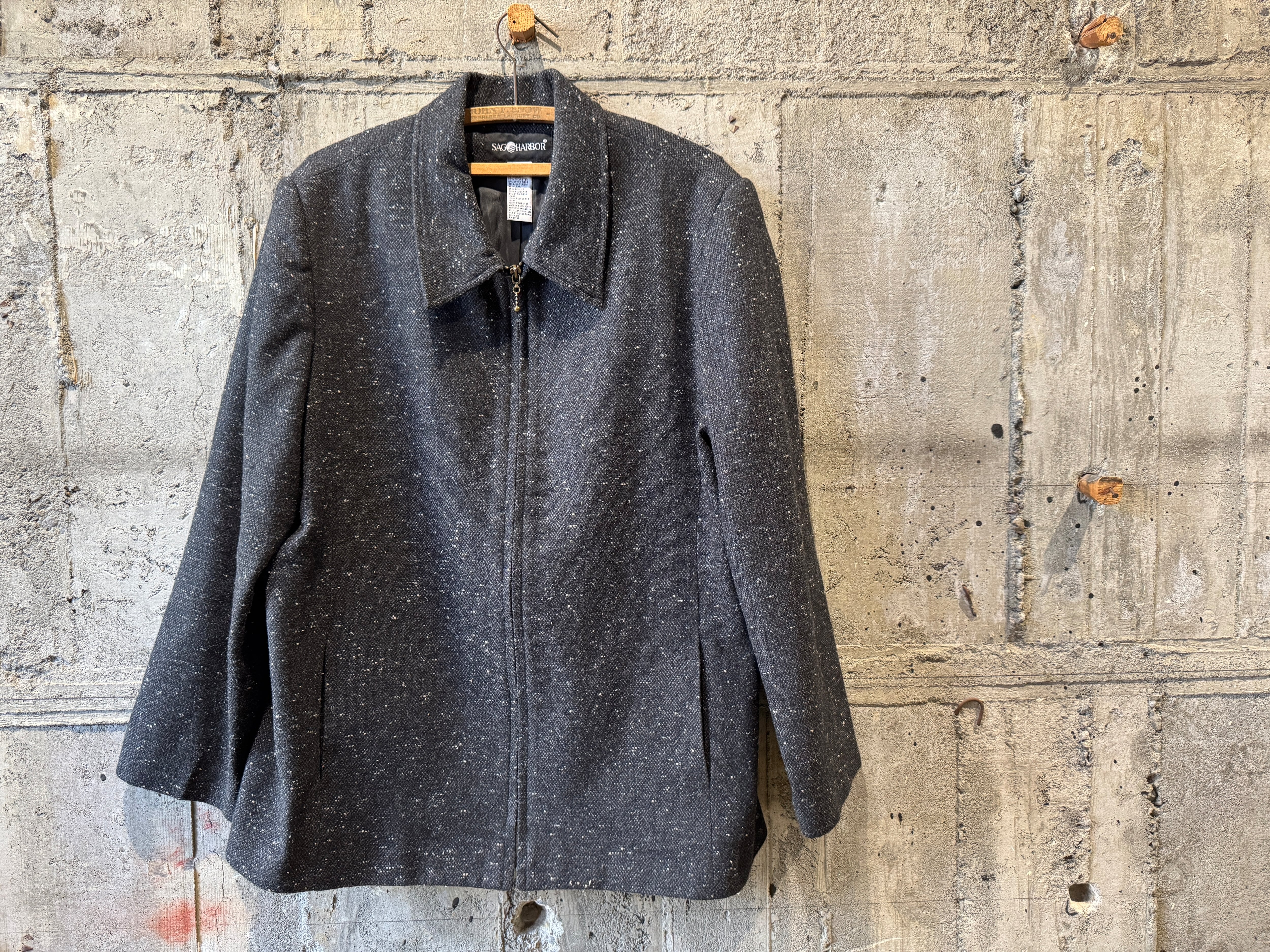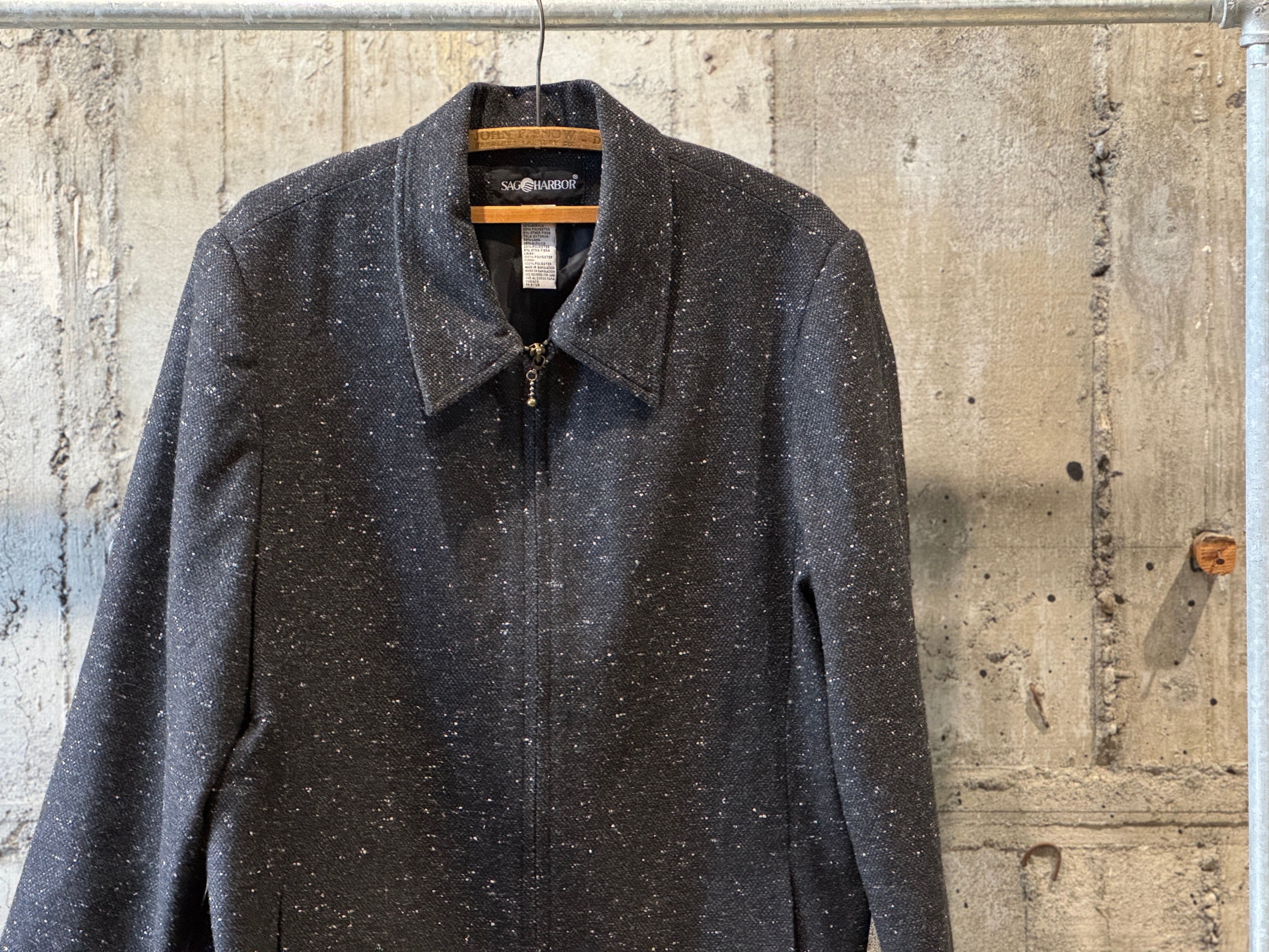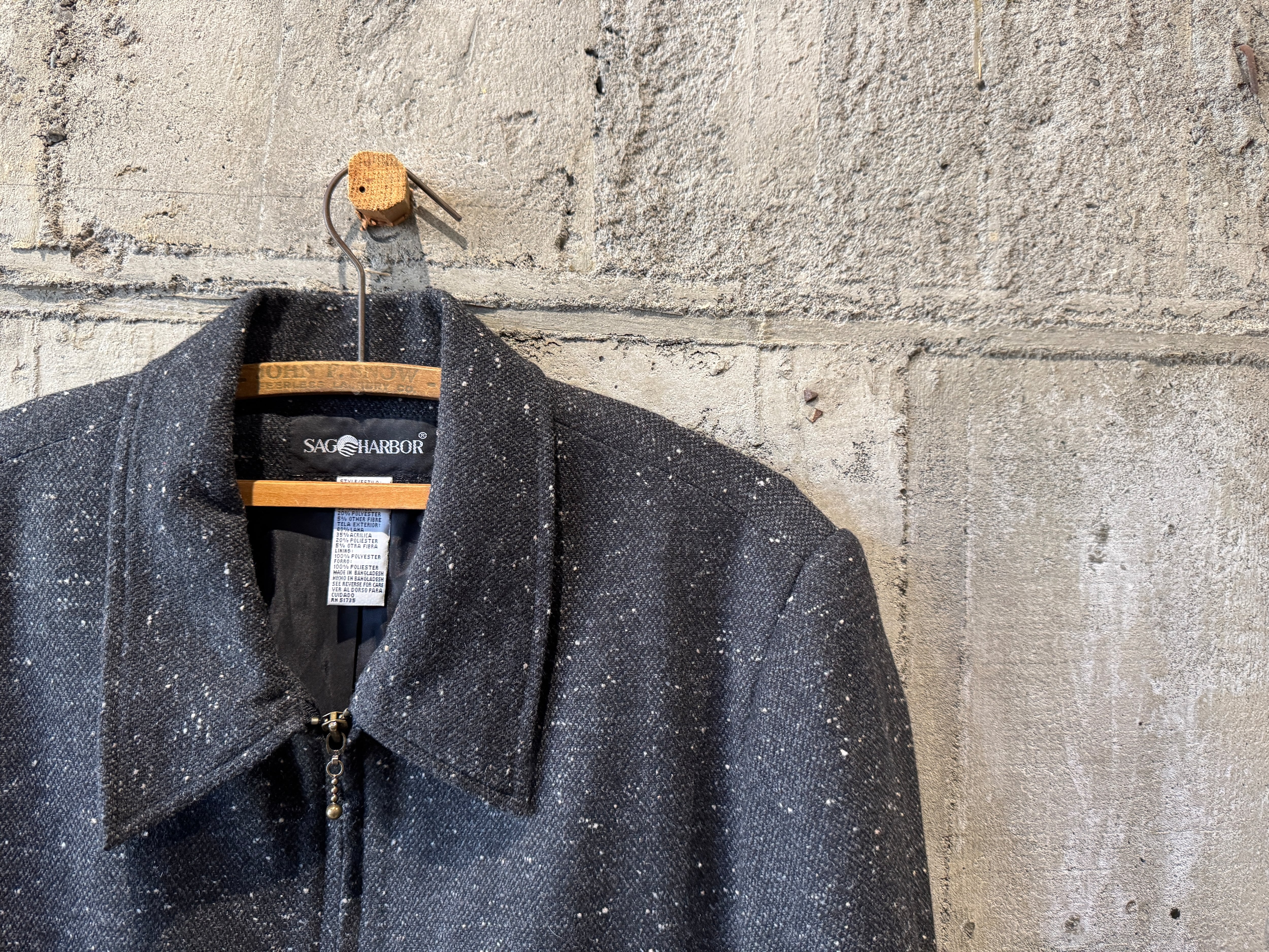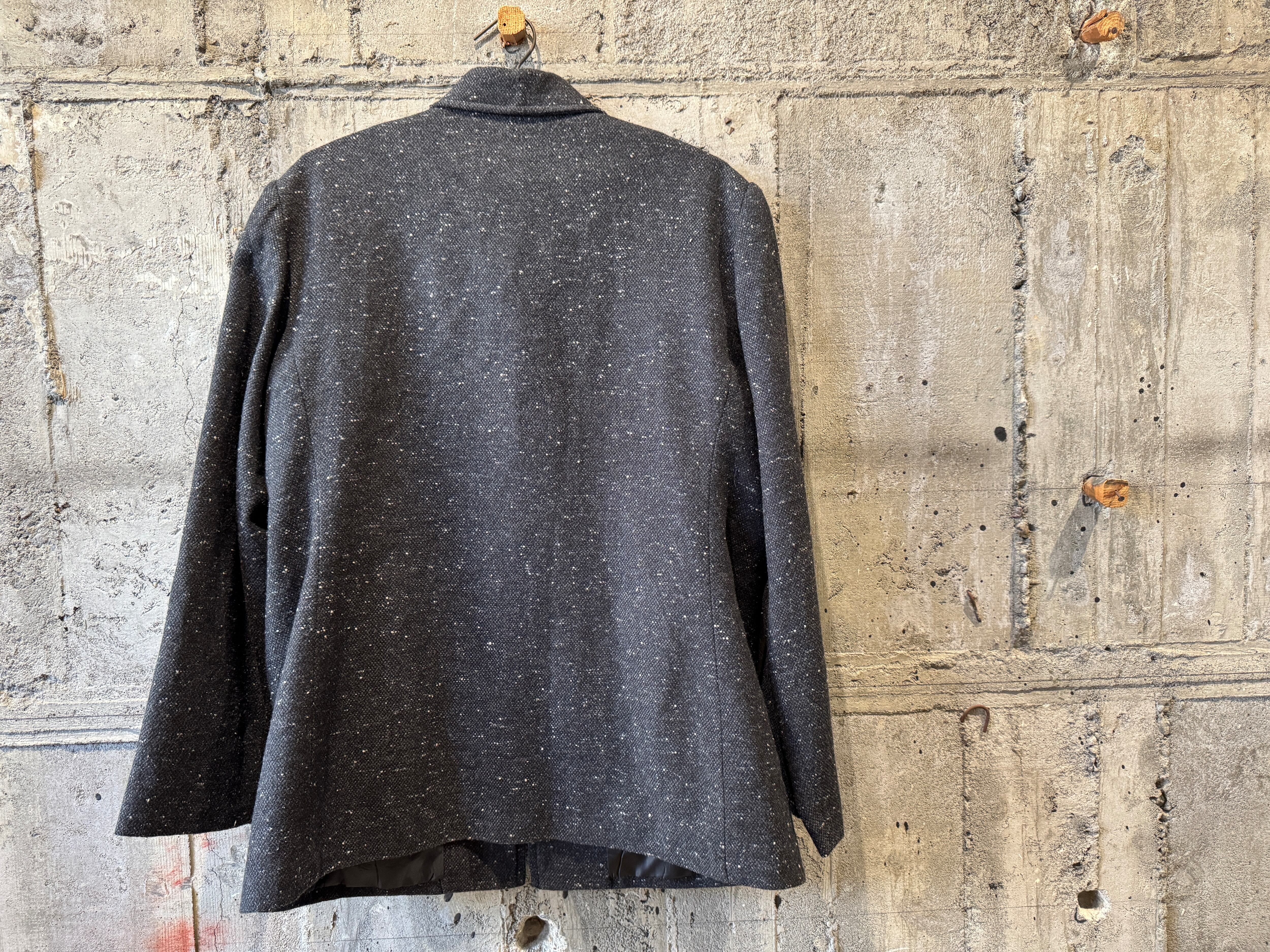 チャコールカラーのボディに全体にネップが入ったデザイン。ポケットはスラッシュタイプ。