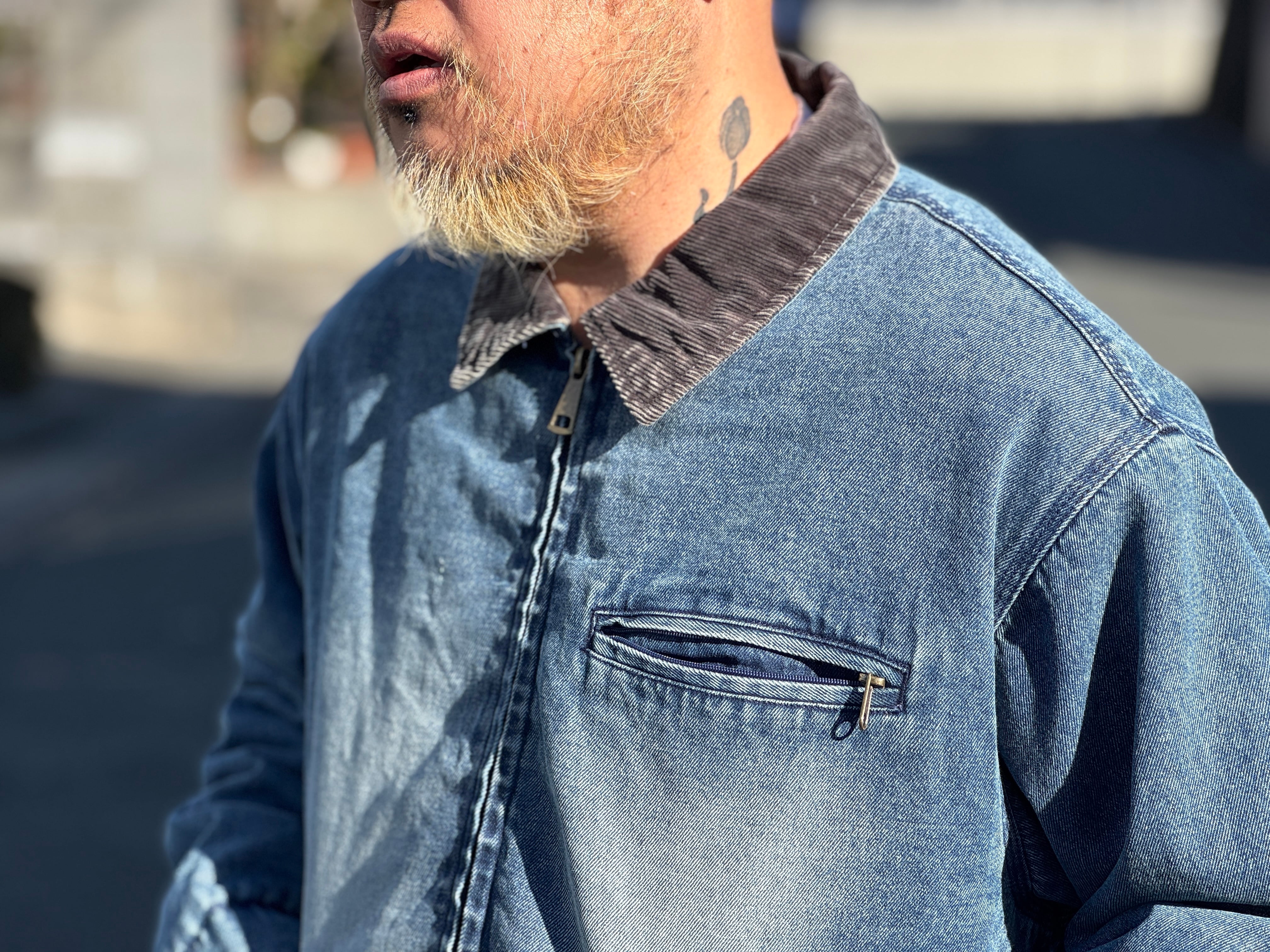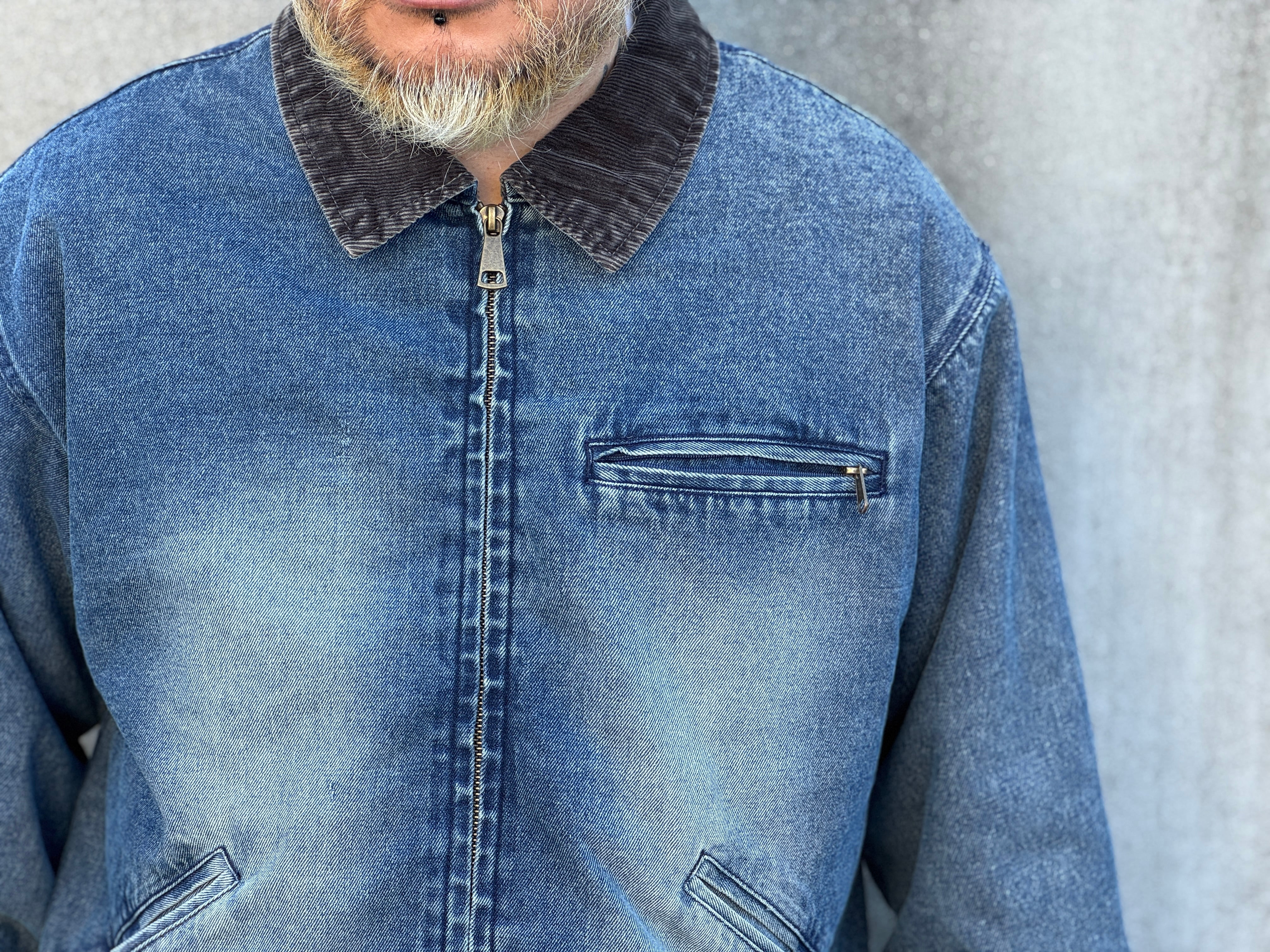 バイオウォッシュやブラスト加工により、柔らかく、そしてフェード感も楽しめる生地に仕上がりました。襟はコーデュロイ仕様、短丈でワイドなボックスシルエット。内側には肌触りの良いメッシュ生地、内ポケットも配してあります。