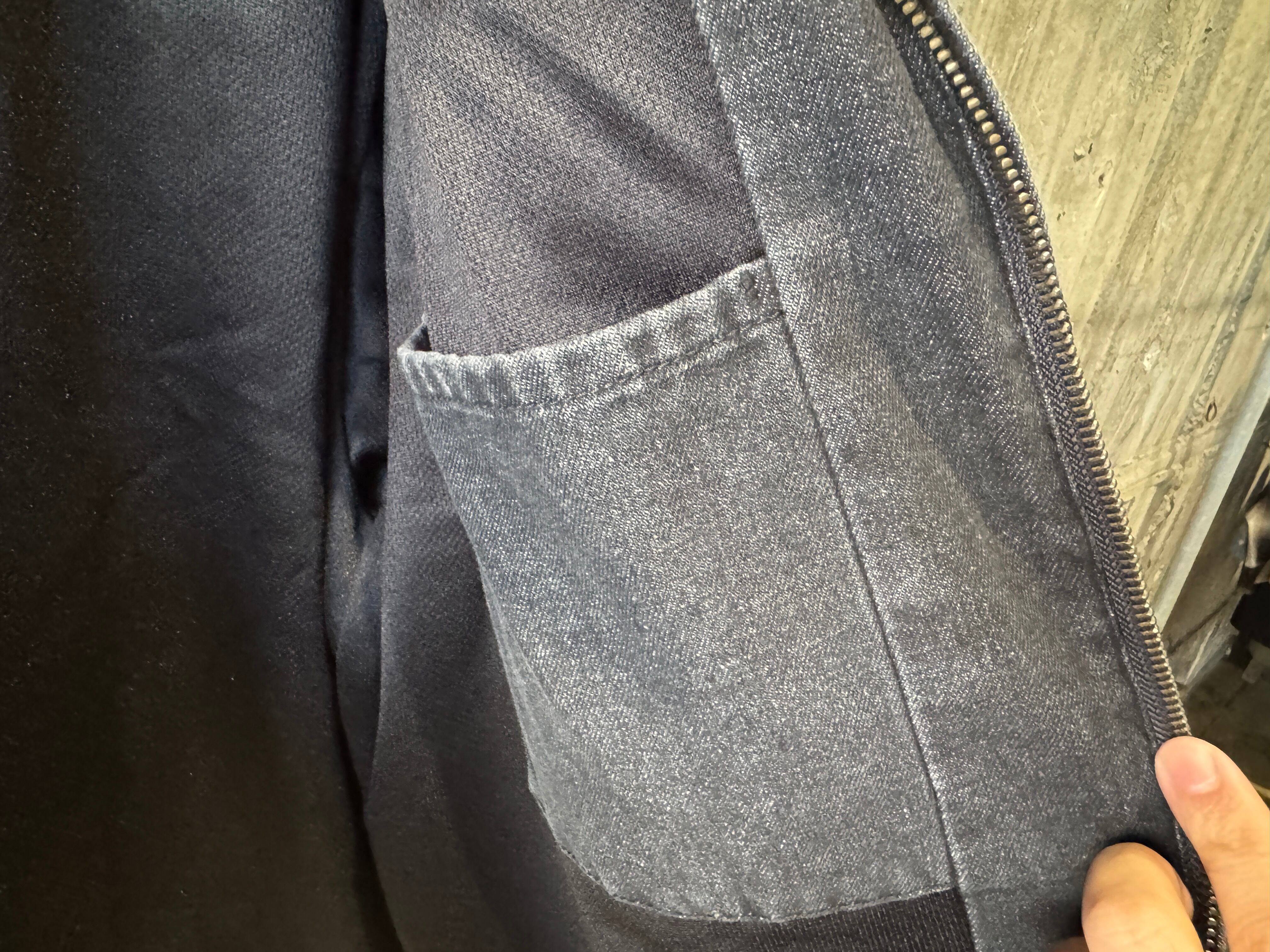 バイオウォッシュやブラスト加工により、柔らかく、そしてフェード感も楽しめる生地に仕上がりました。襟はコーデュロイ仕様、短丈でワイドなボックスシルエット。内側には肌触りの良いメッシュ生地、内ポケットも配してあります。
