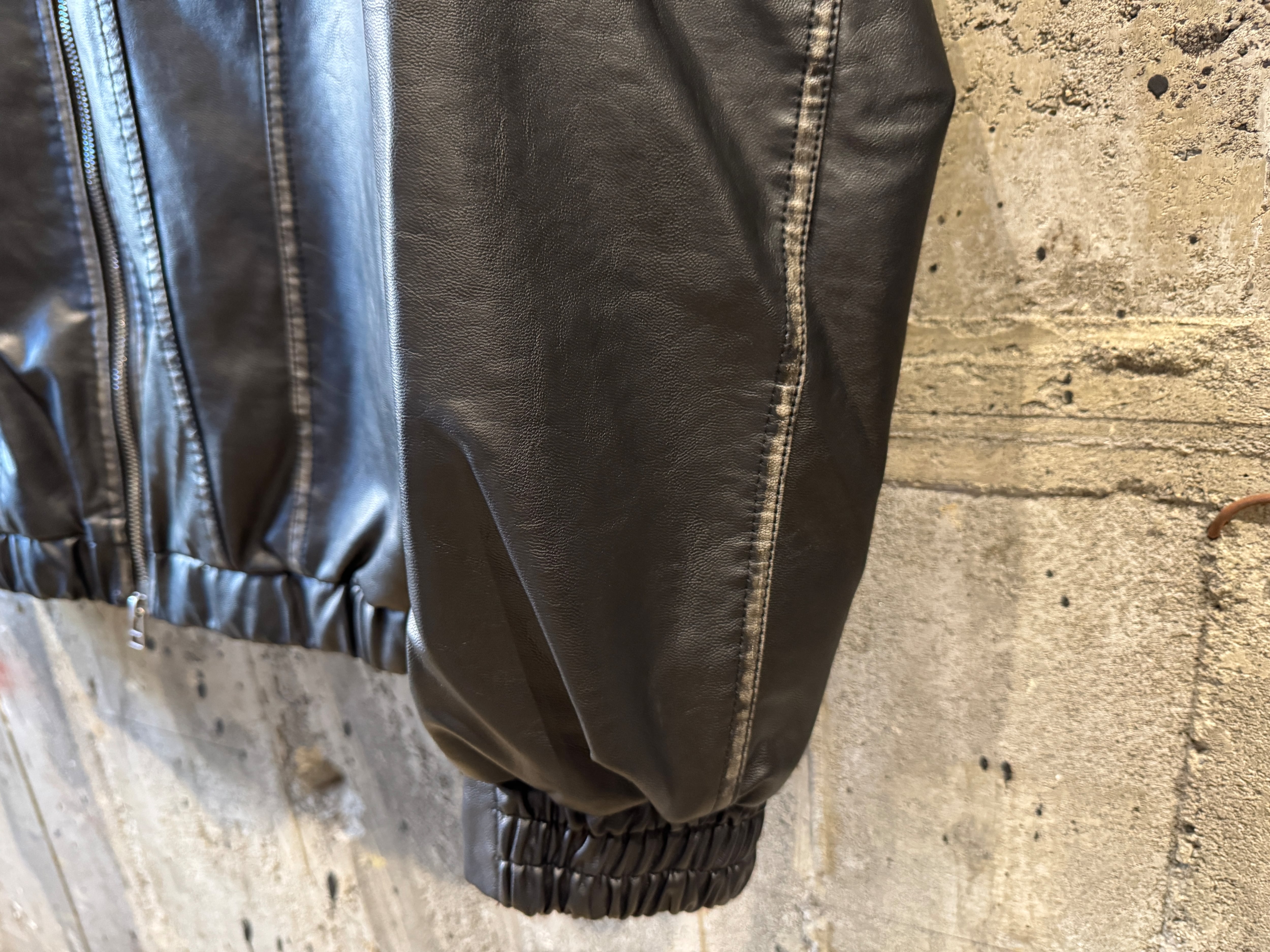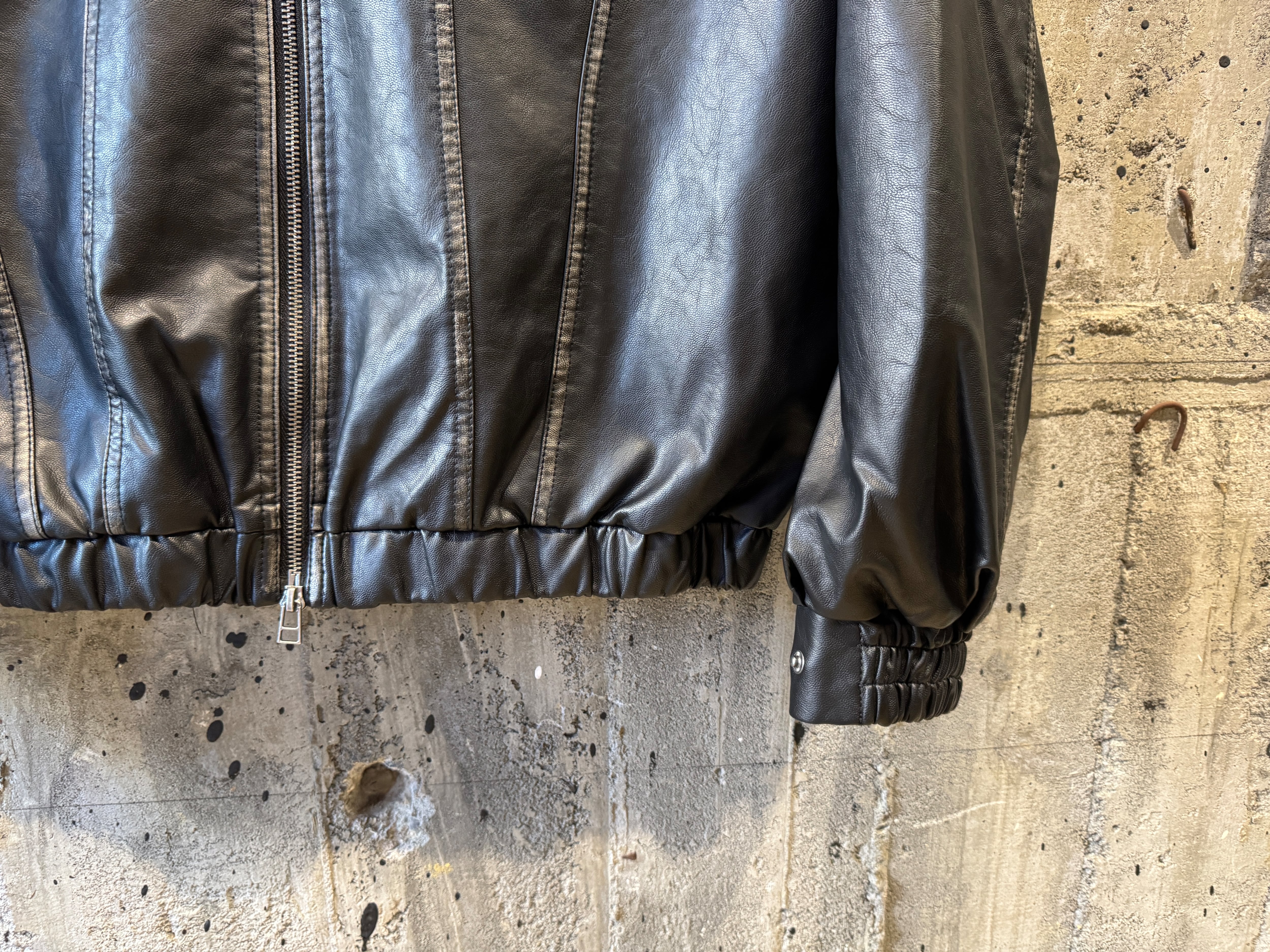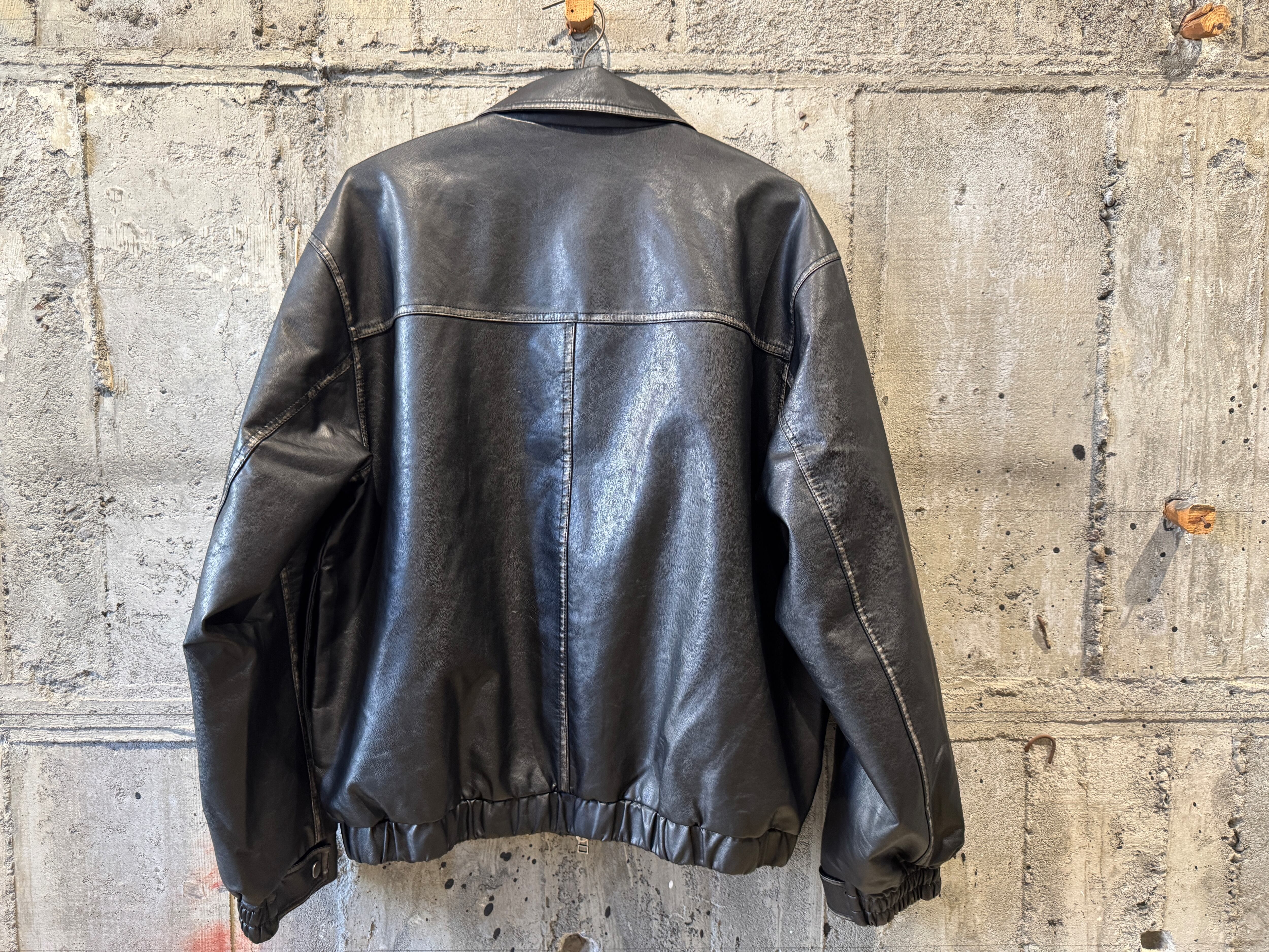 Remake fake leather tracker zip jkt/Black