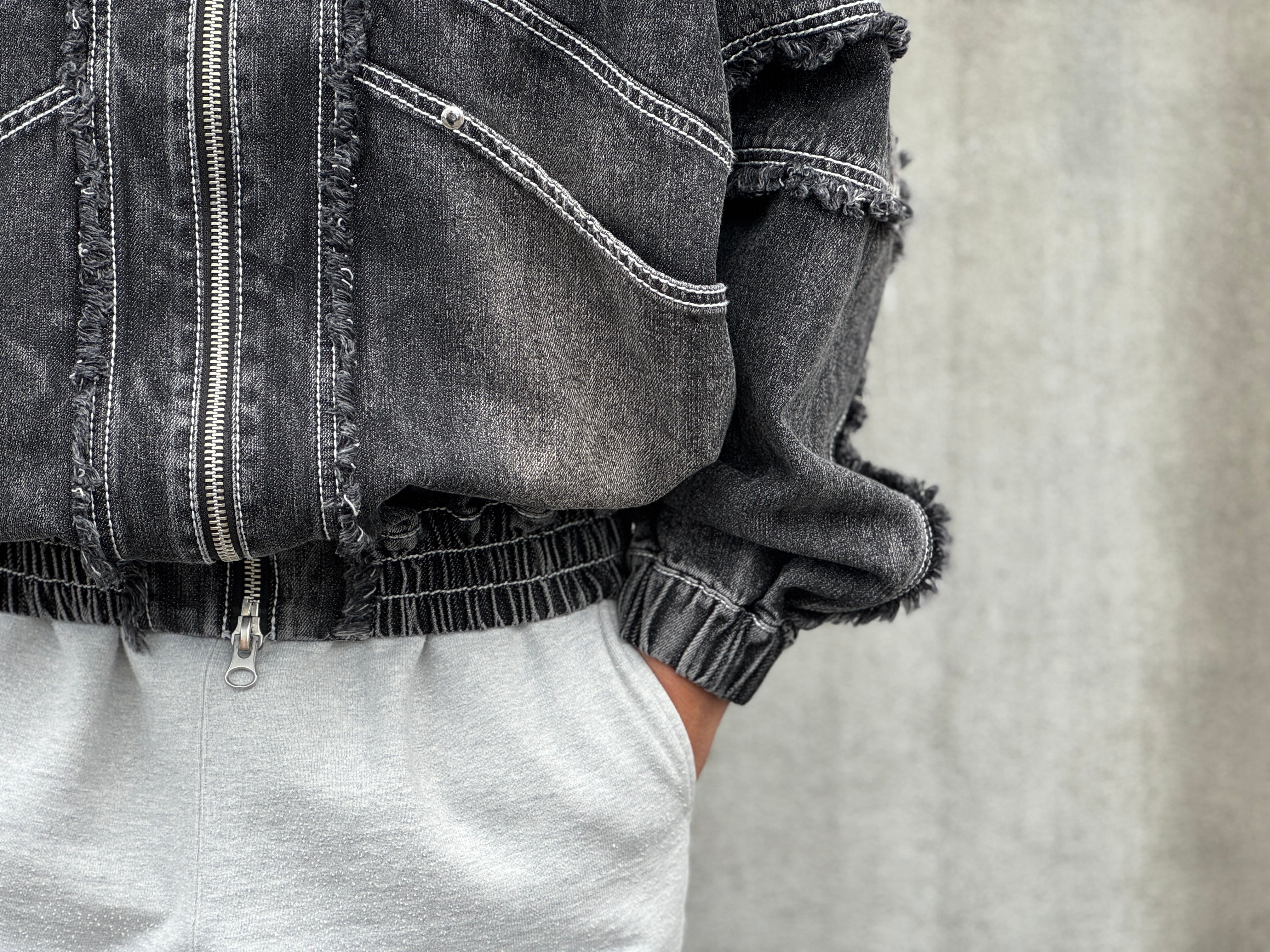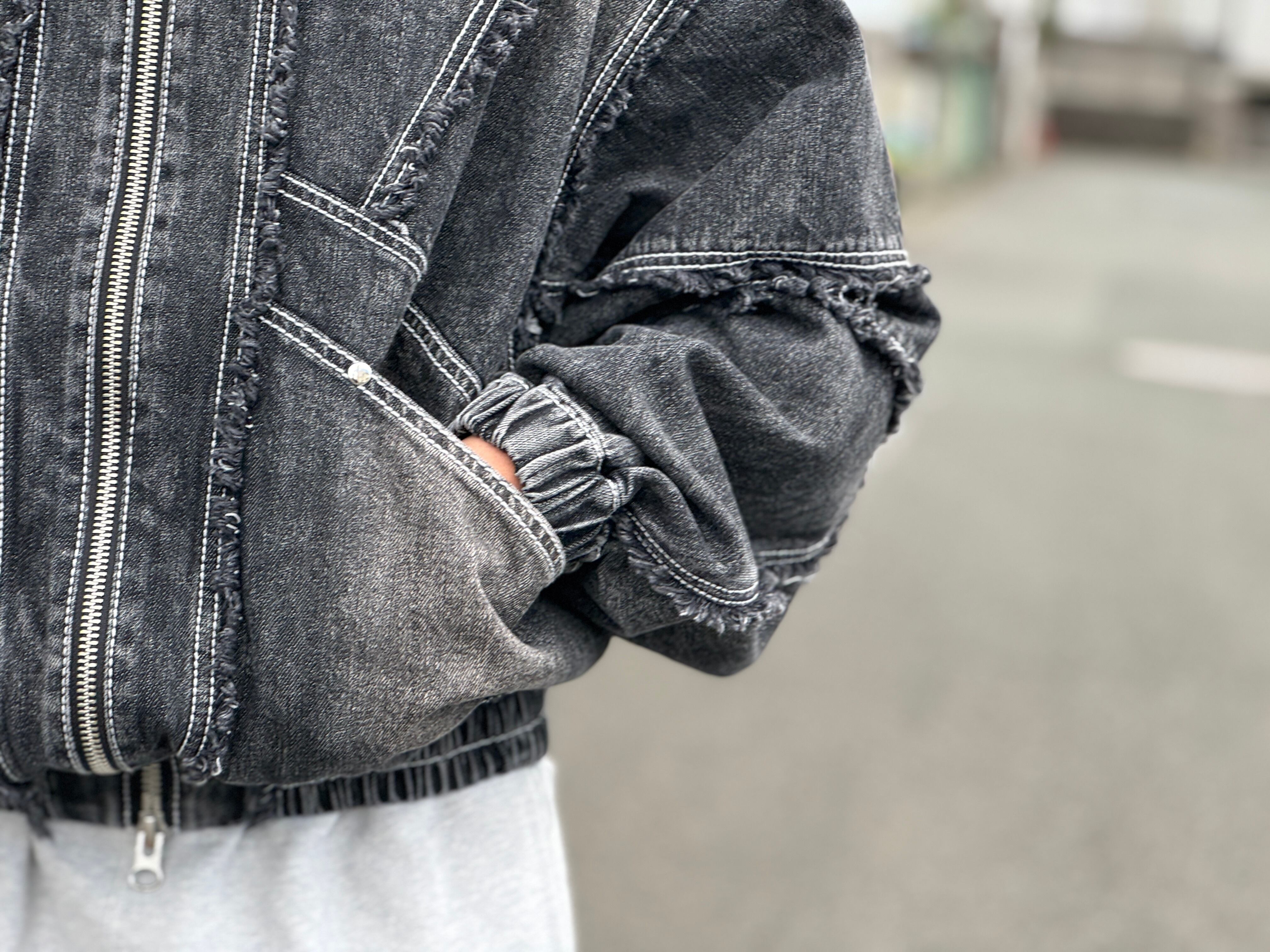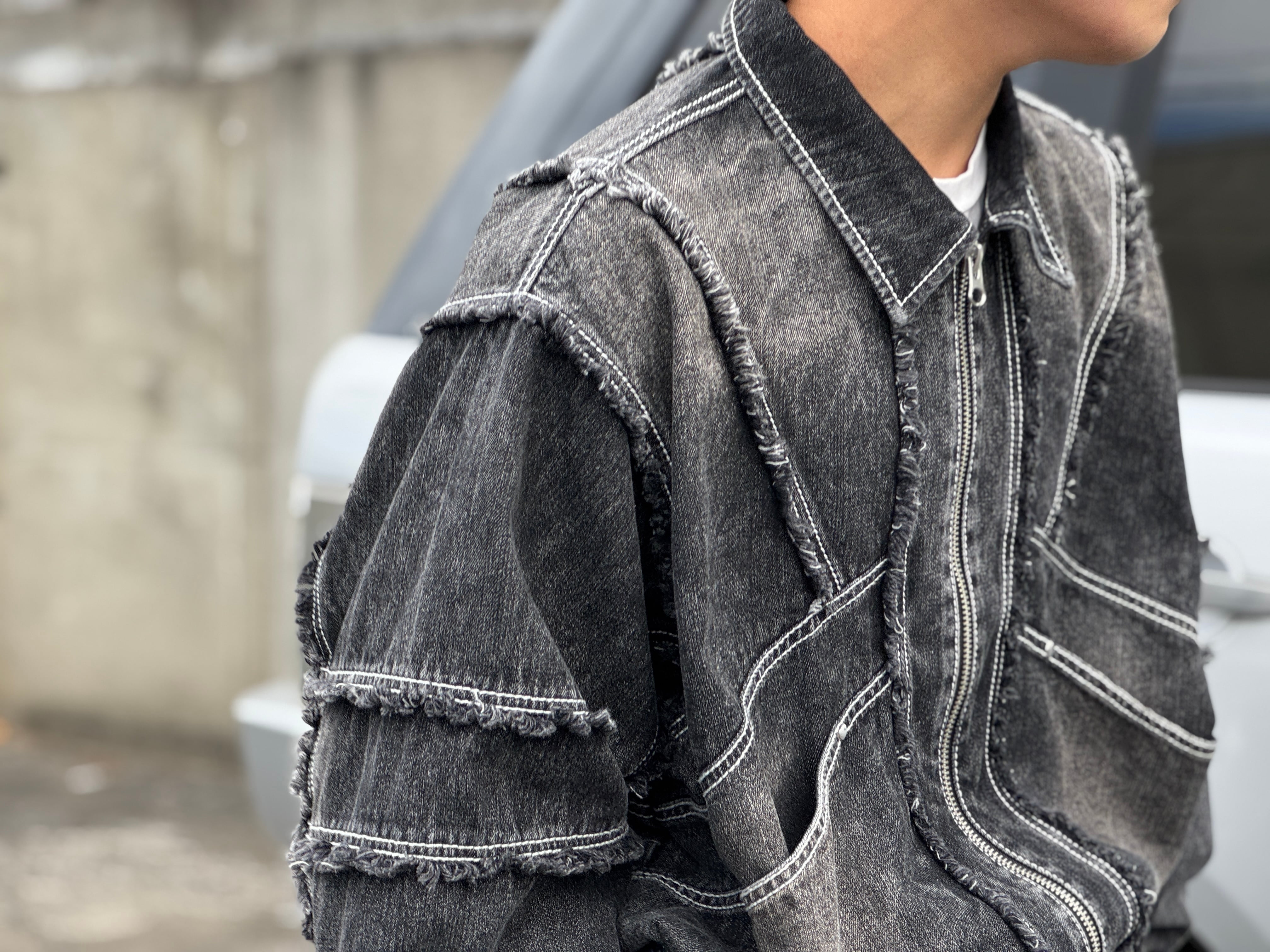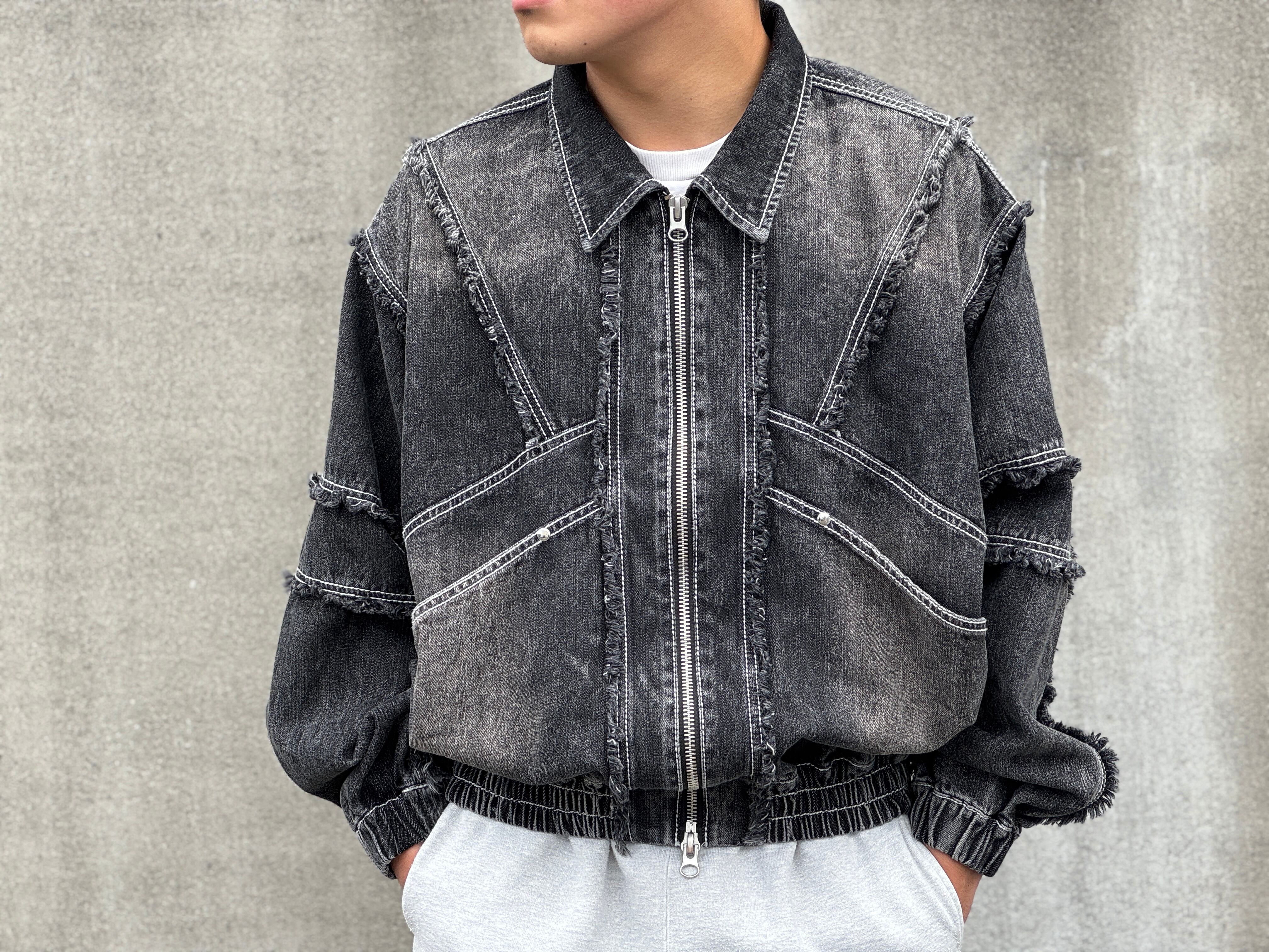 Remake fringe denim blouson/Black