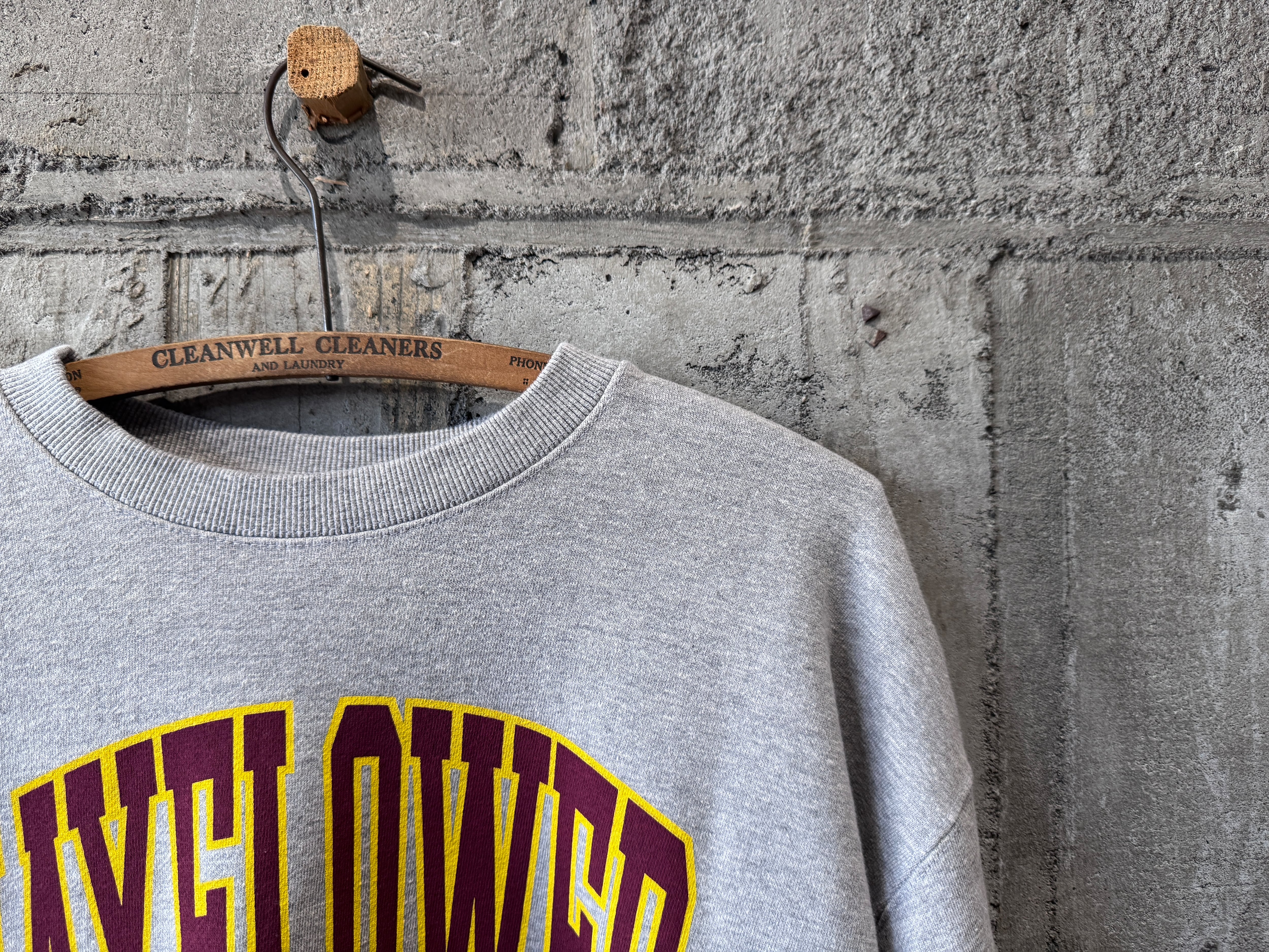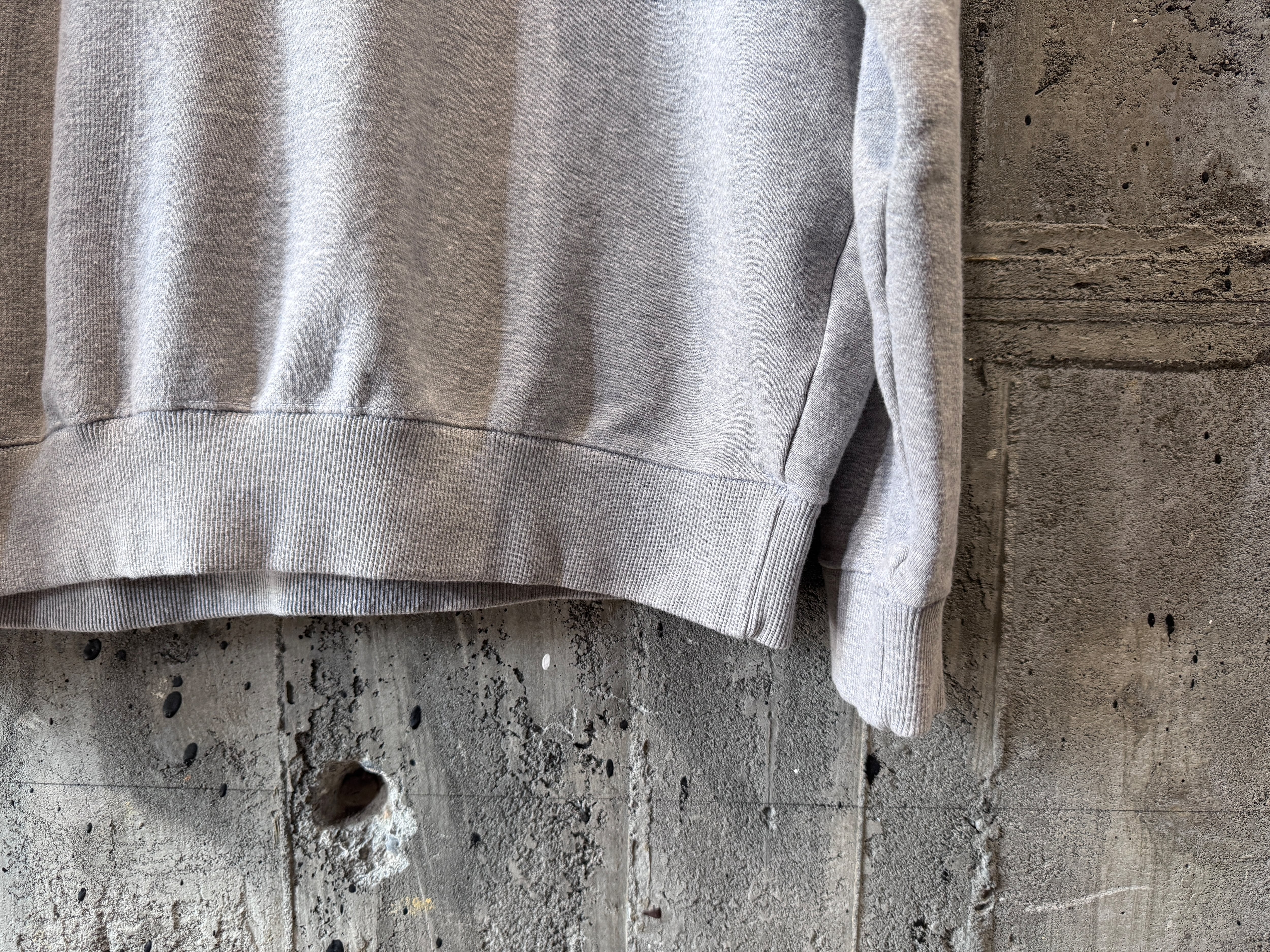 定番のグレーのスウェットが異なる表情。カレッジプリントの配色も良い。