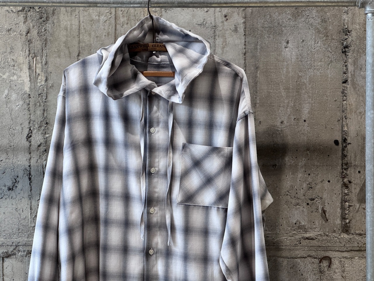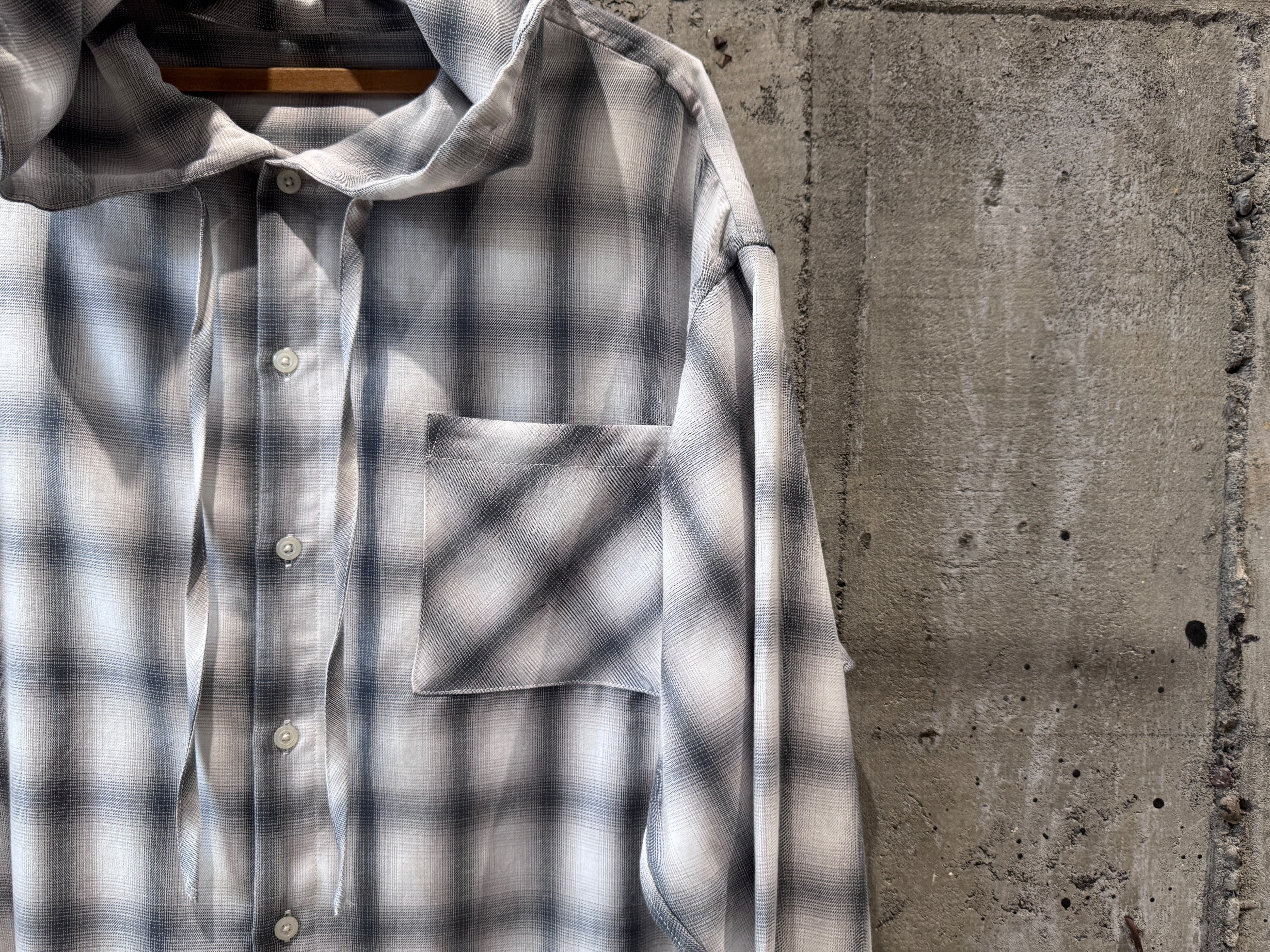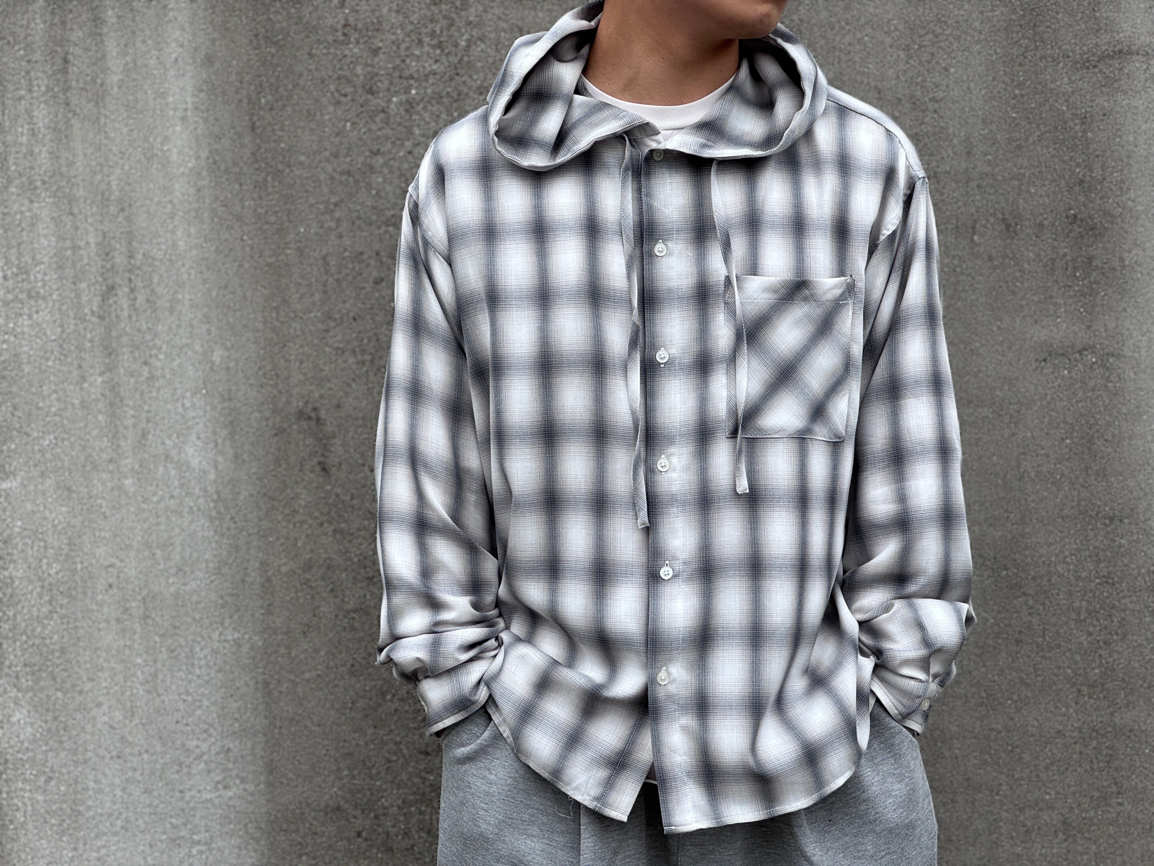 Remake design hooded check shirt/Off white