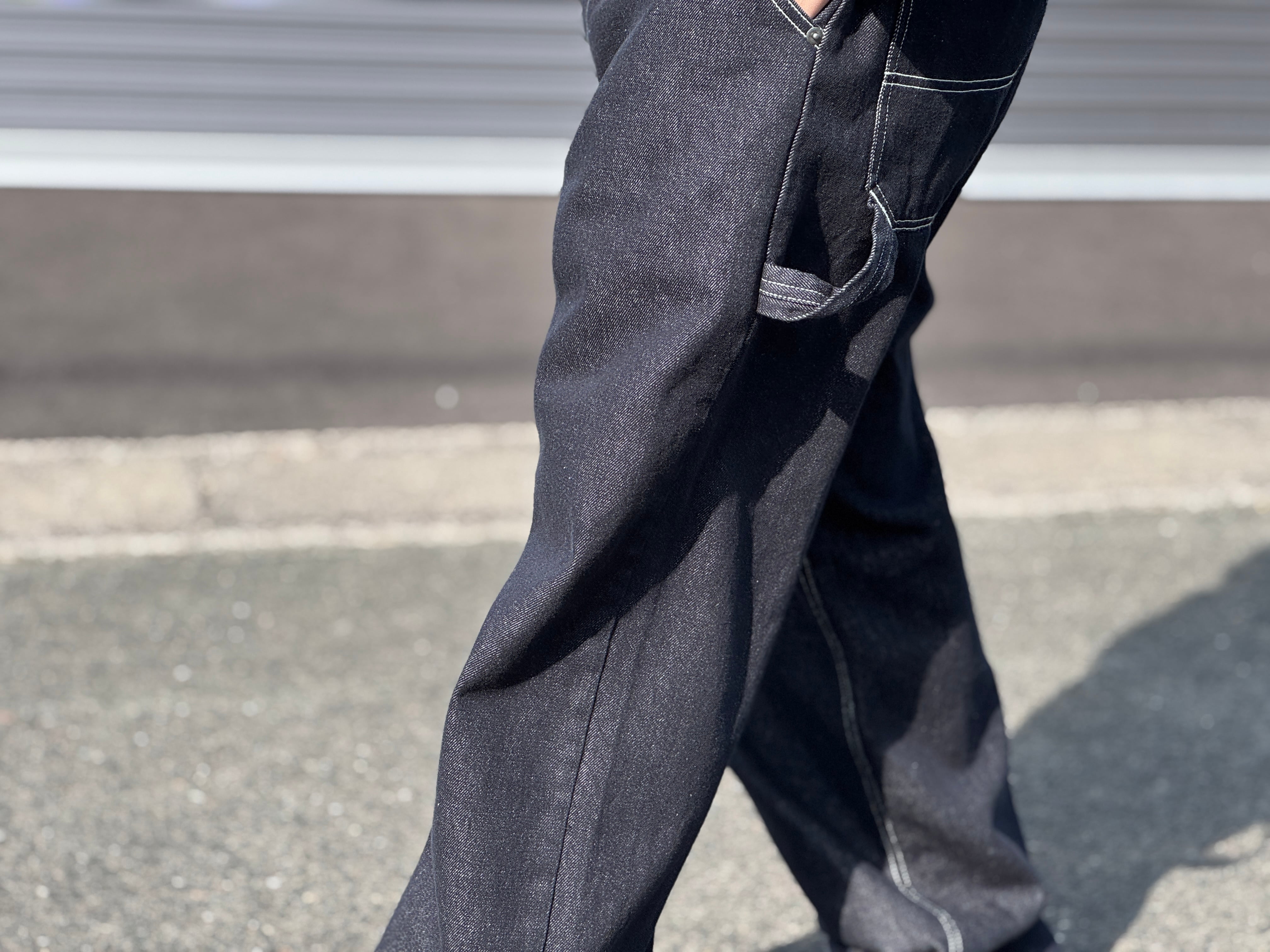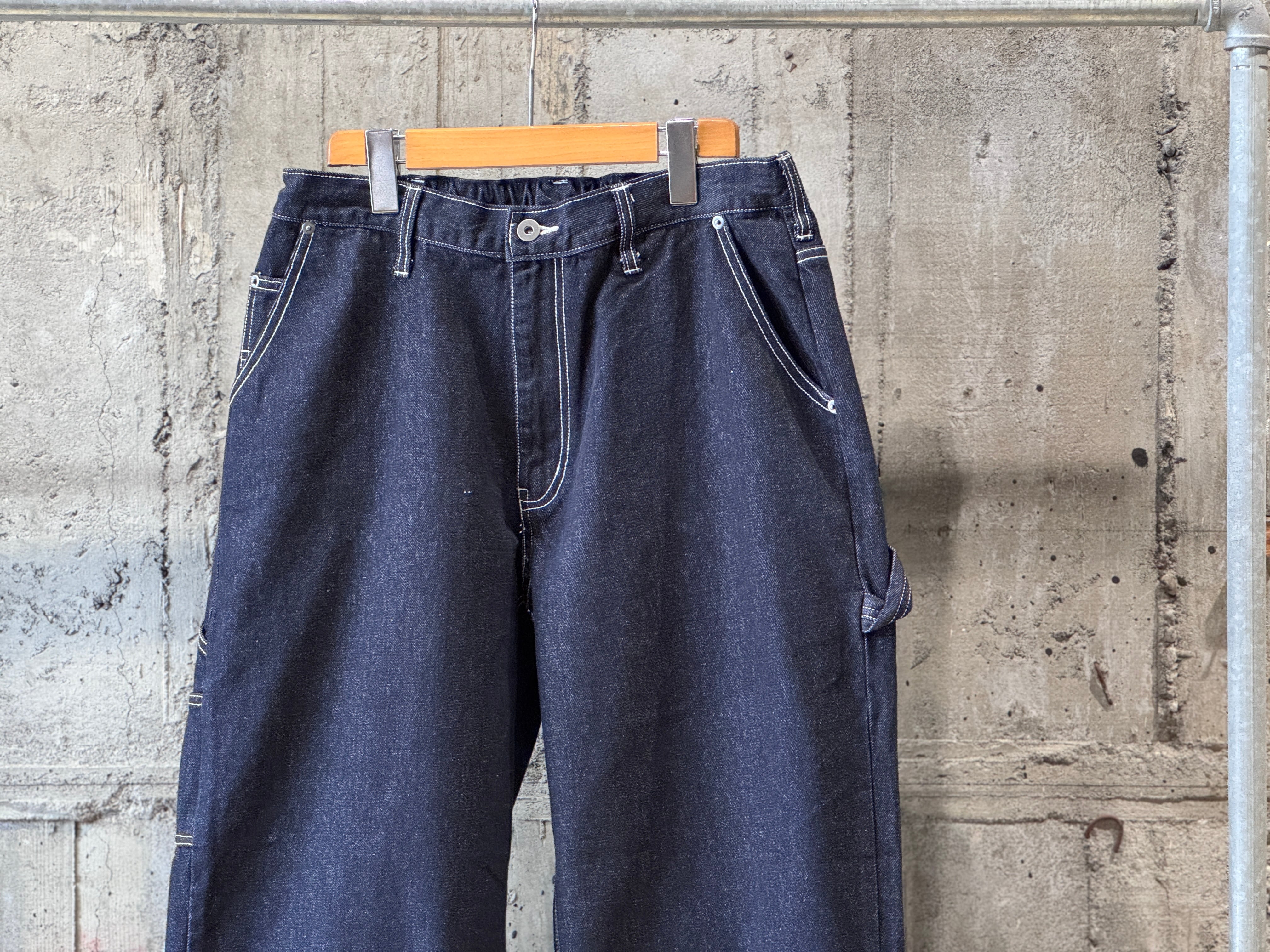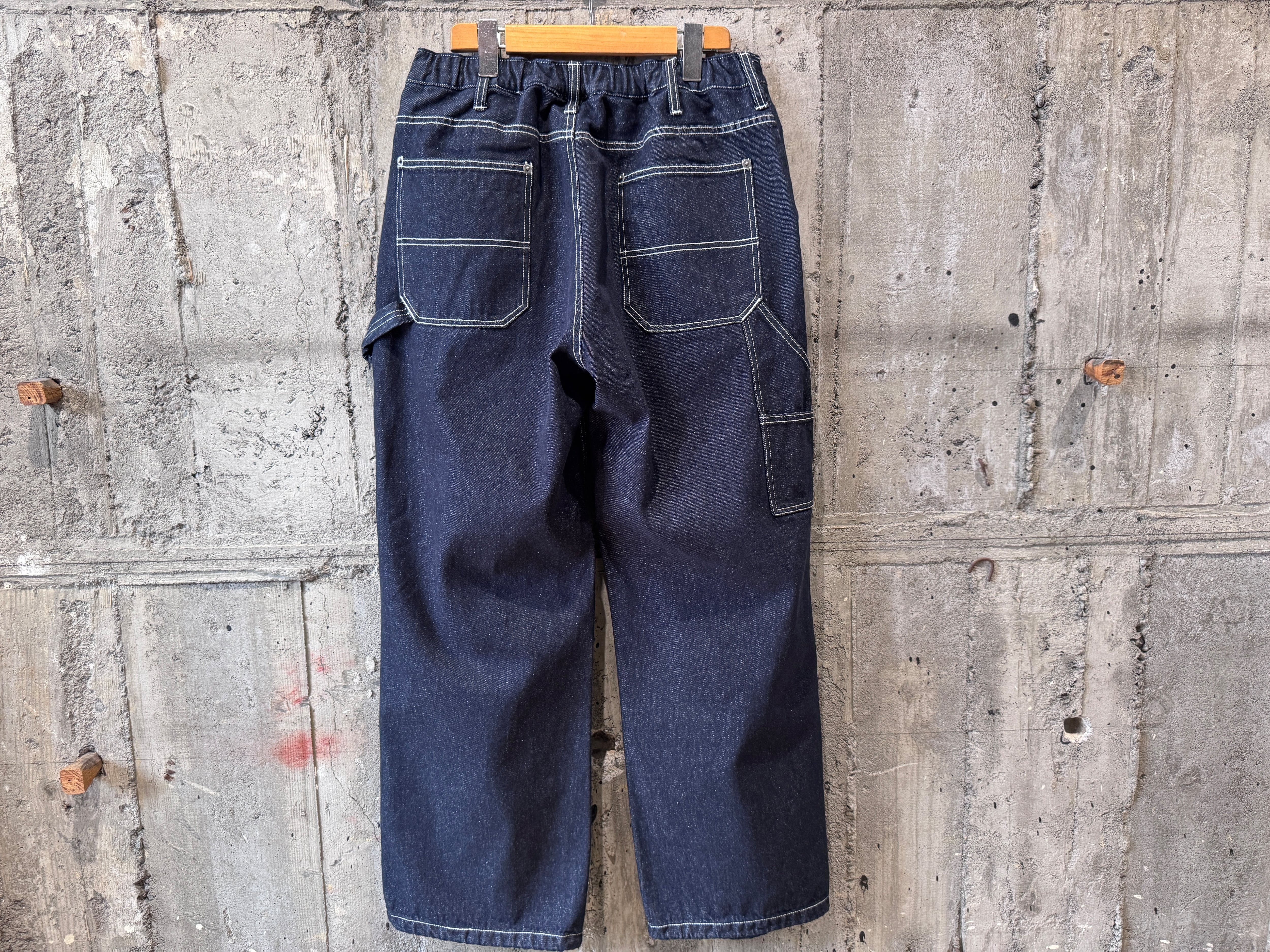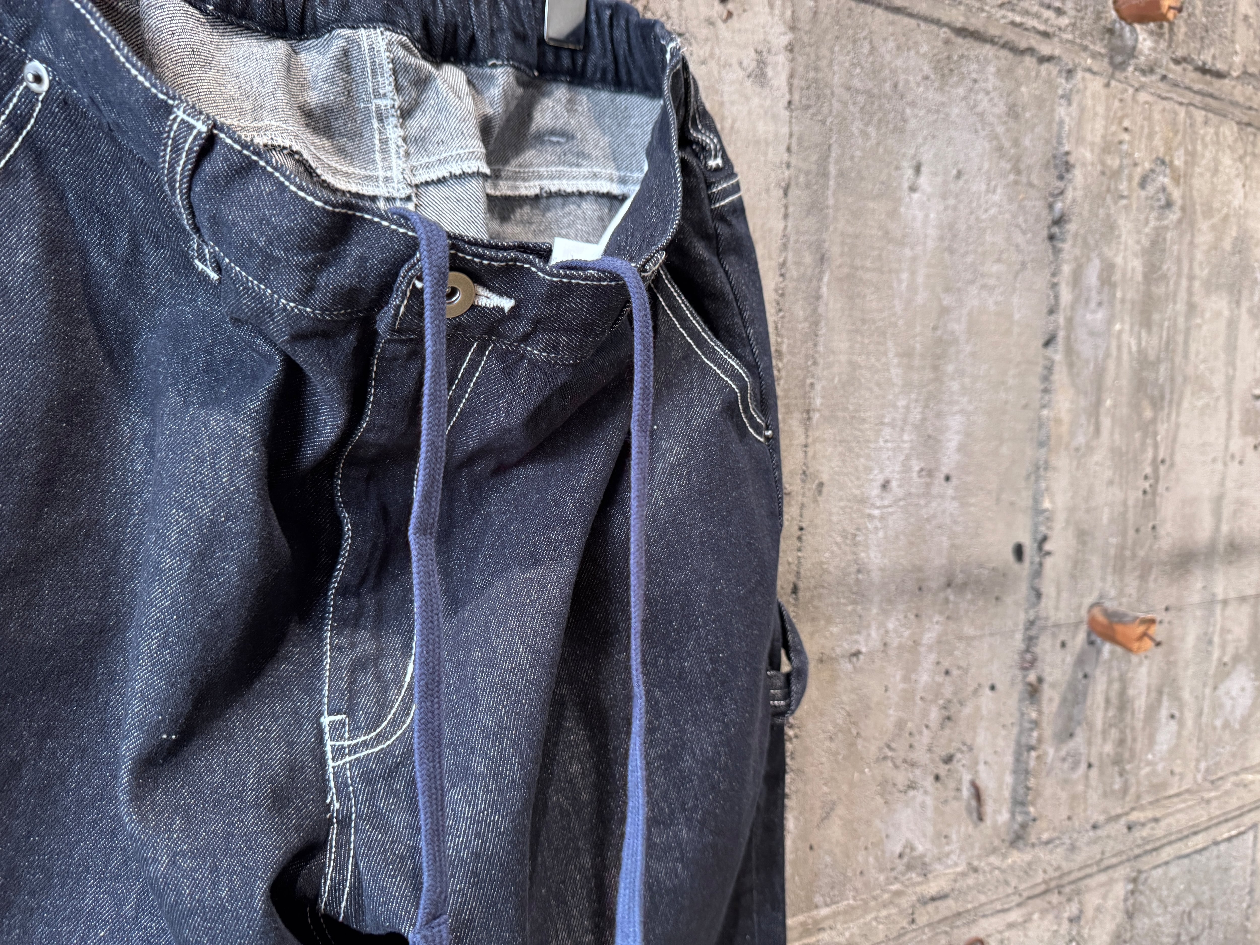 ペインターならではのデザインはそのままに、ウエストはベルトループ付きのイージーパンツ仕様、裾もコードを配してあるのでシルエットを変えることが可能。