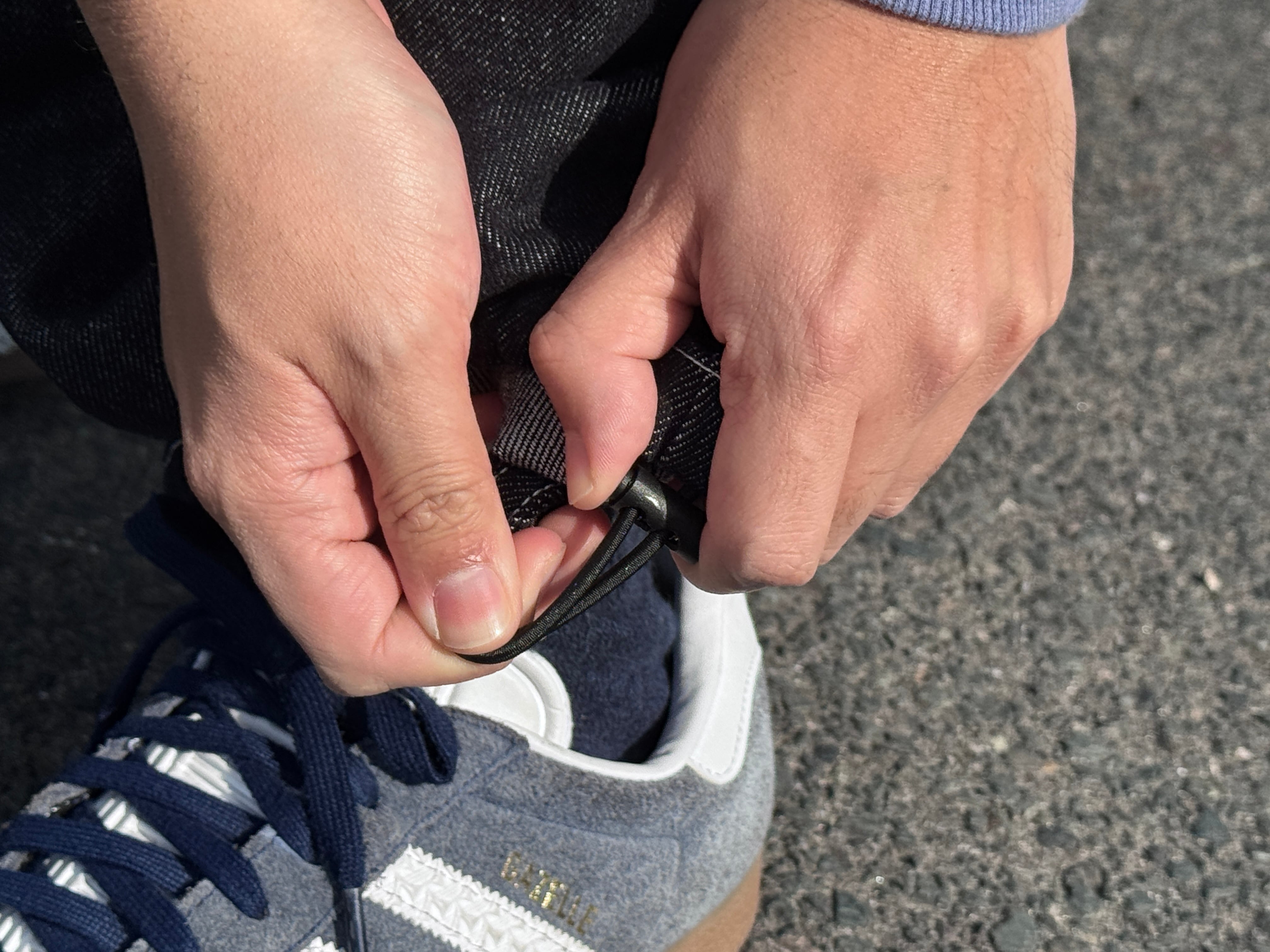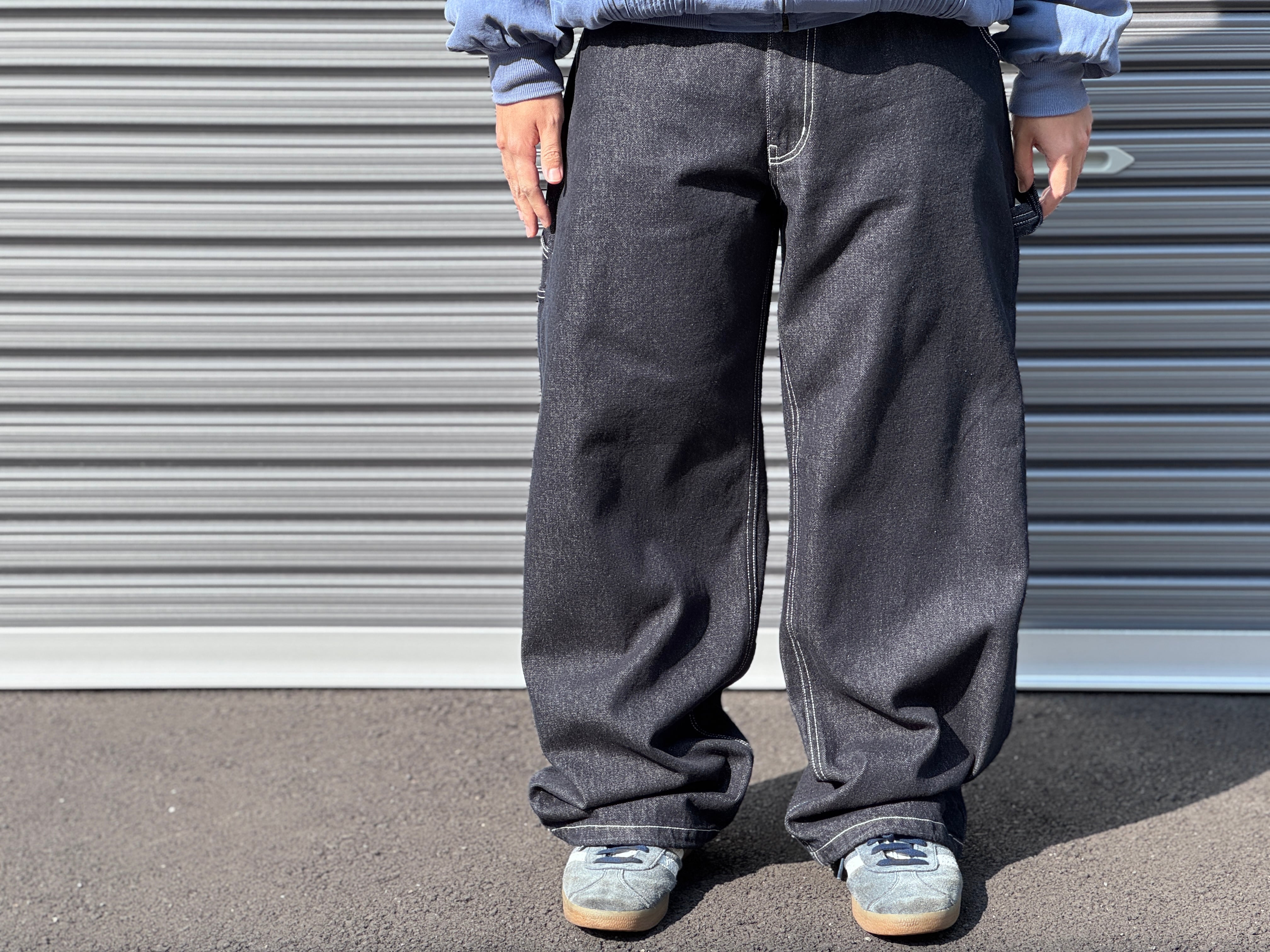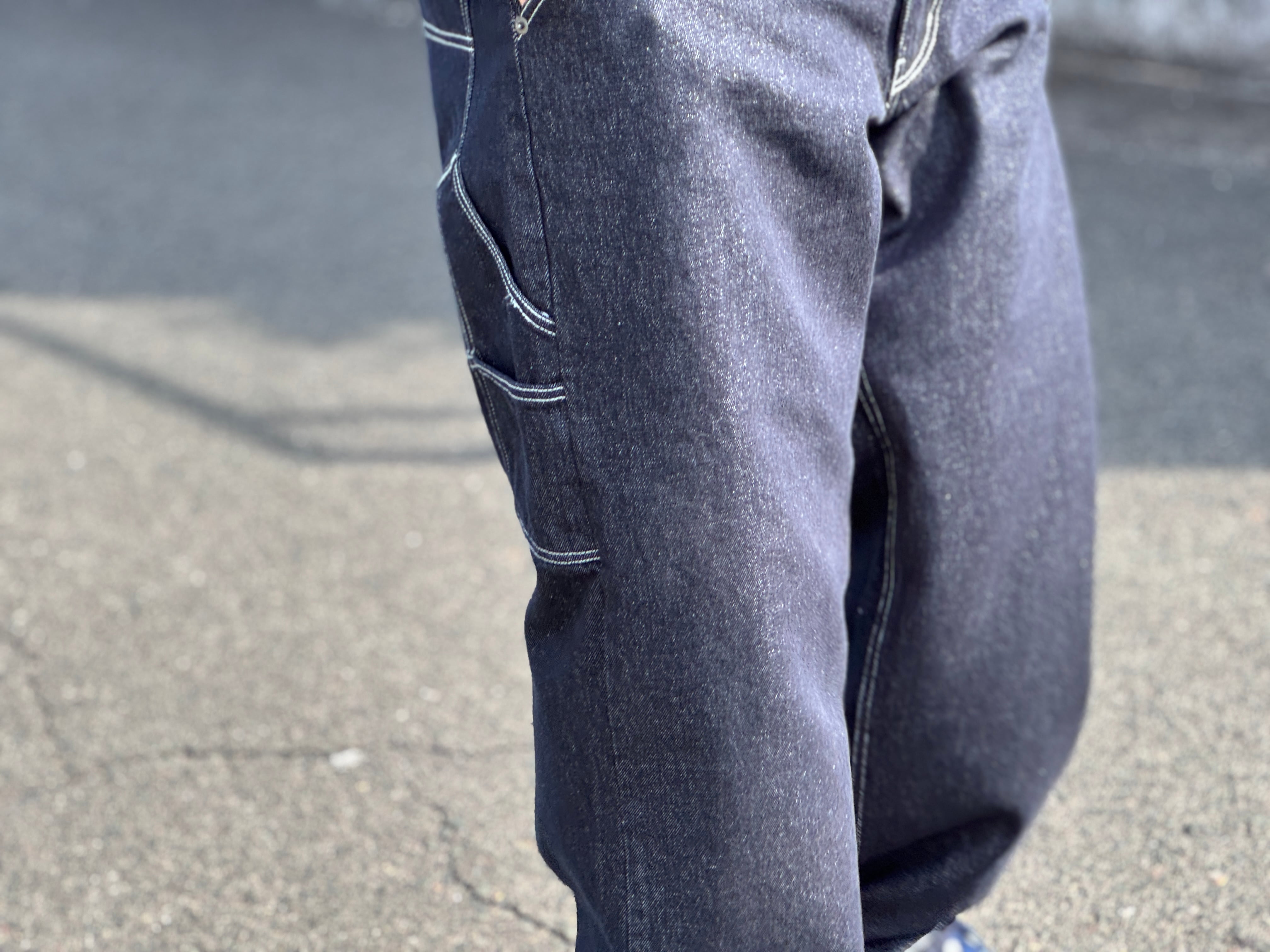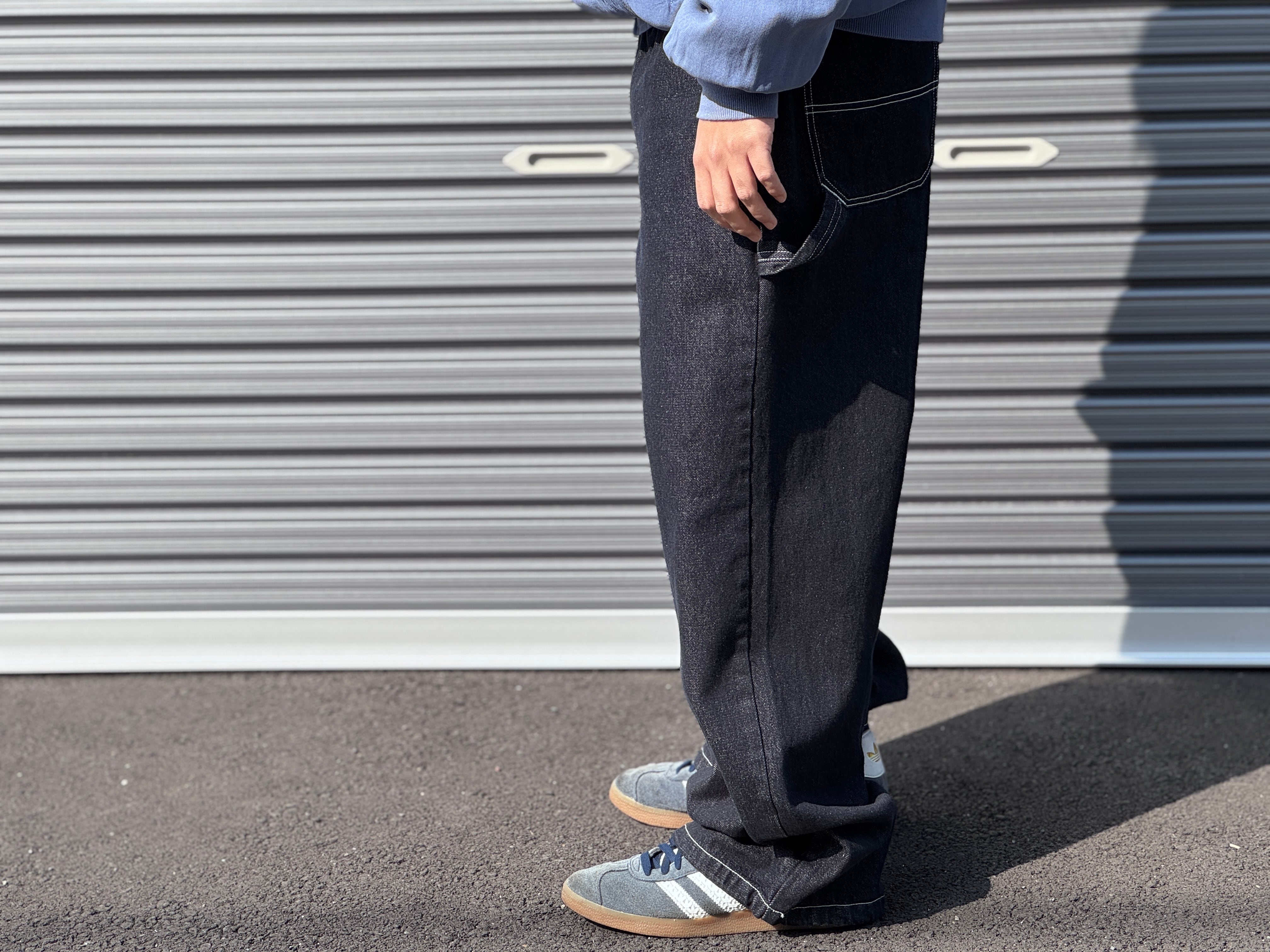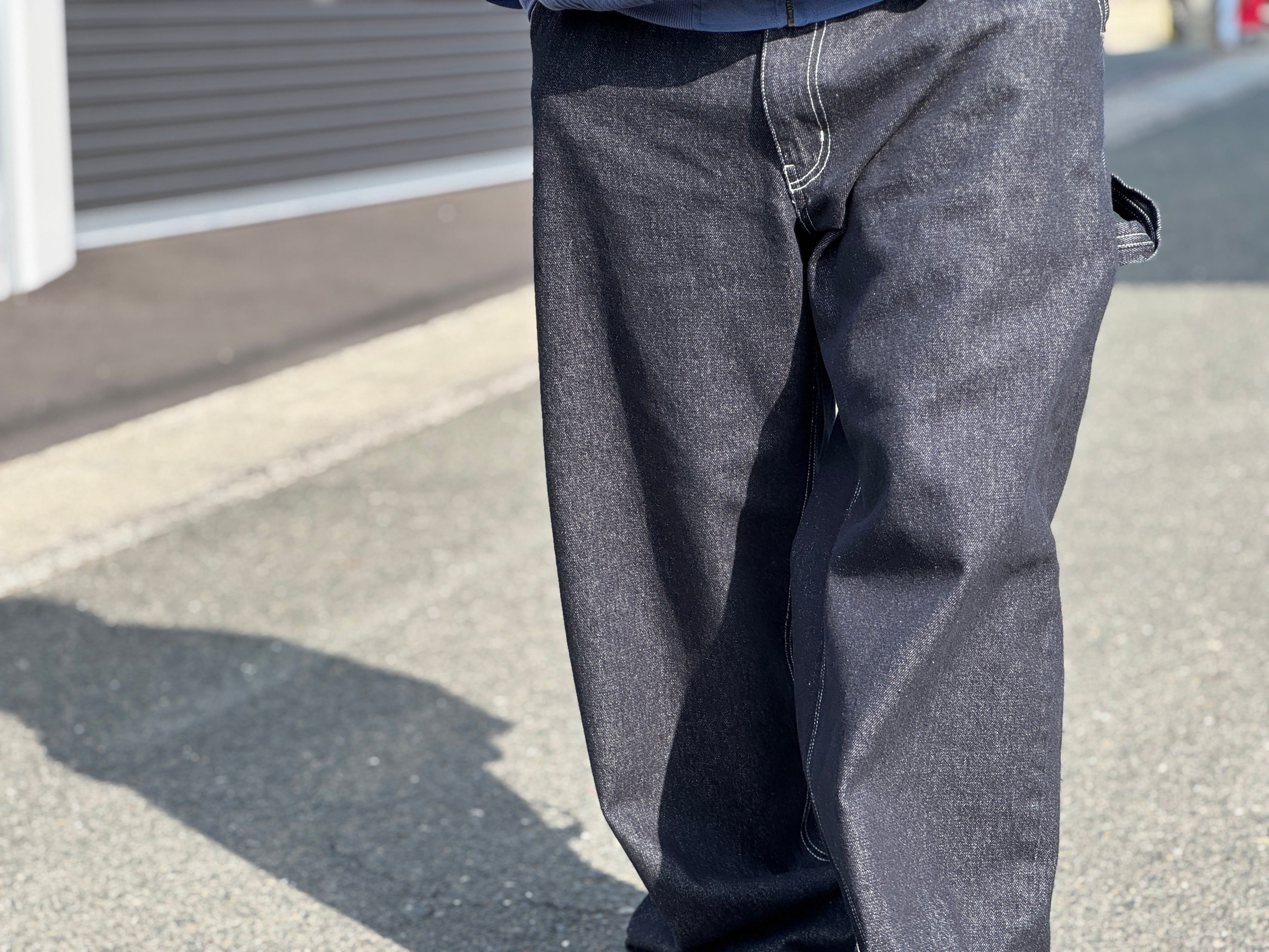 ペインターならではのデザインはそのままに、ウエストはベルトループ付きのイージーパンツ仕様、裾もコードを配してあるのでシルエットを変えることが可能。