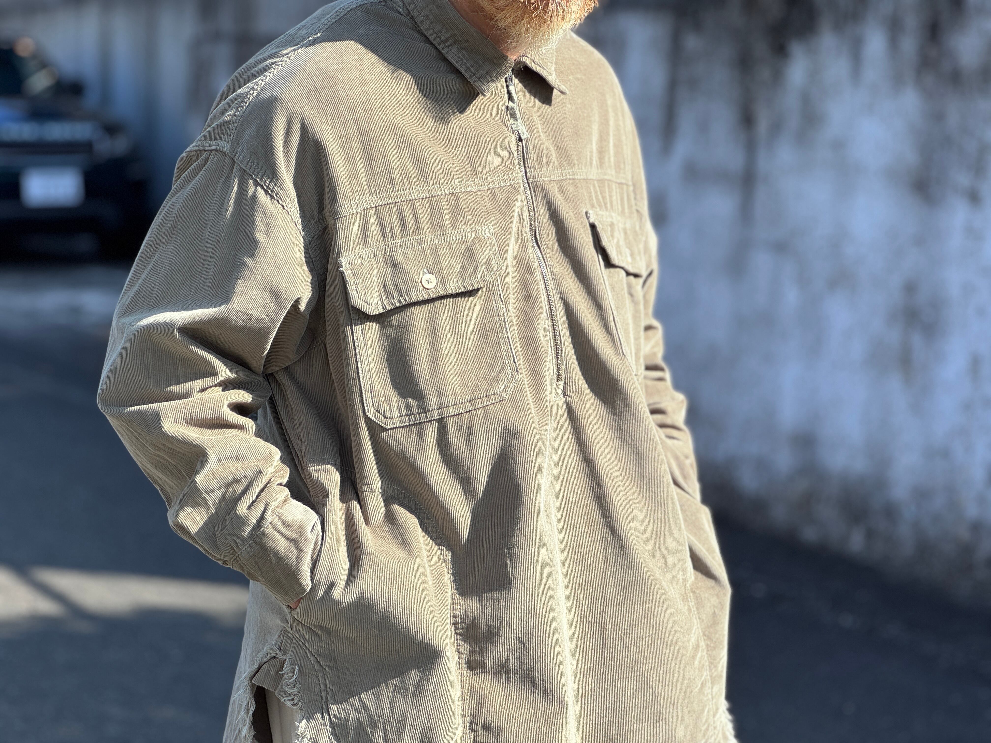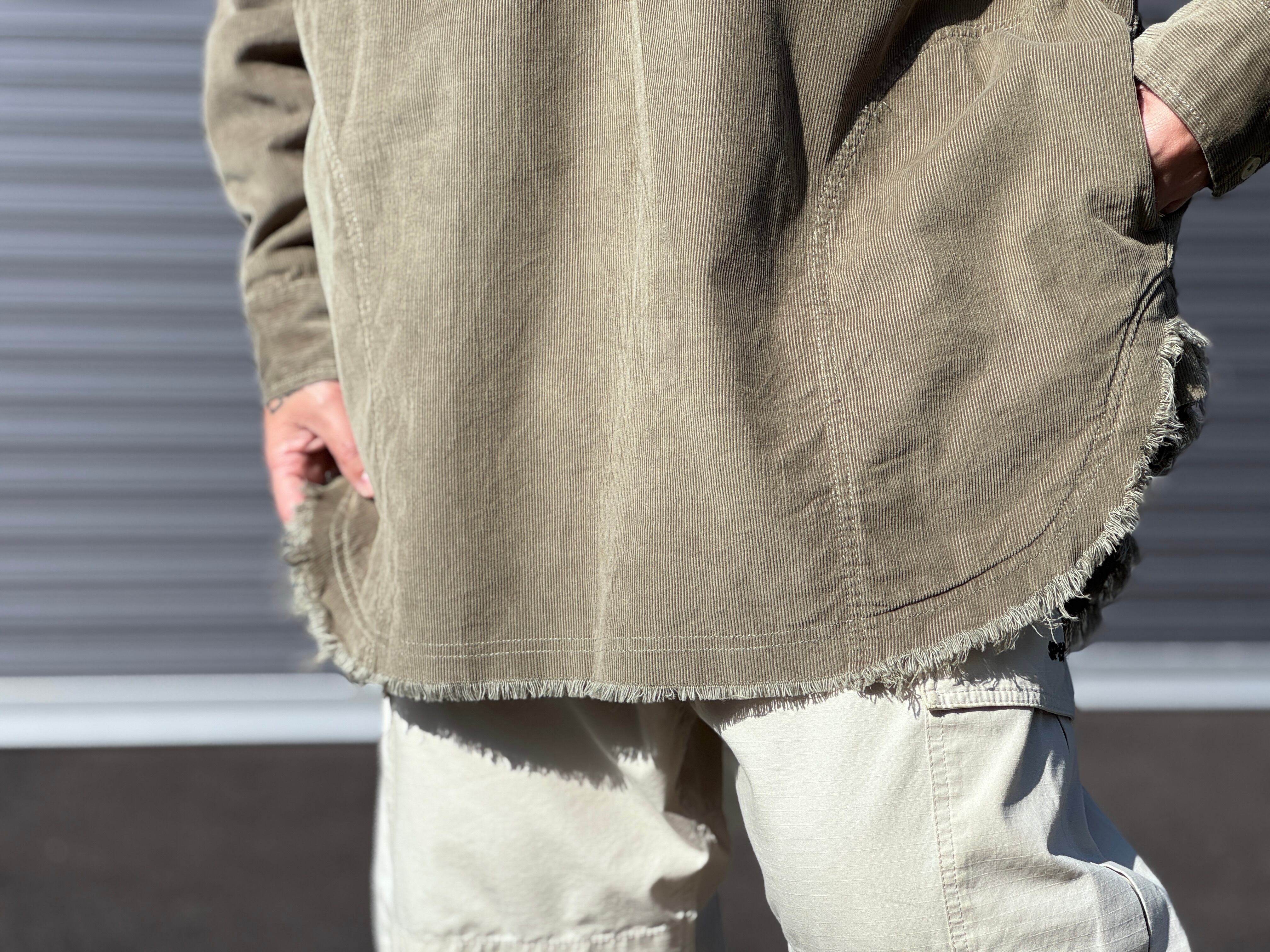 細畝のコーデュロイプルオーバーシャツ。