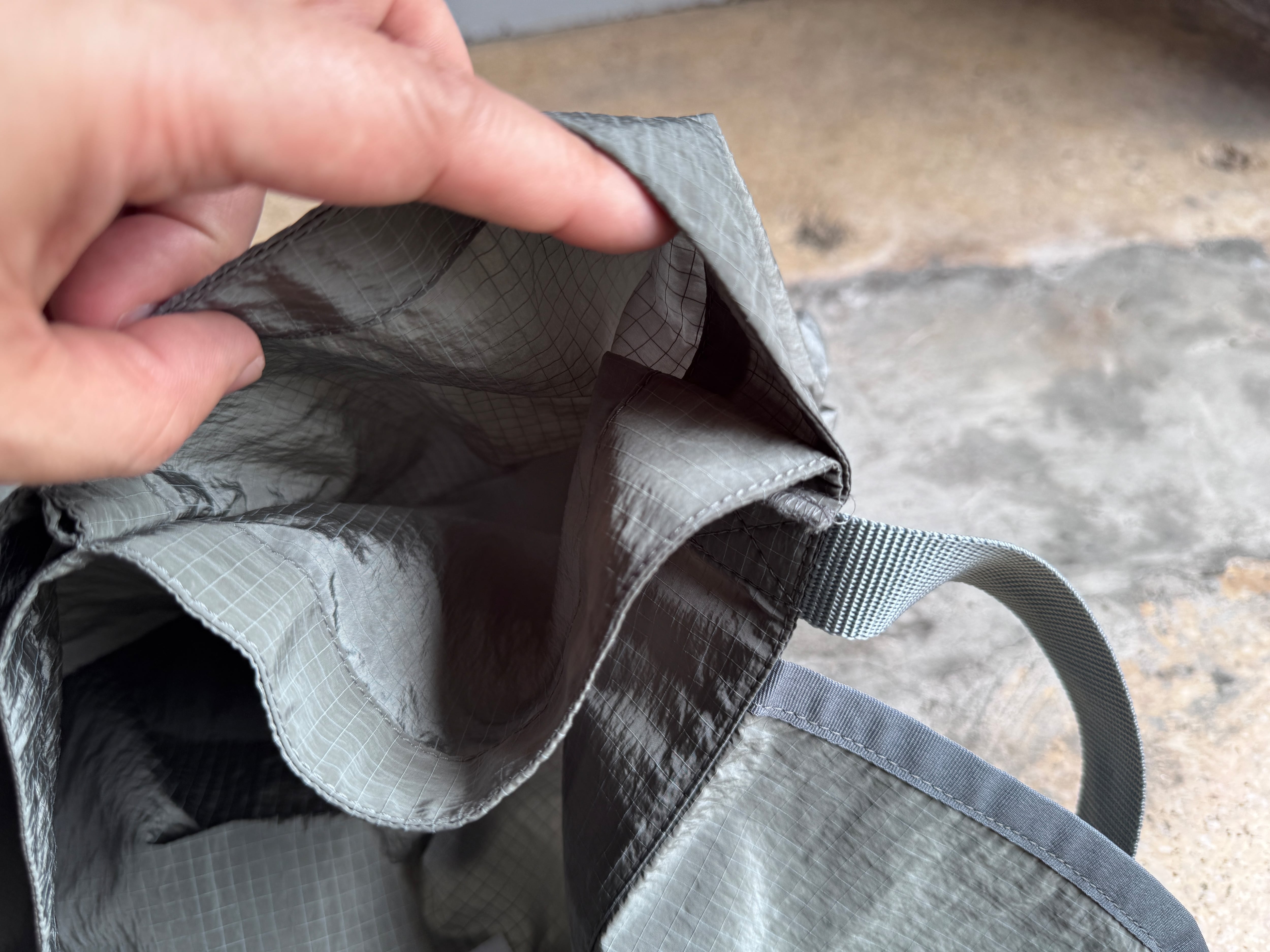 ナイロンモノフィラメント糸を使用することで、独特なタッチ感や柔らかさを兼ね備えたリップストップ素材。