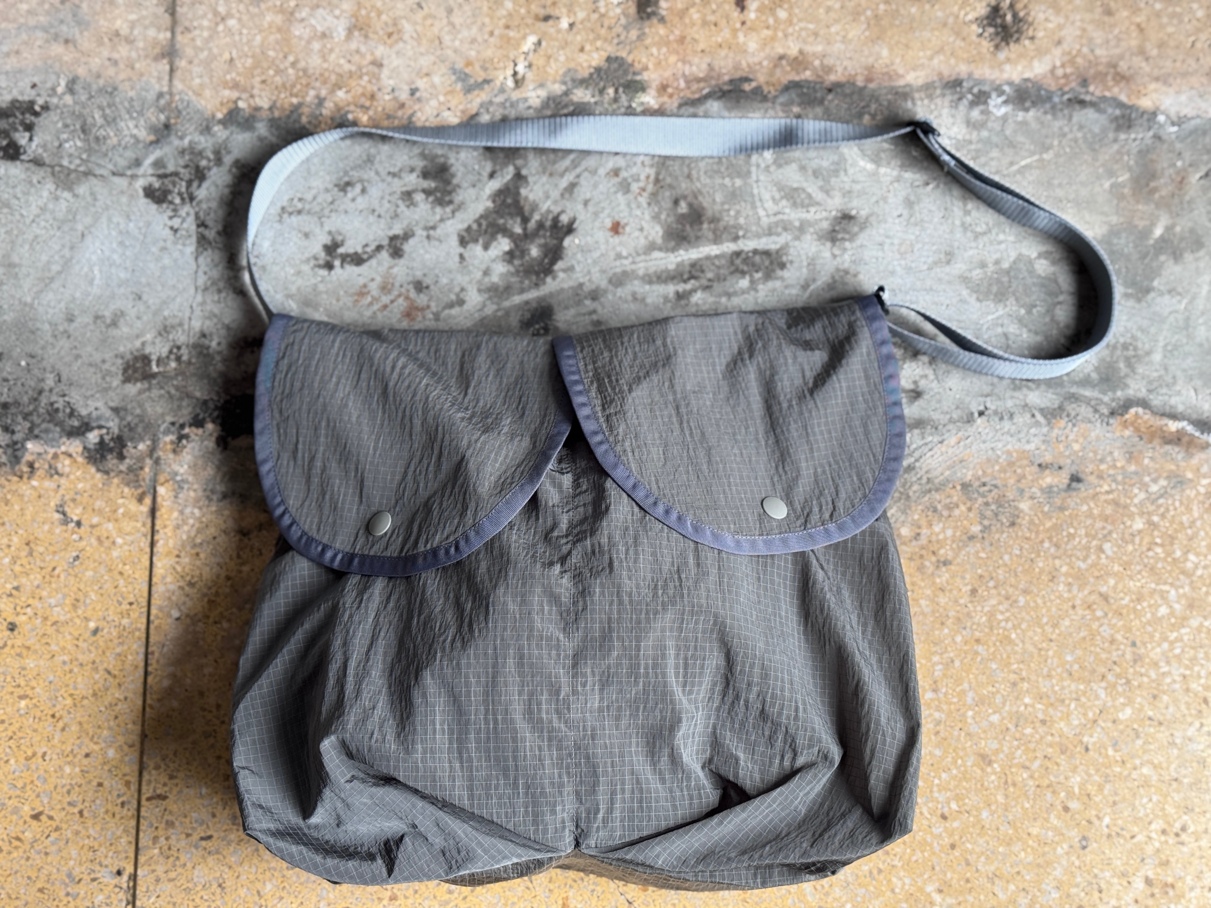 ヴィンテージのキャンバスバッグ(リュック)についているフラップポケットから着想した、大きいフラップポケットのデザインのバッグ。