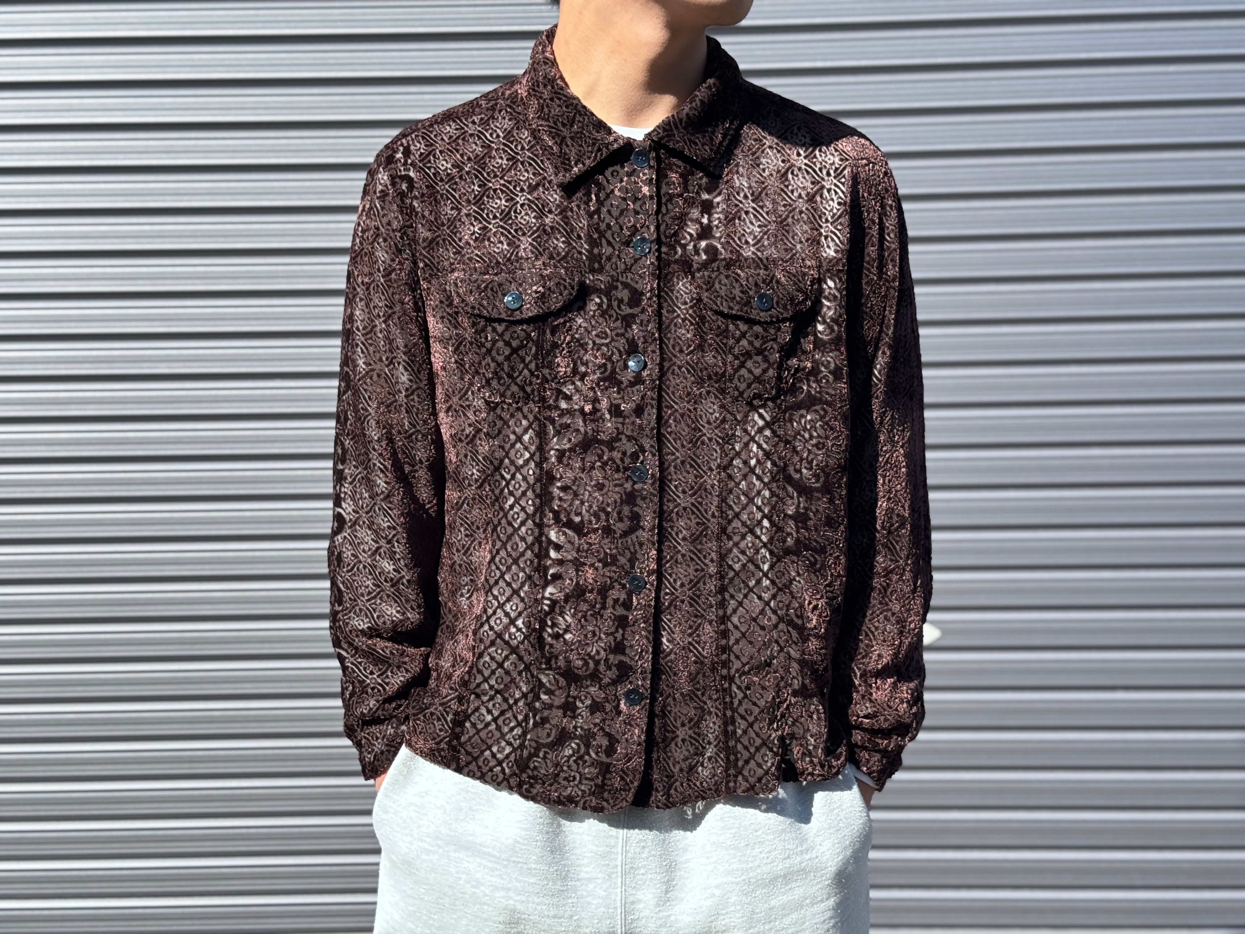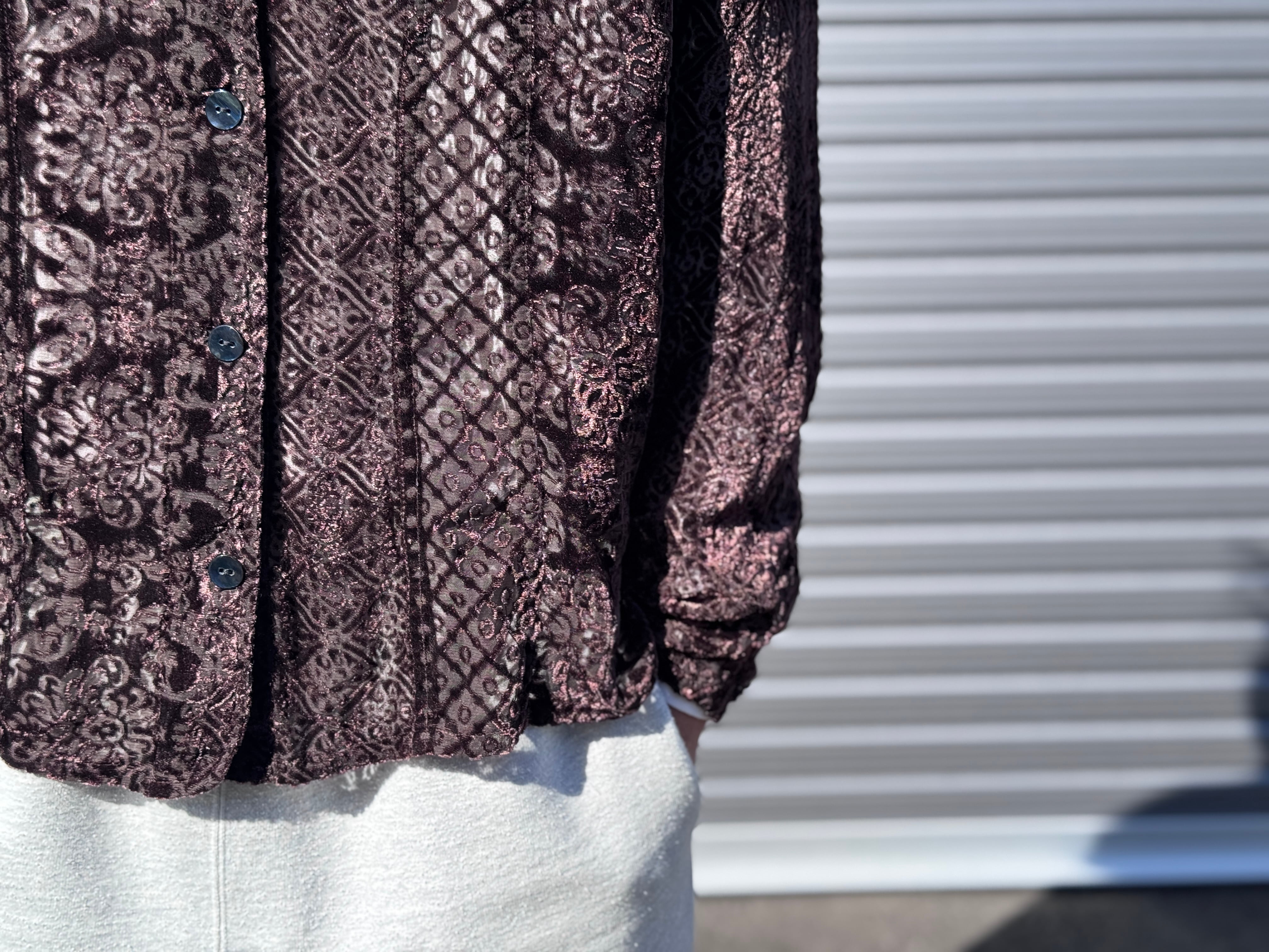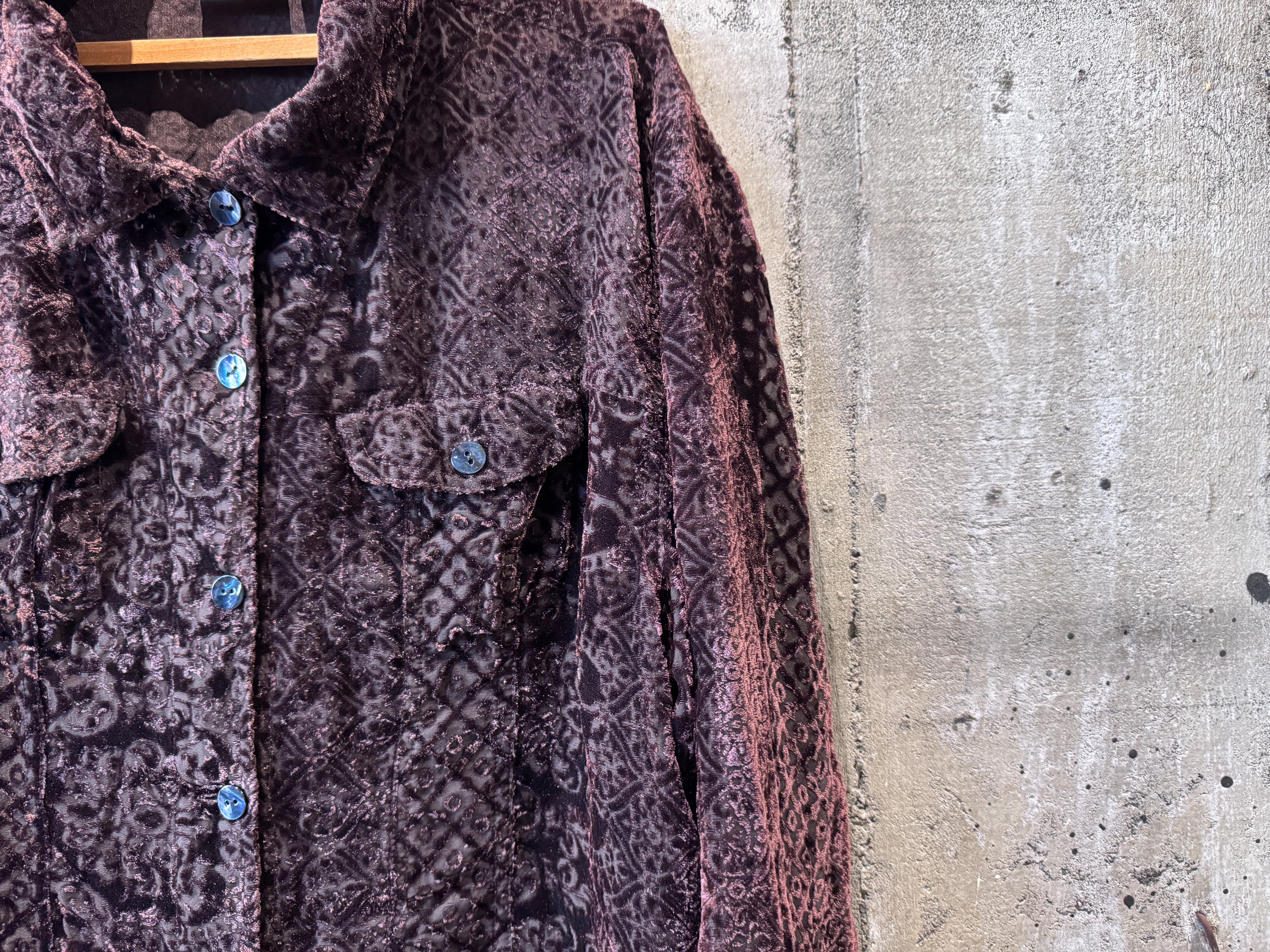 モコモコで凸凹とした生地でパターンが施され、透け感のある部分との絶妙な表情です。インナーに何のカラーを着るかでその表情が異なりますね。