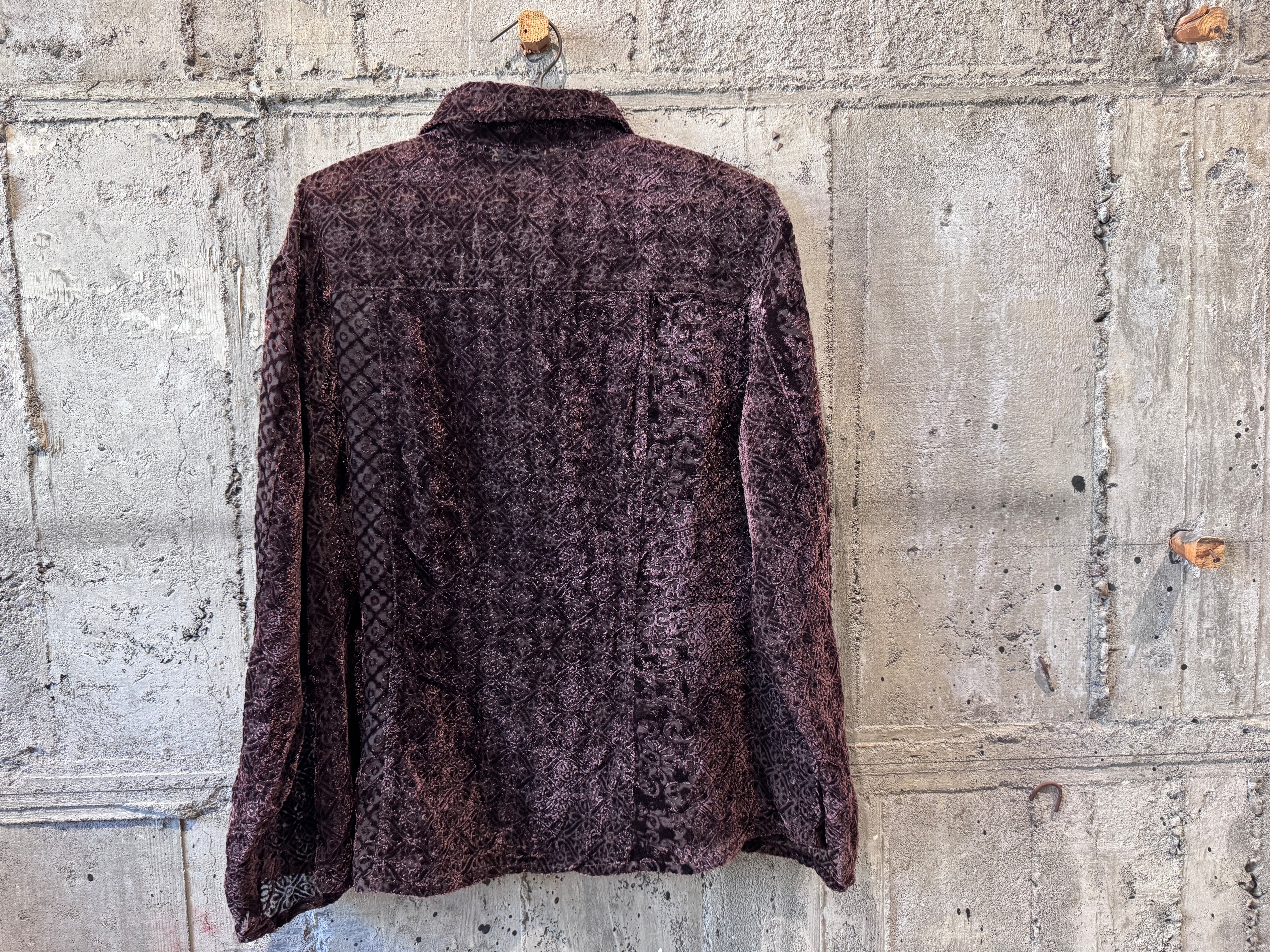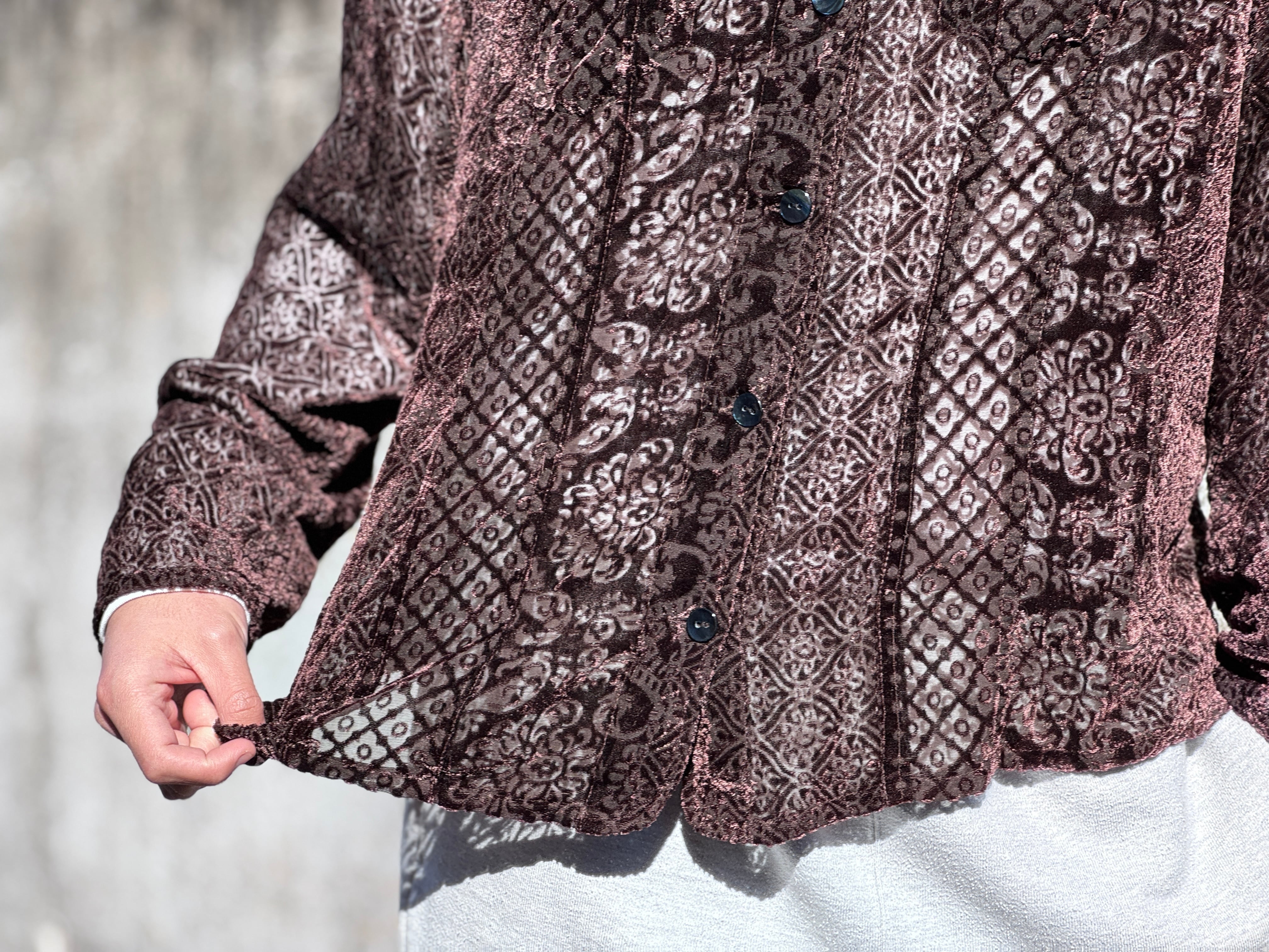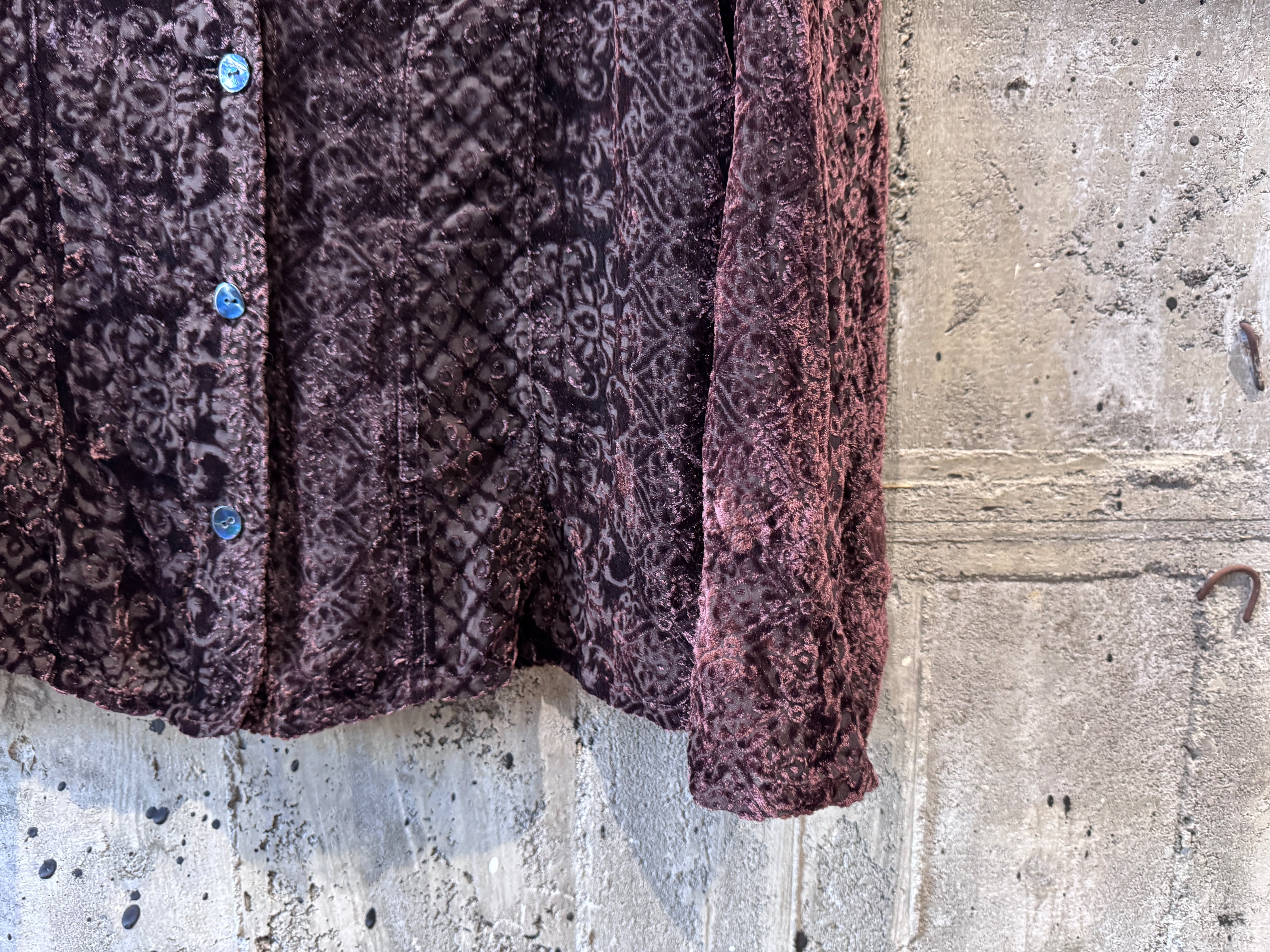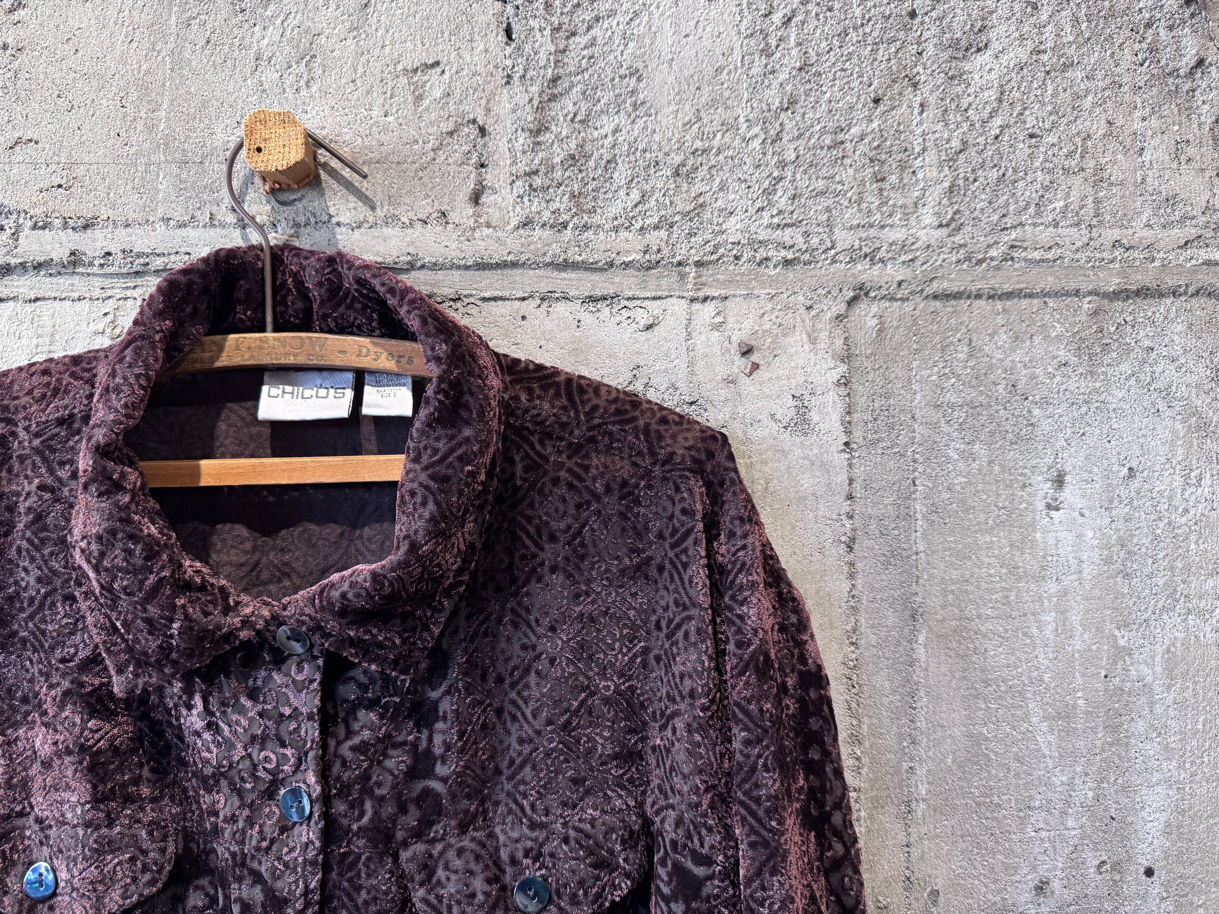 モコモコで凸凹とした生地でパターンが施され、透け感のある部分との絶妙な表情です。インナーに何のカラーを着るかでその表情が異なりますね。