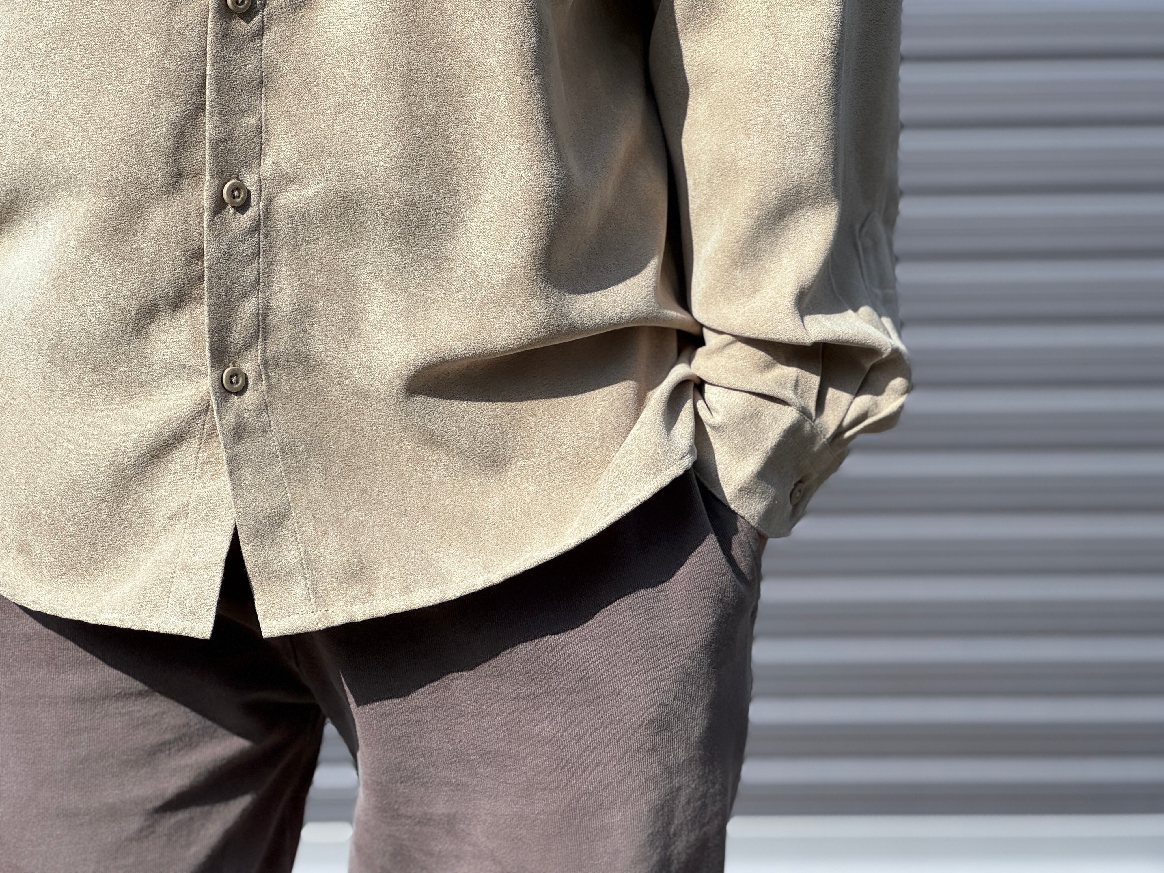 ライトベージュのフェイクスエードシャツをリメイクしました。