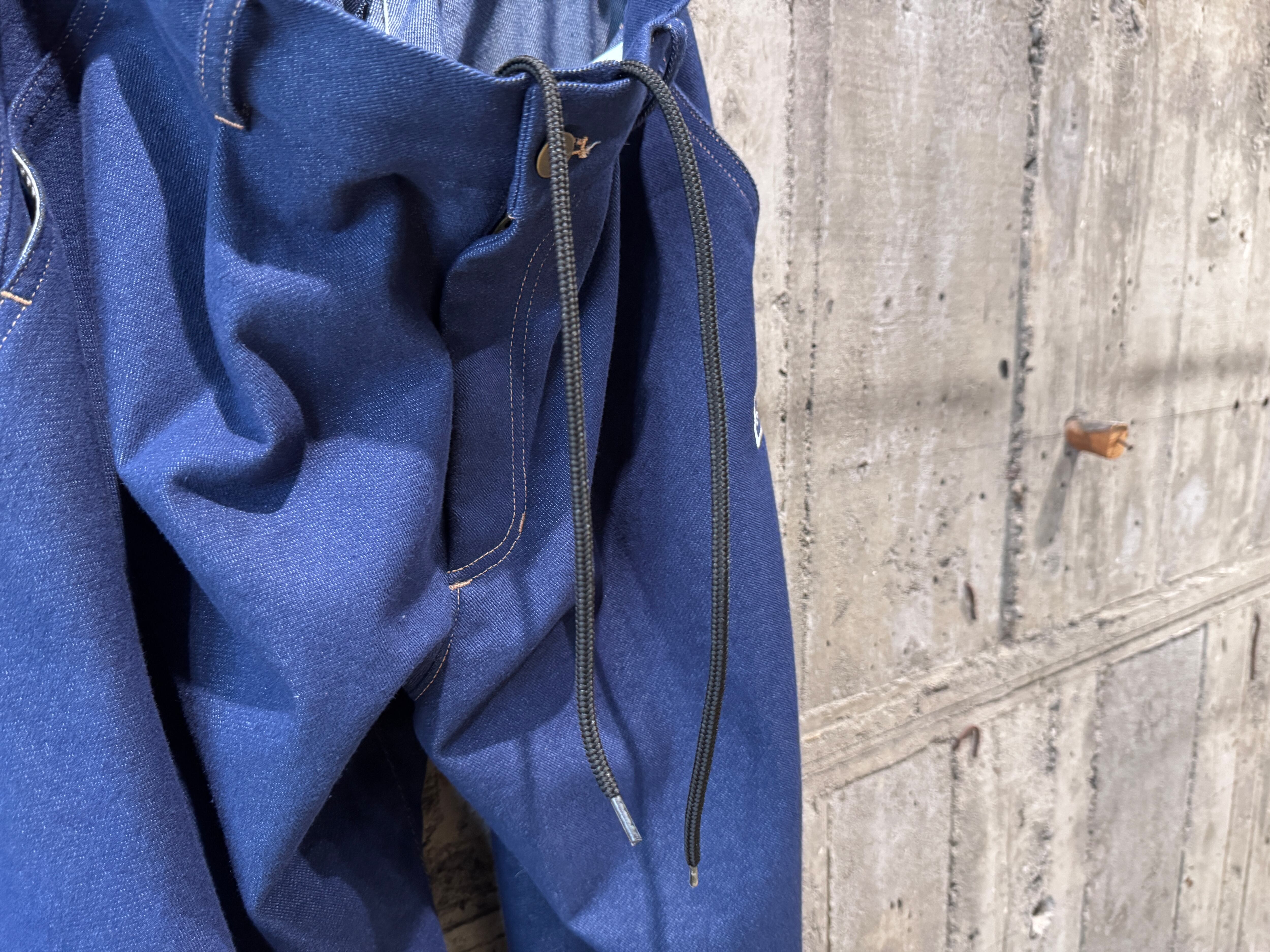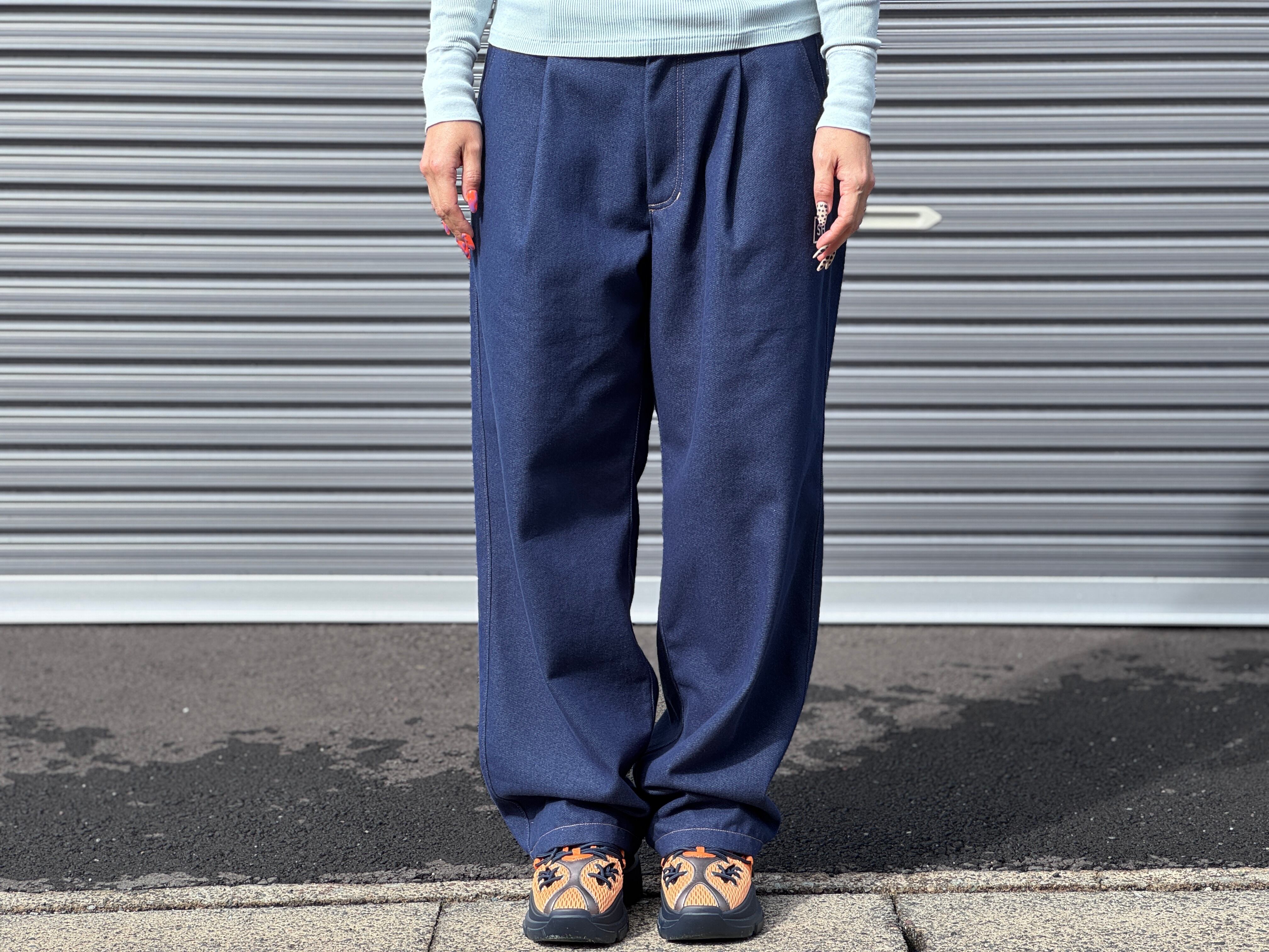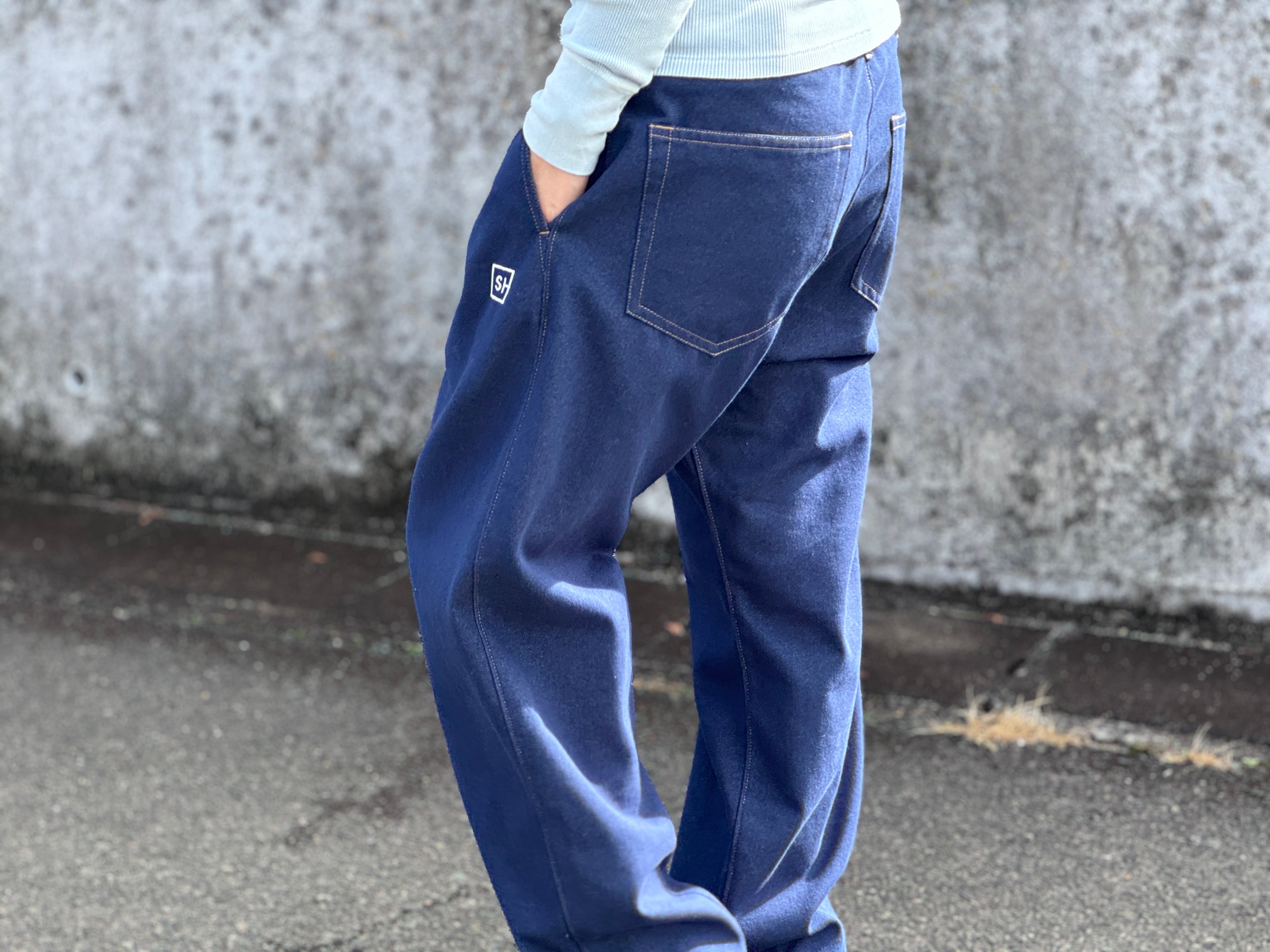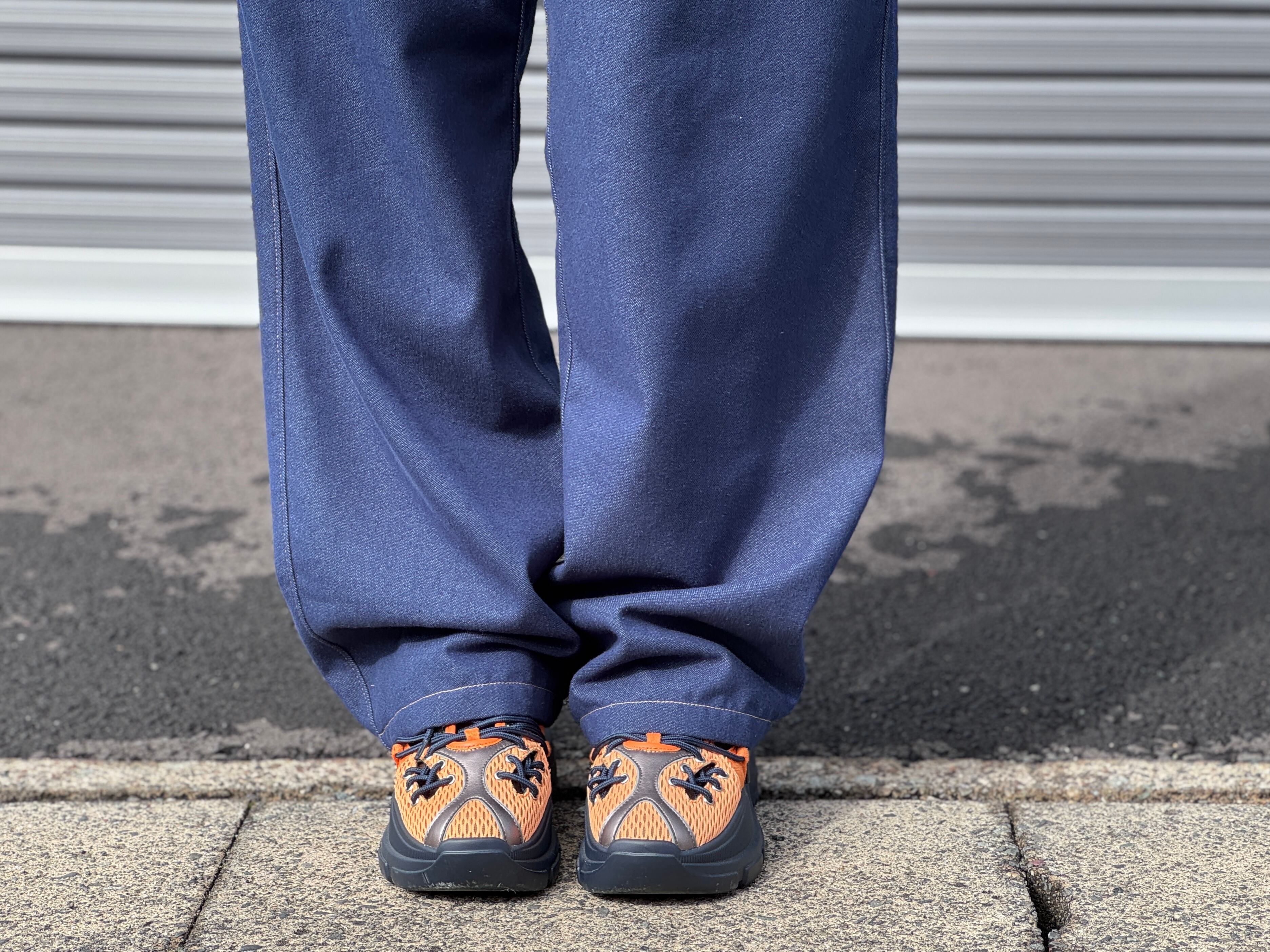 吸水性が高く(汗をかいてもベトつかない)、そしてシワになりにくいTCデニム生地でカーブパンツを作りました。