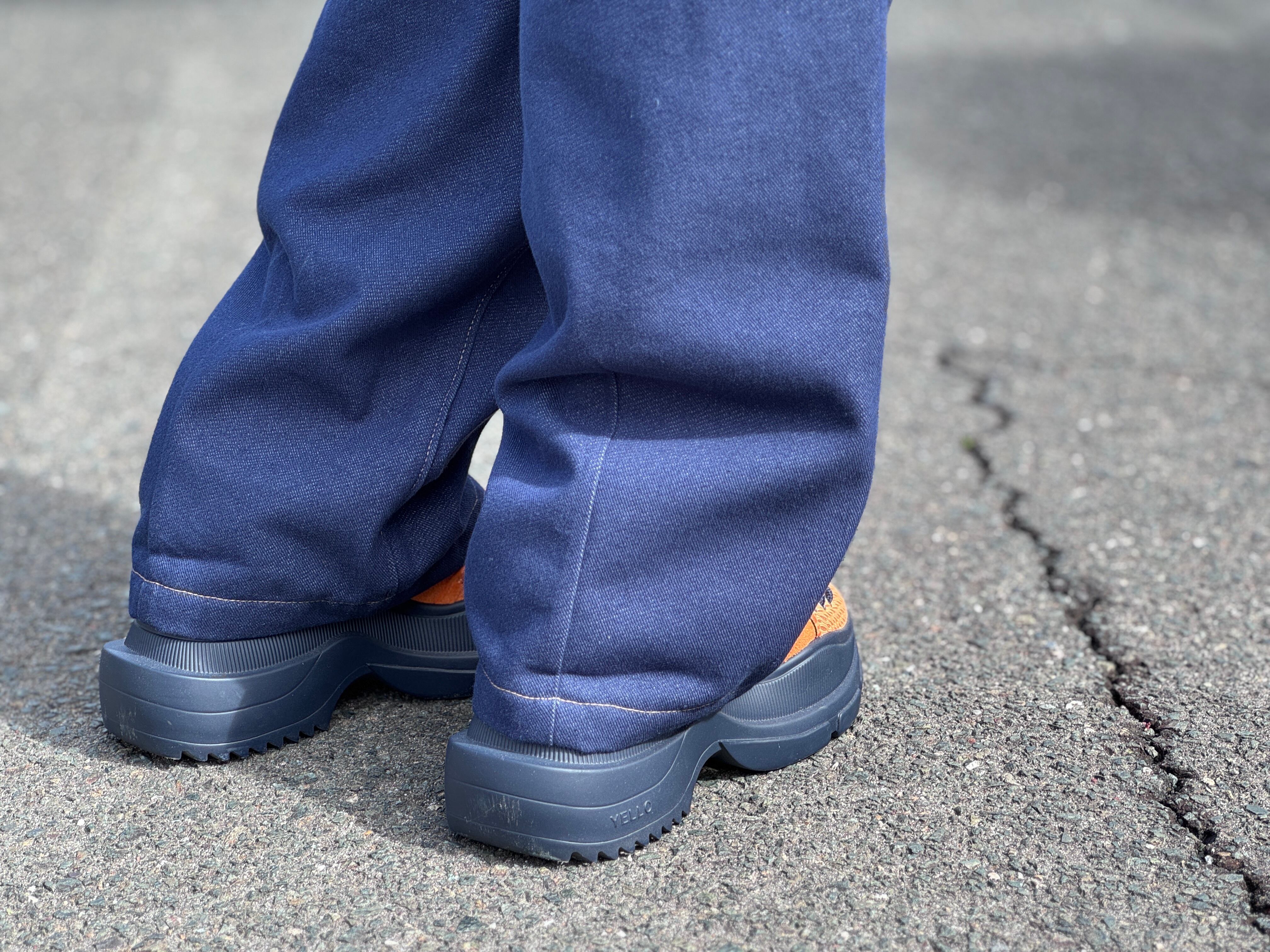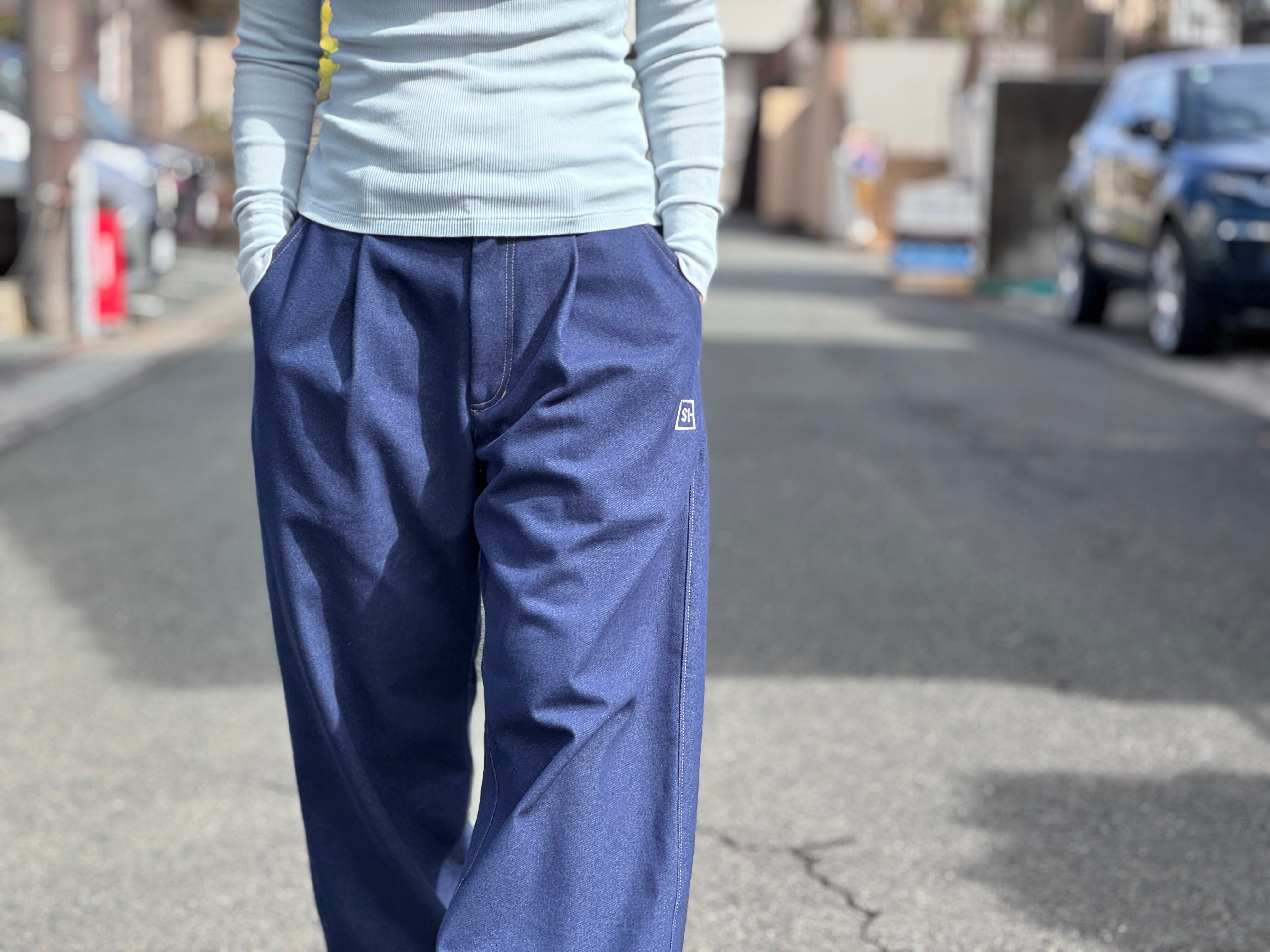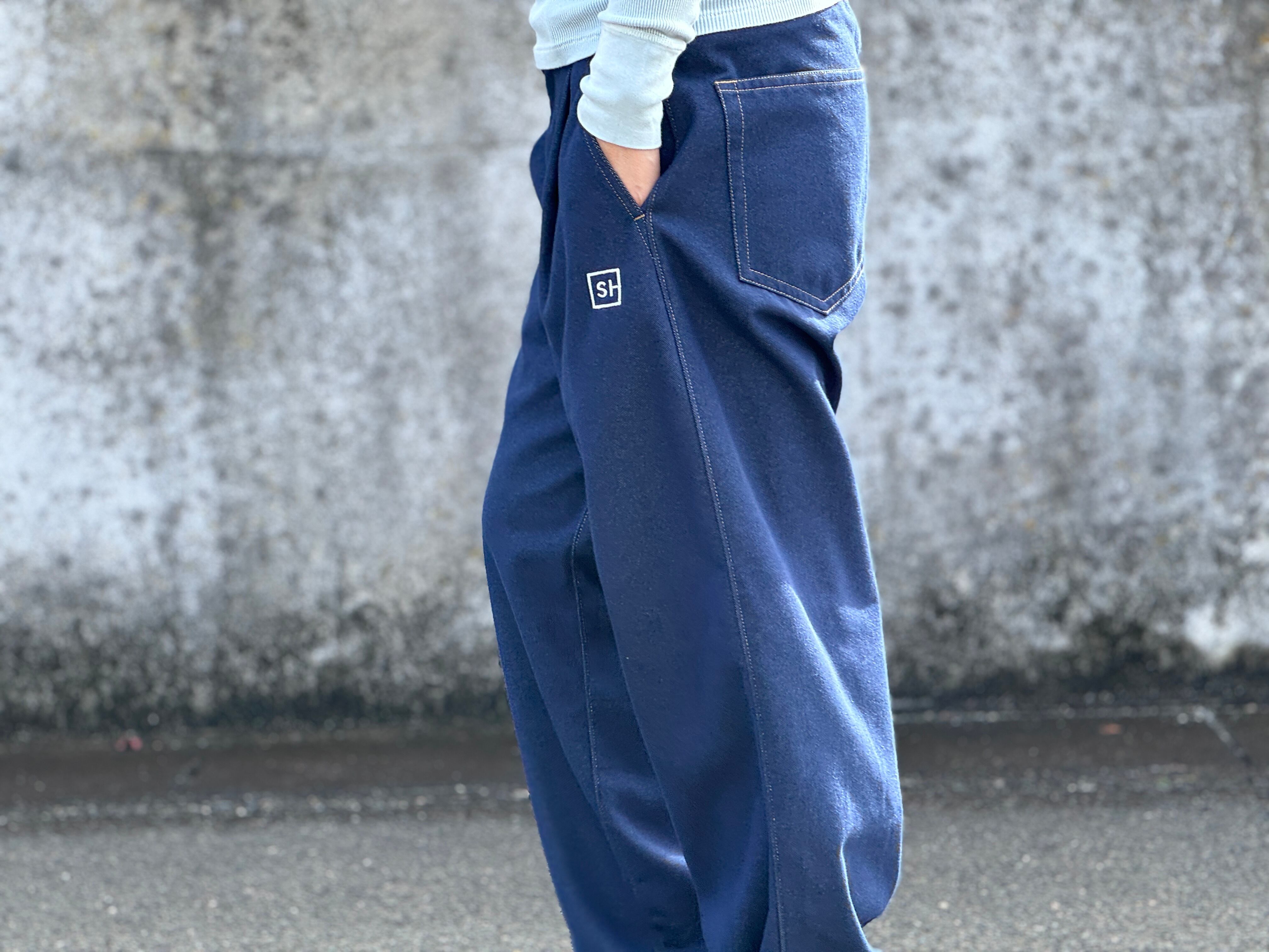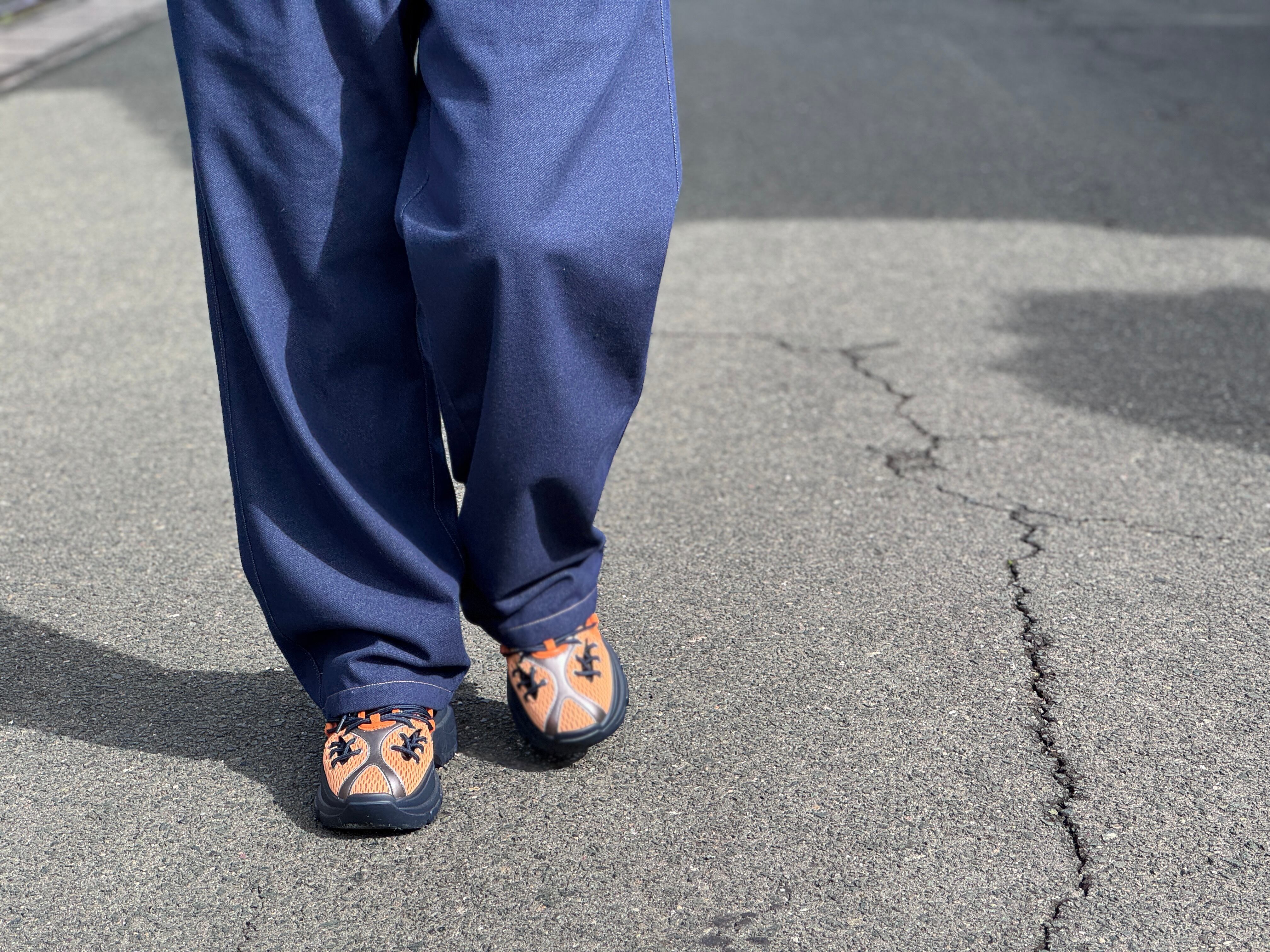 吸水性が高く(汗をかいてもベトつかない)、そしてシワになりにくいTCデニム生地でカーブパンツを作りました。