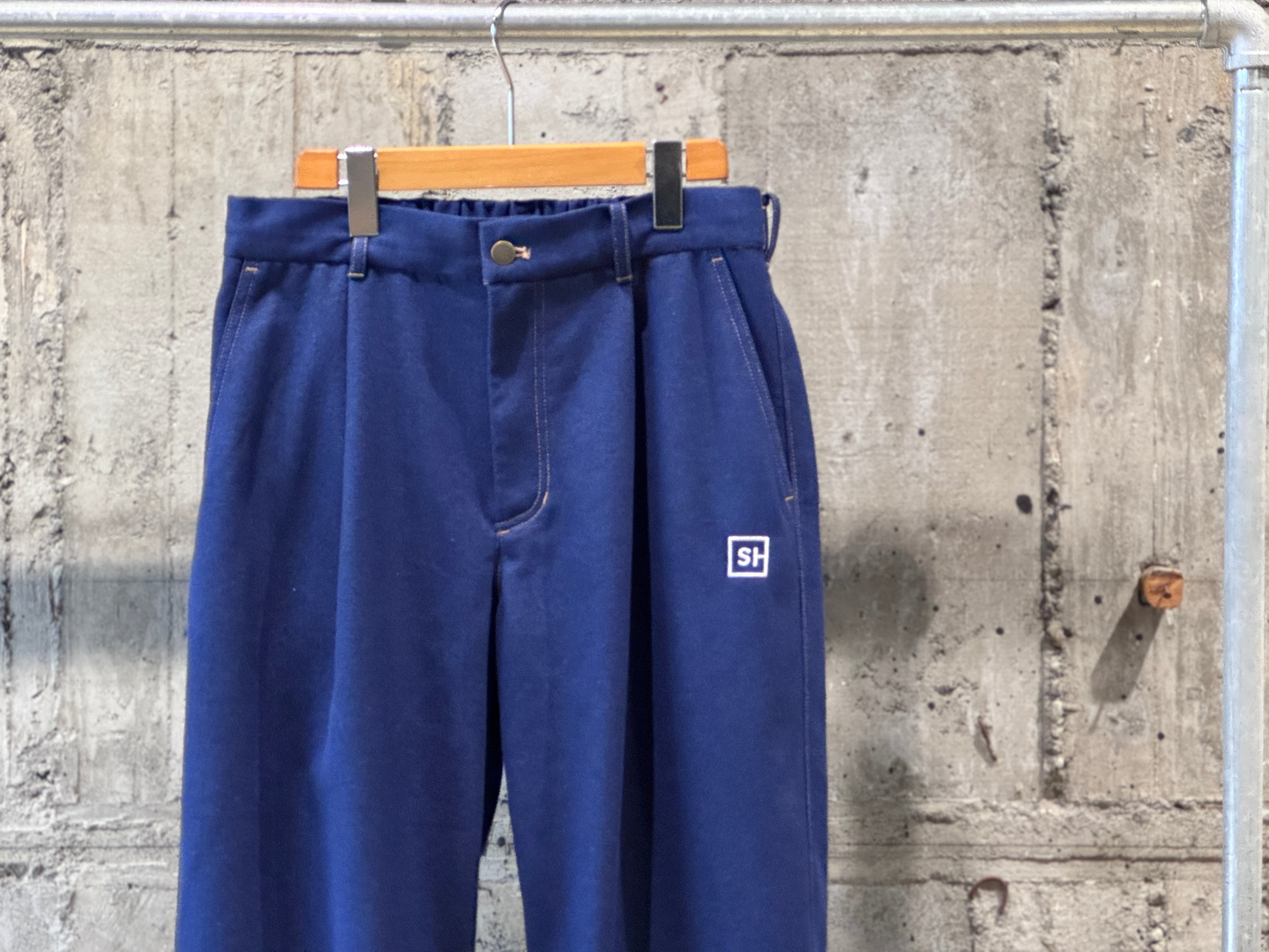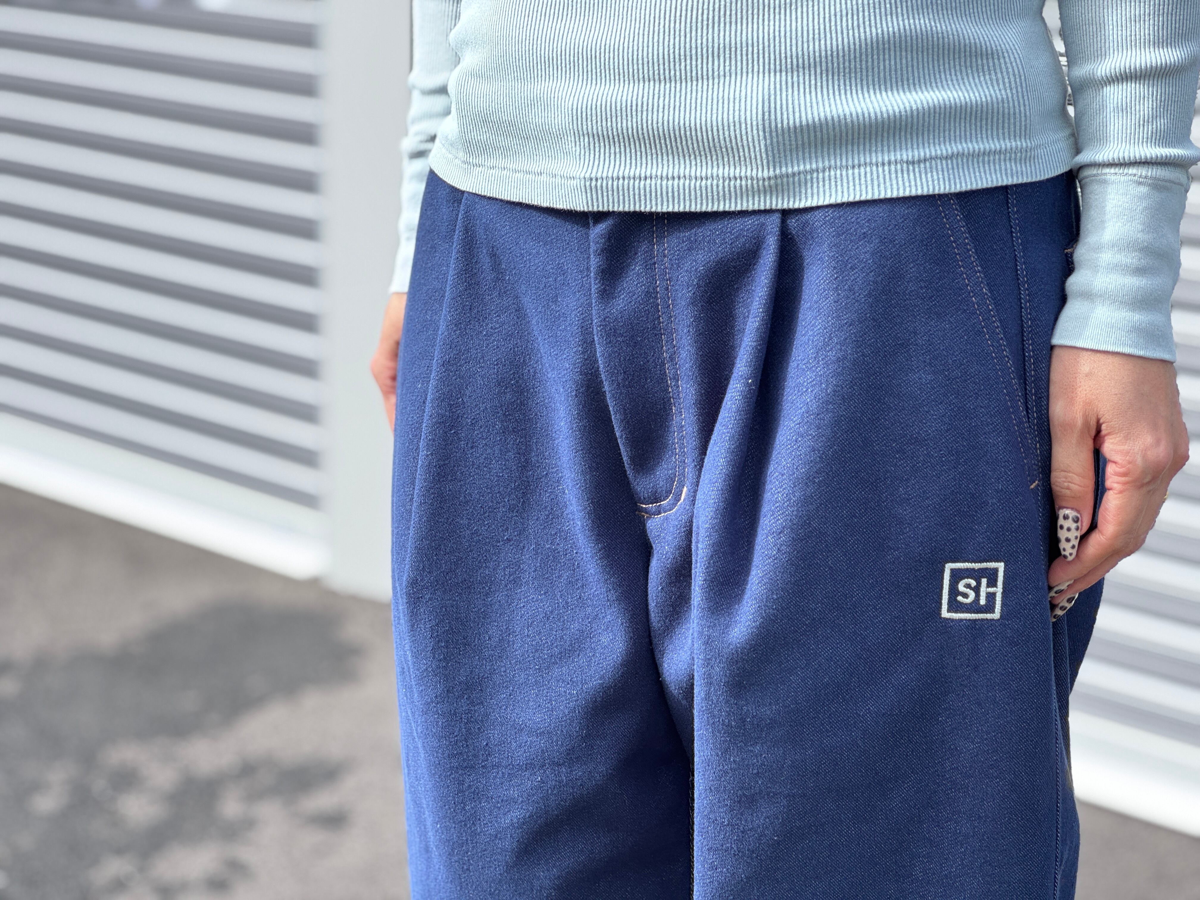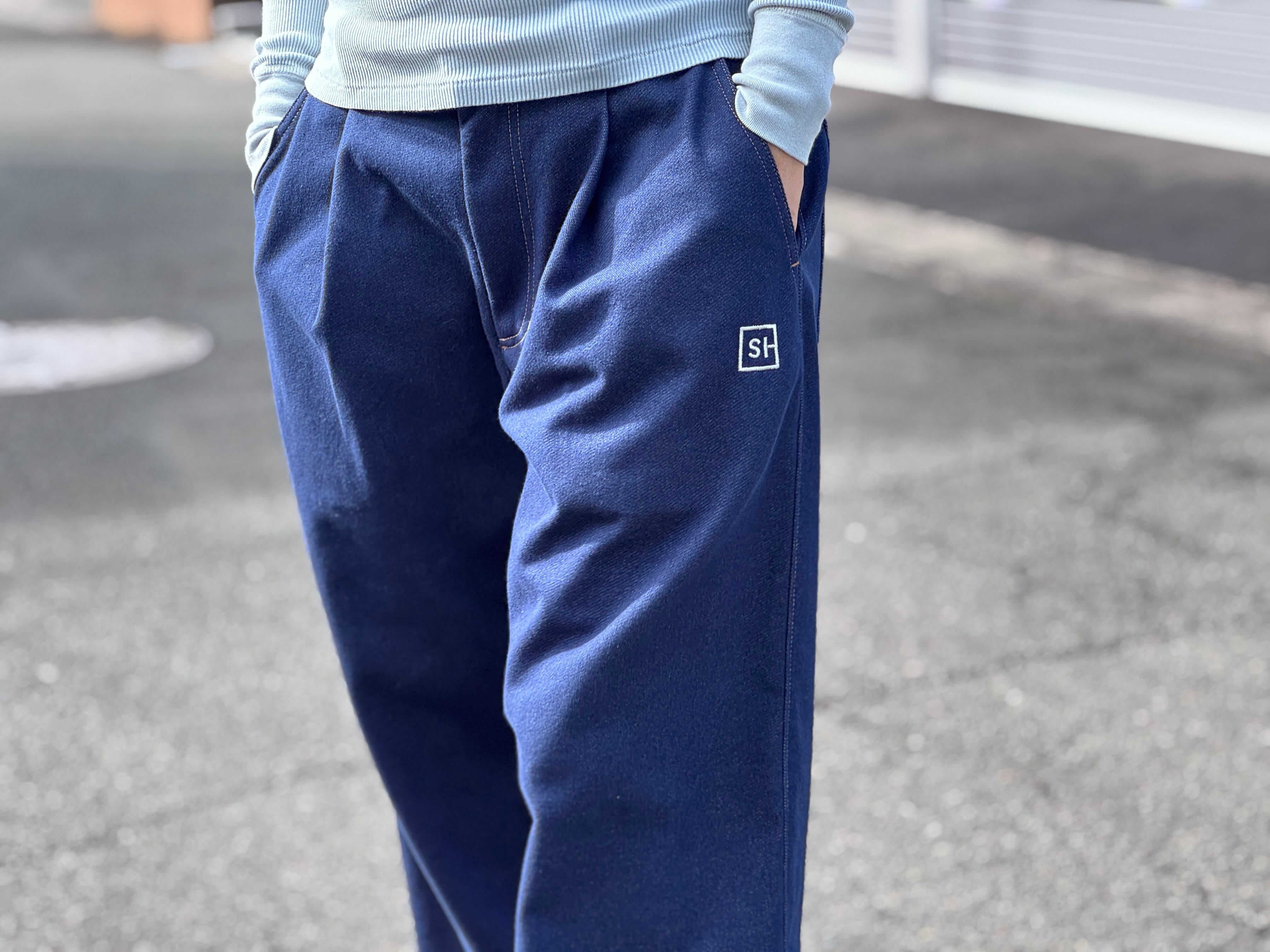 腰回りに入れたタックでゆとりを出し、腰部分をゴム仕様にする事でイージーな穿き心地。そして裾にはダーツを加え、より定番物とは異なるシルエットを表現。