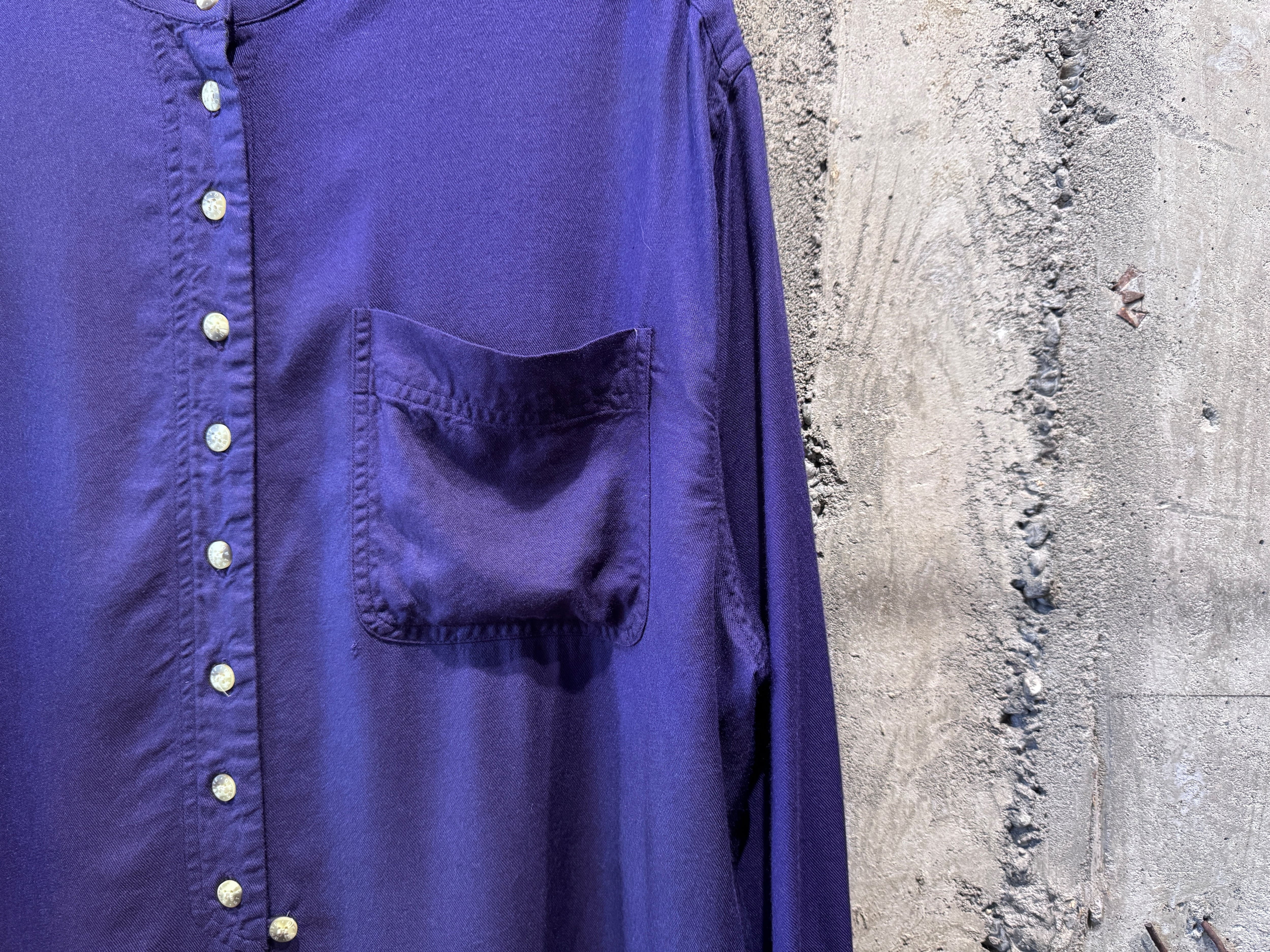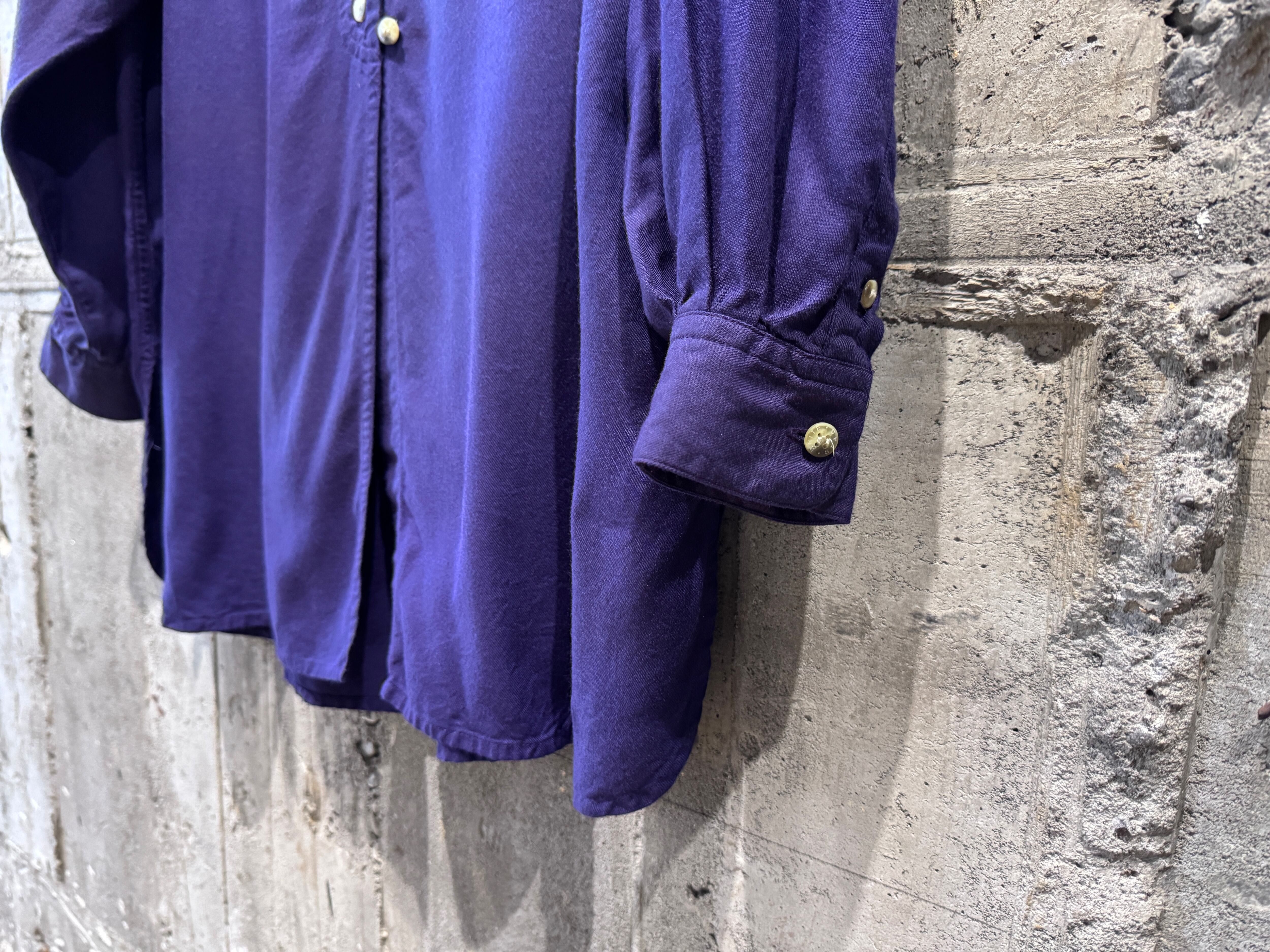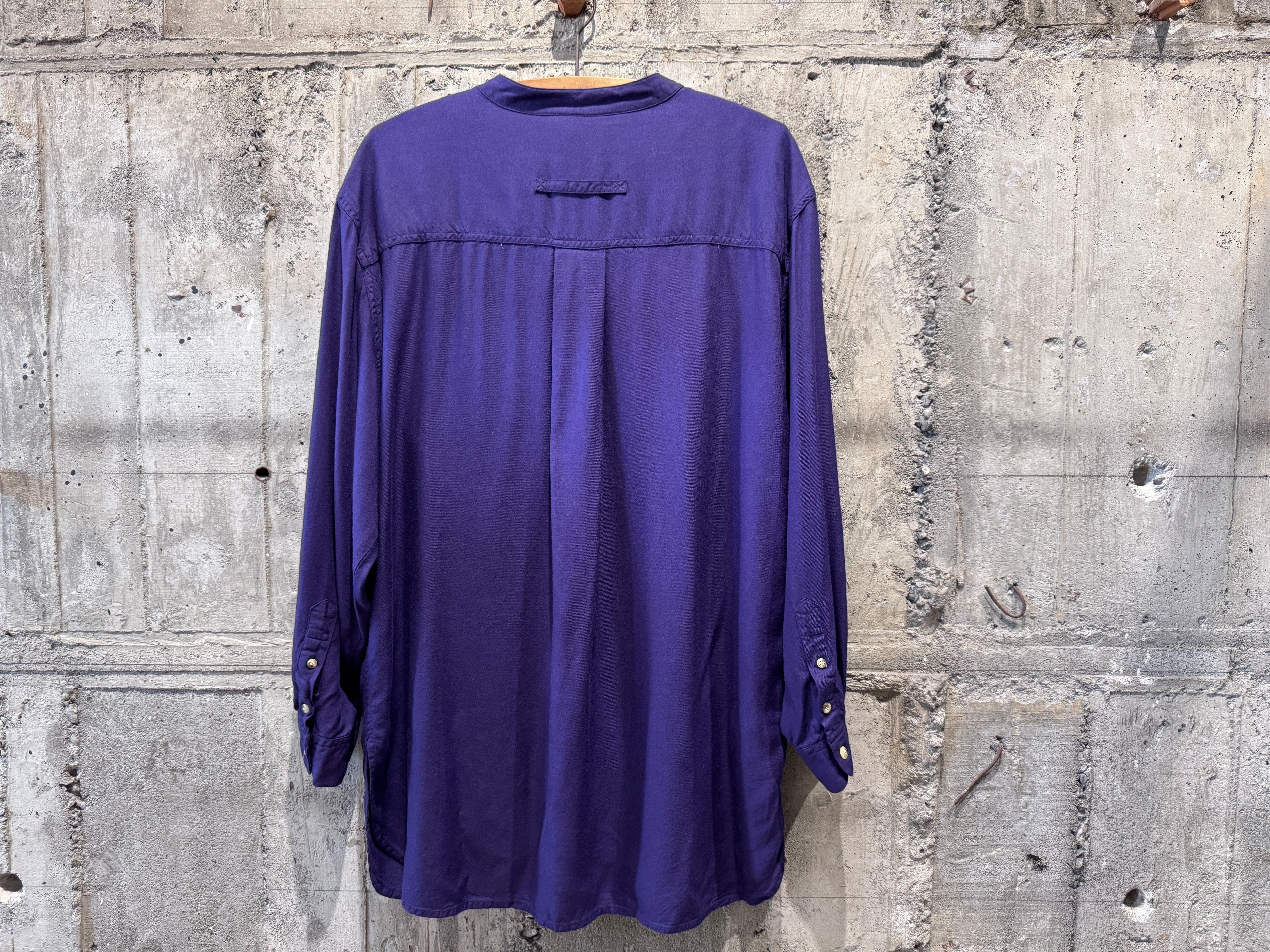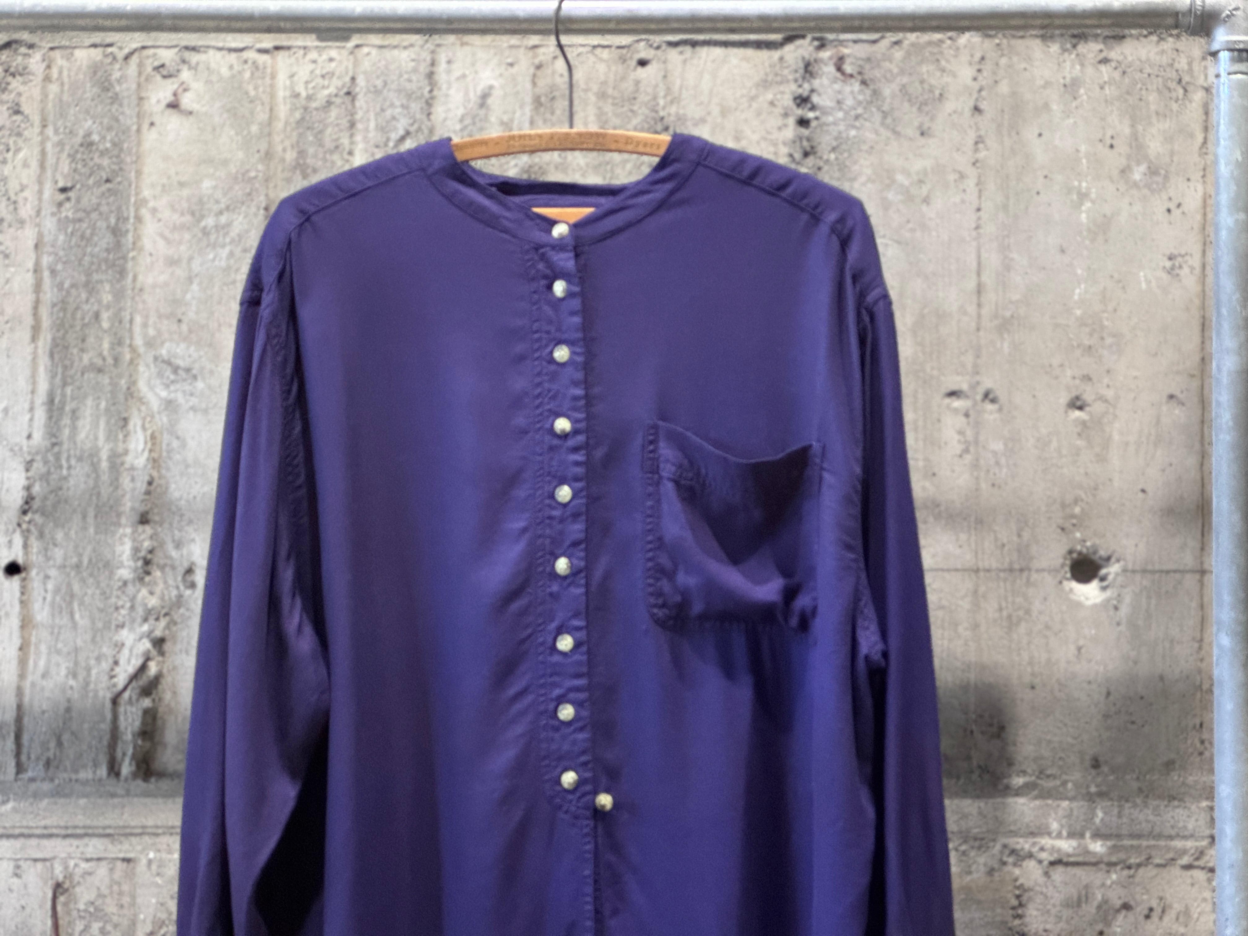 テロッとしたドレープ感のあるモダンな生地のバンドカラーシャツ。