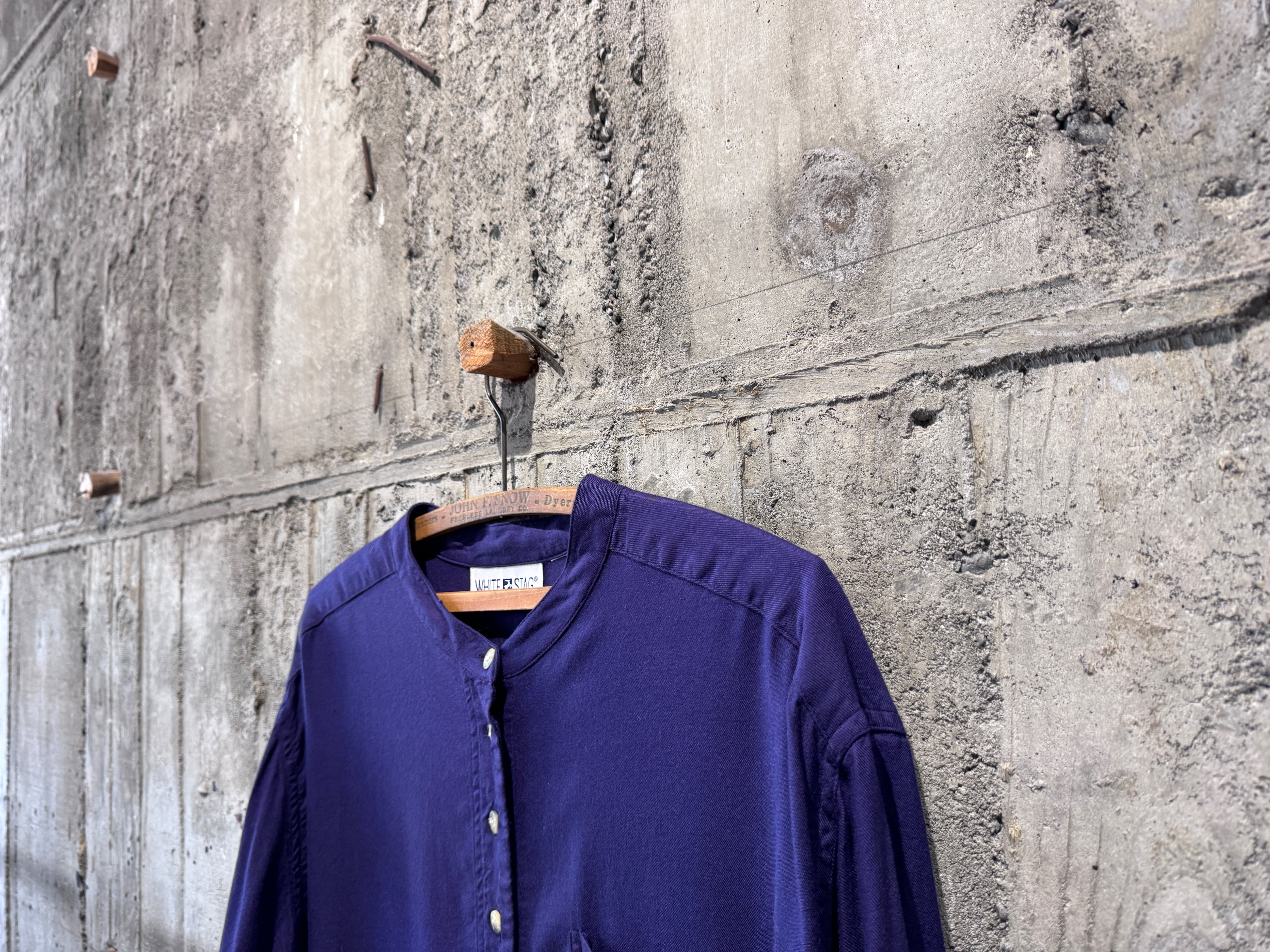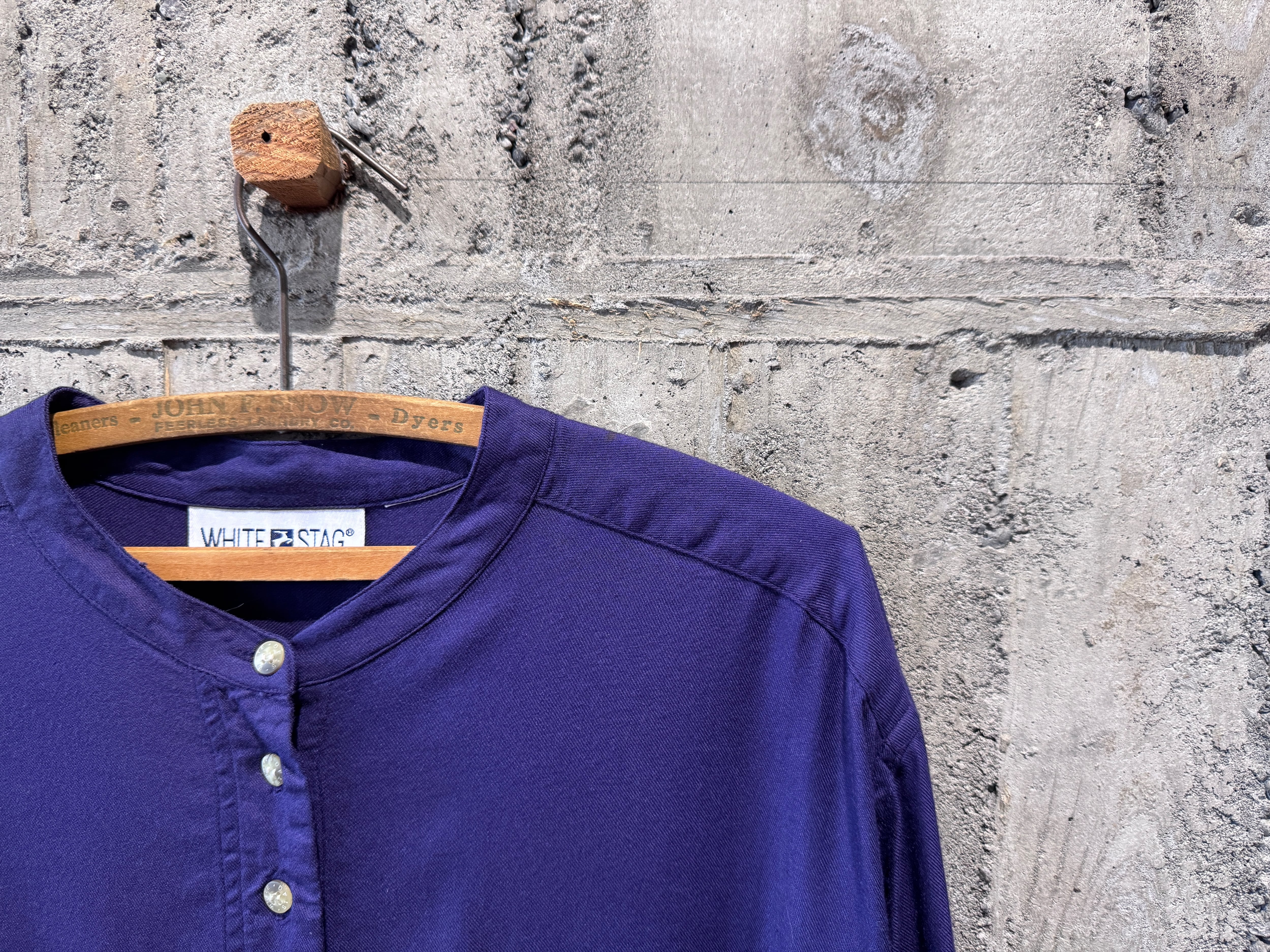 WHITE STAG band collar shirtになります。
