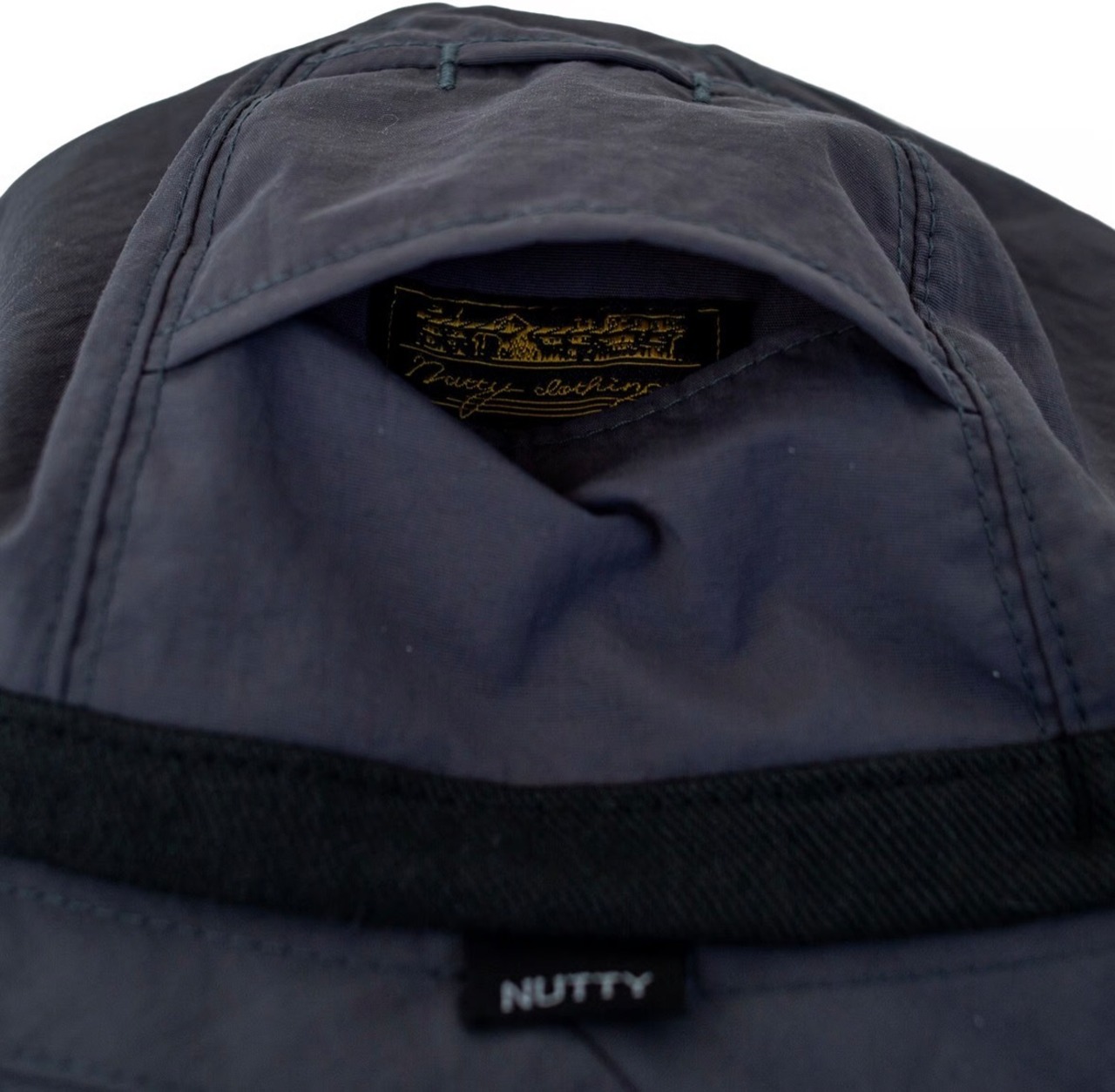 ツバ先のパイピング部分やクラウンとの接合部には、こだわりの綿麻素材(コットン65%・麻35%)を採用。長年の経験を持つ職人の手で、生機を小ロットずつ丁寧に揉みほぐし、生地をリラックスさせることで自然な表面感を実現。乾燥工程でも生地にテンションをかけず仕上げることで、ザラっとしたヴィンテージライクな風合いが生まれました。